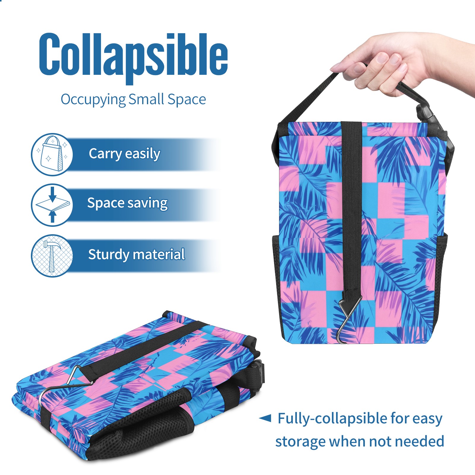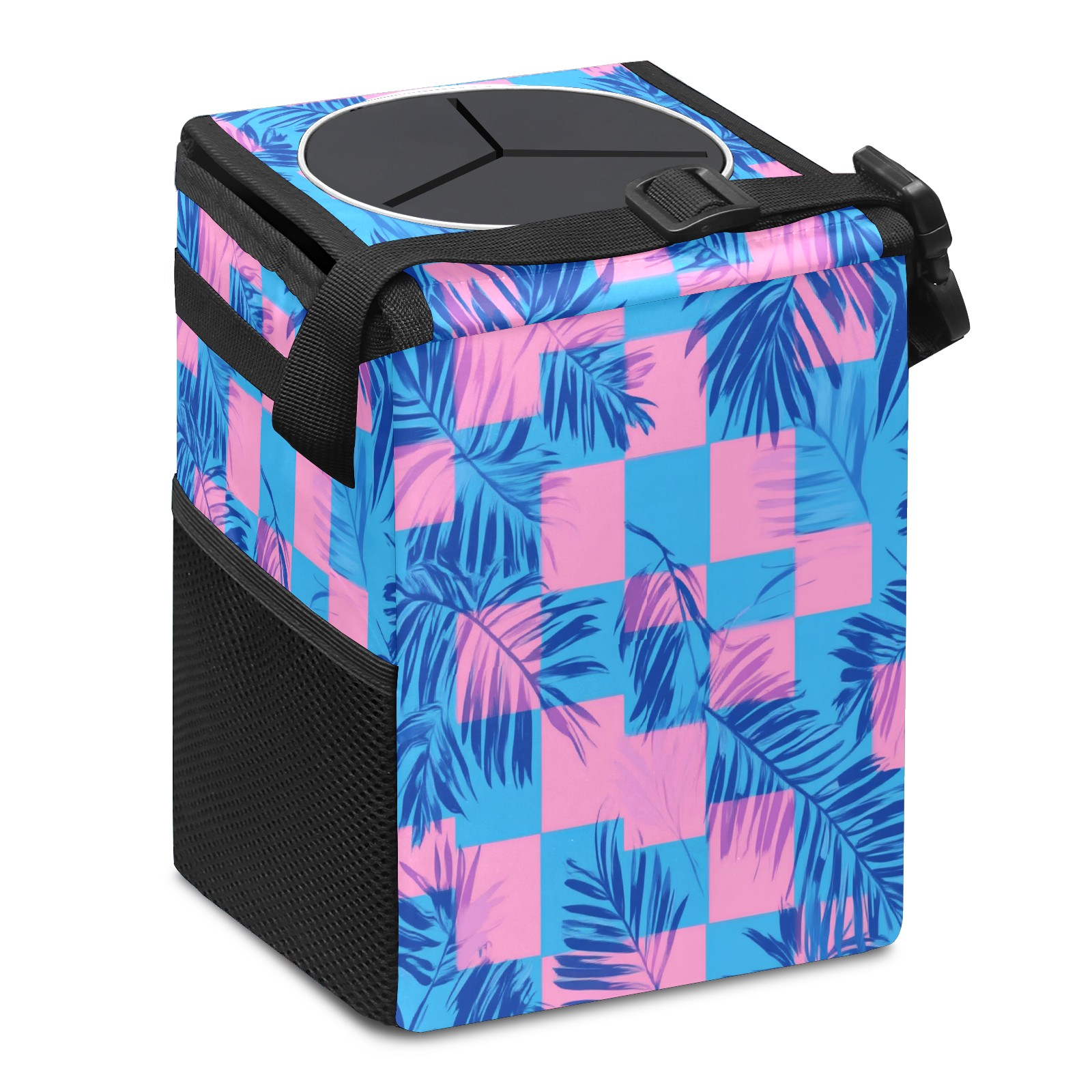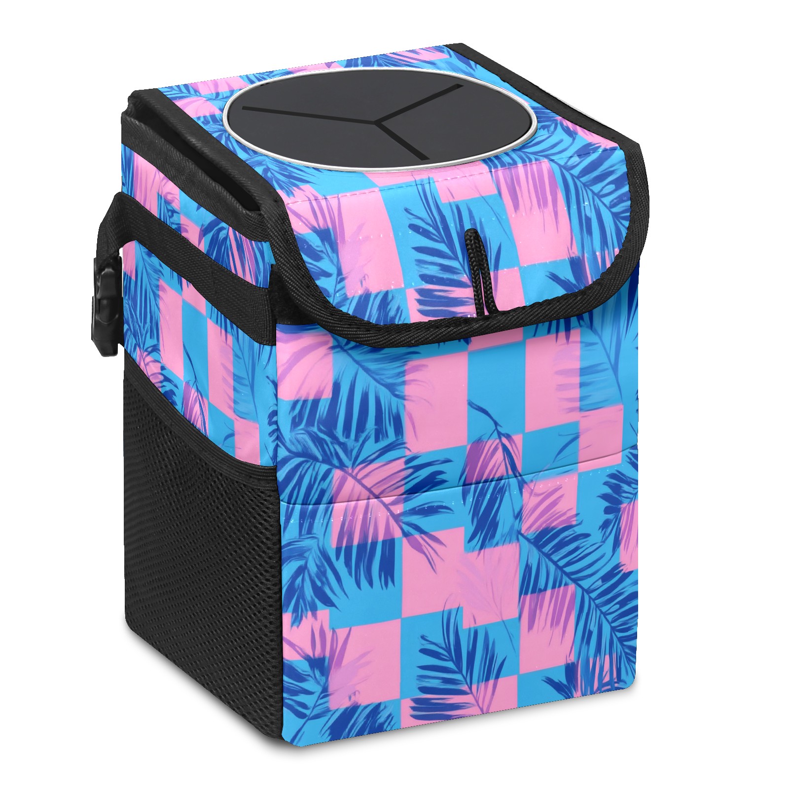 Car Trash Can with Lid, Small Portable Hanging Automotive Garbage Bin for Vehicles, Leakproof Waste Bag Container for SUV Truck Van Interior Auto Travel Road Trips(Blue And Pink Checkered)