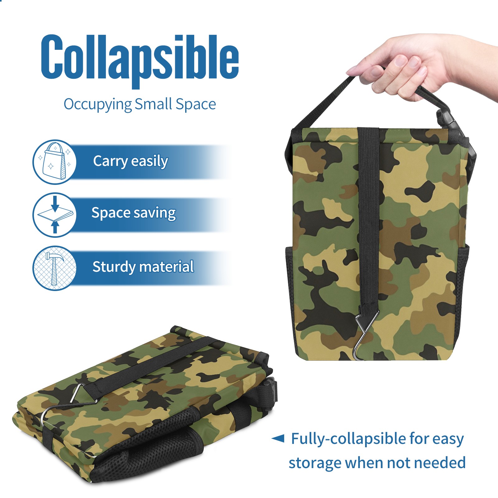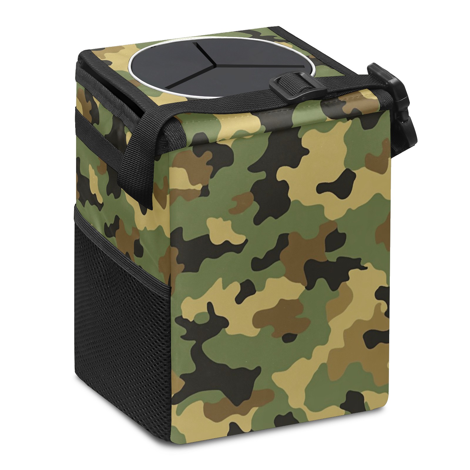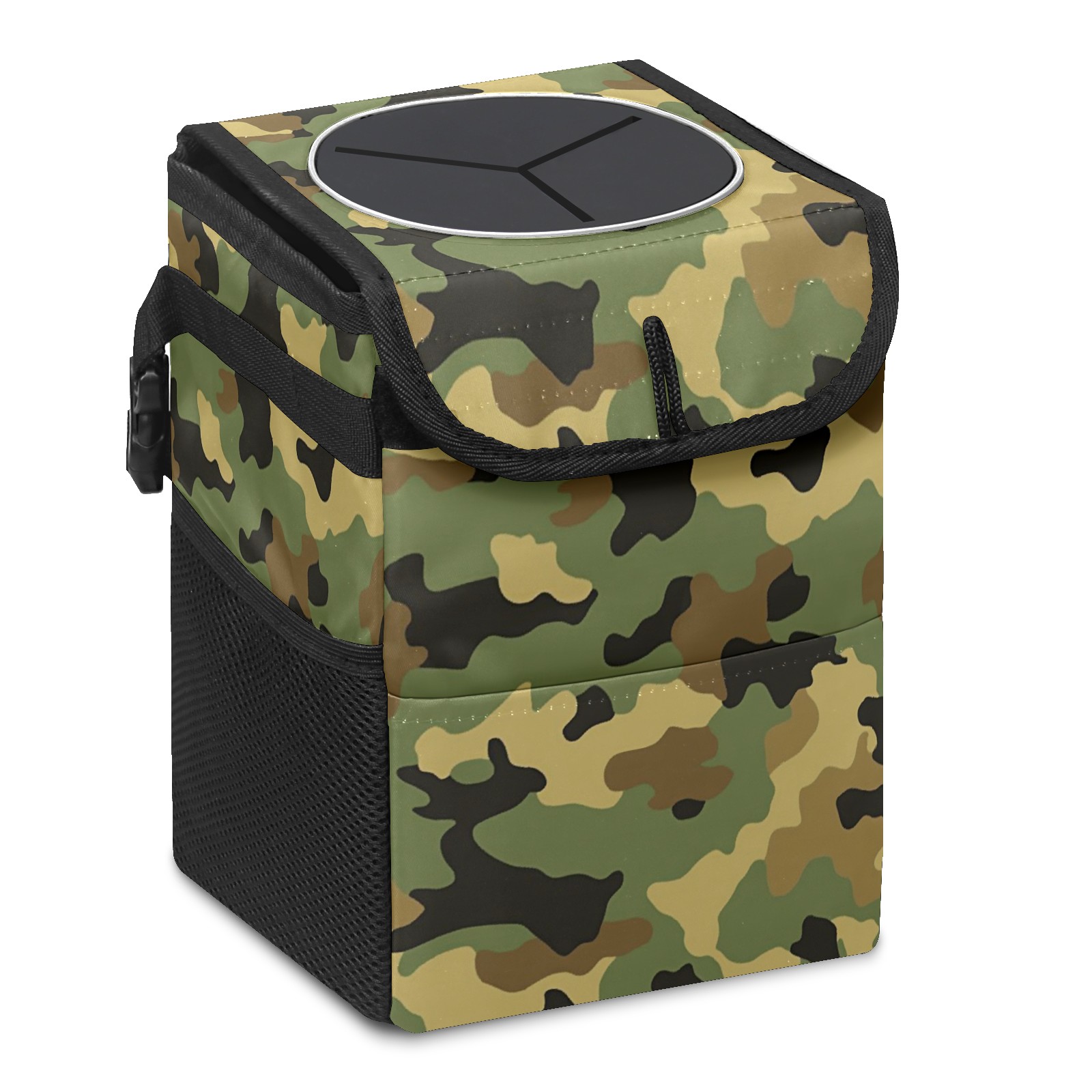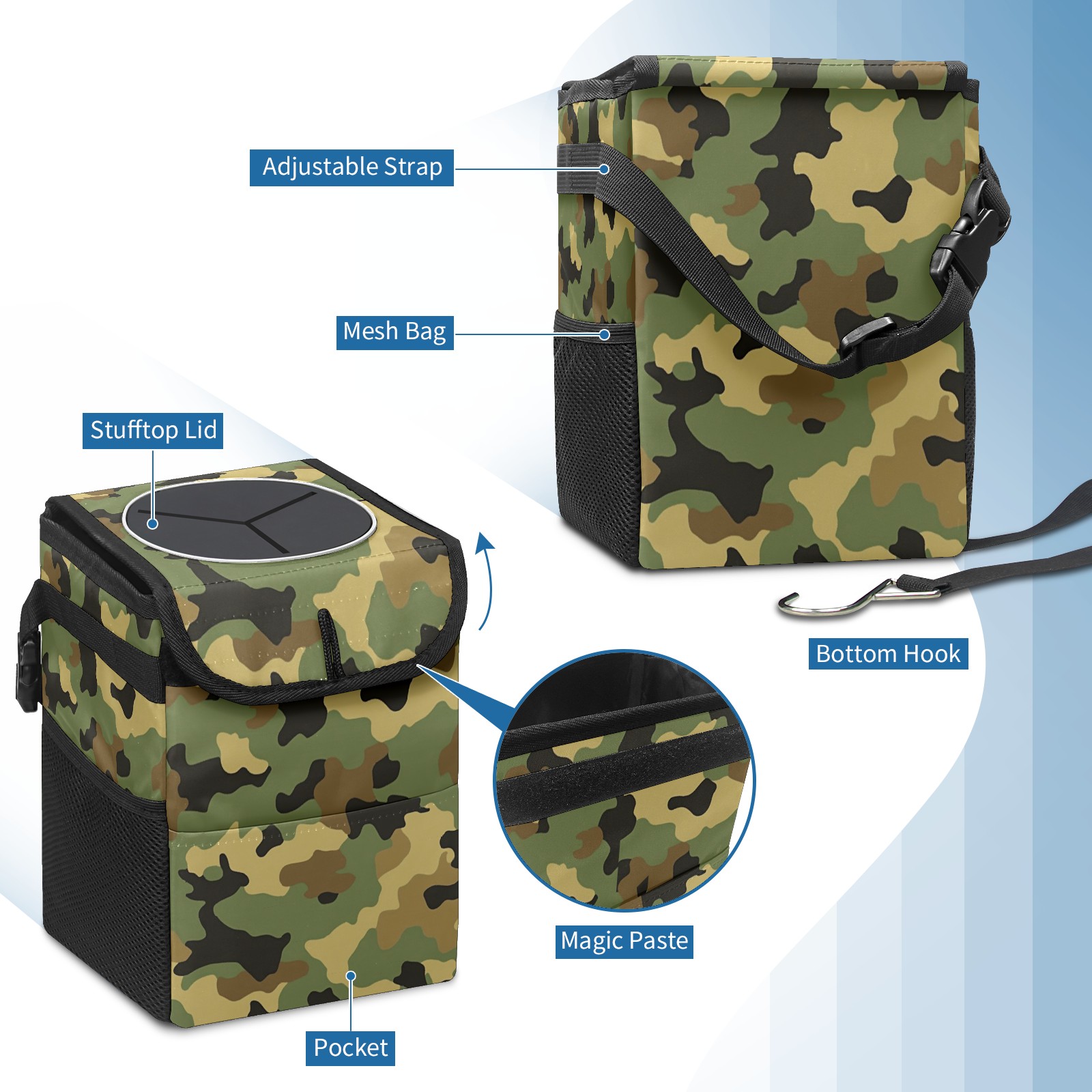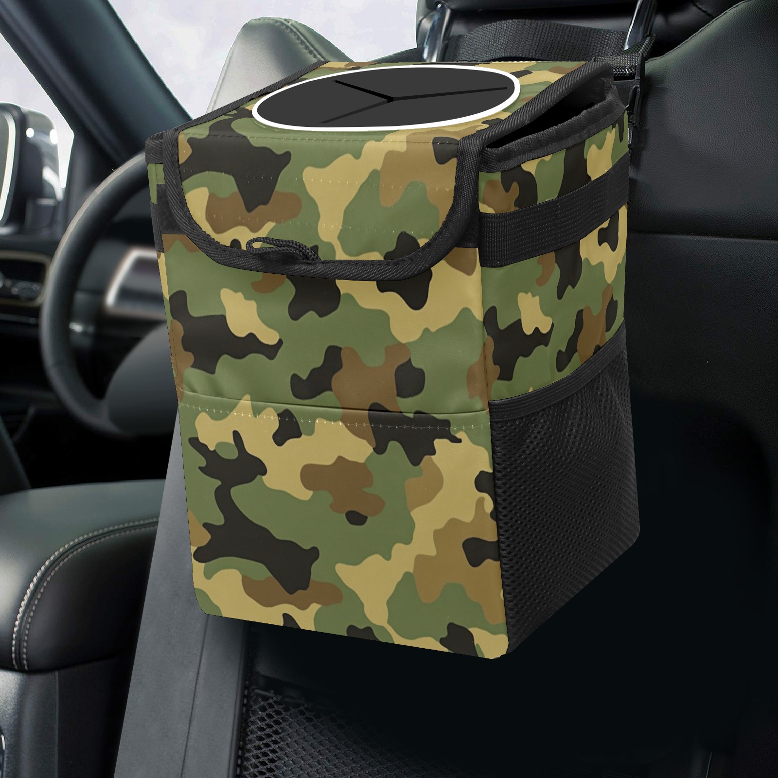 Car Trash Can with Lid, Small Portable Hanging Automotive Garbage Bin for Vehicles, Leakproof Waste Bag Container for SUV Truck Van Interior Auto Travel Road Trips(Camouflage)