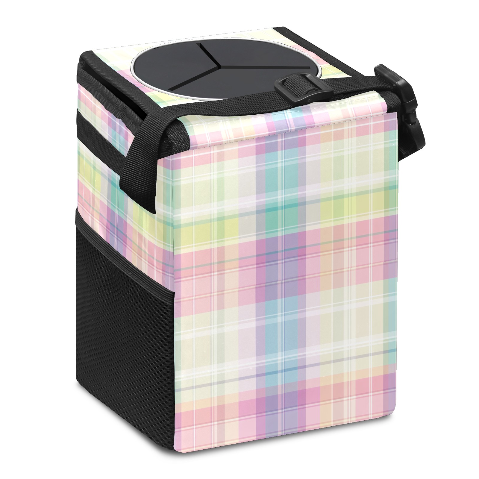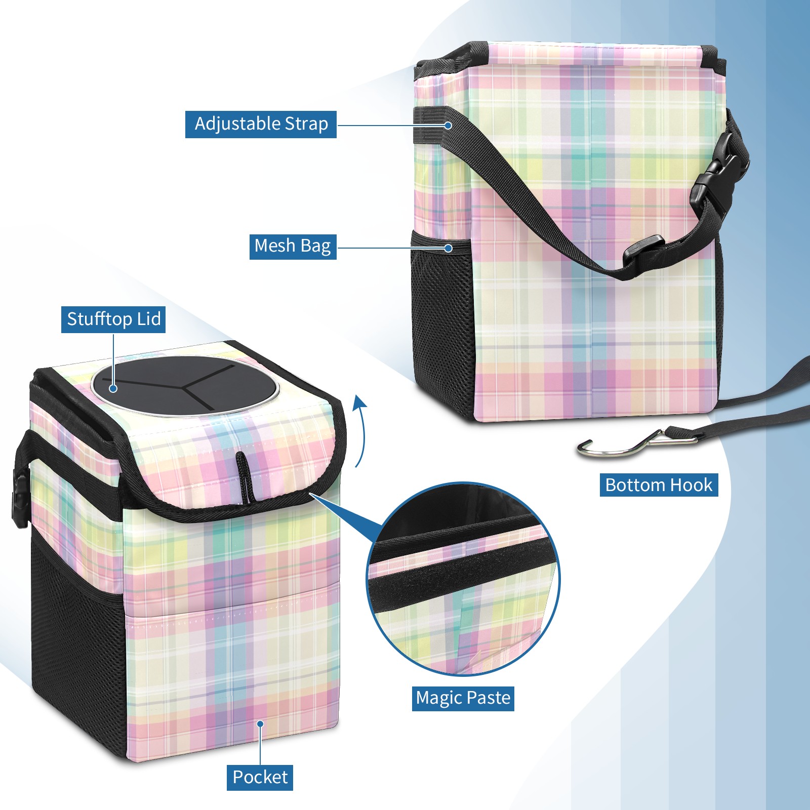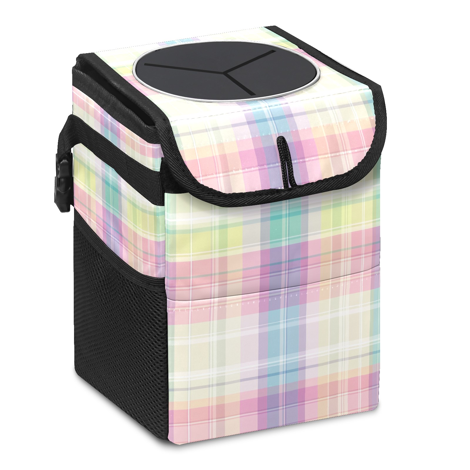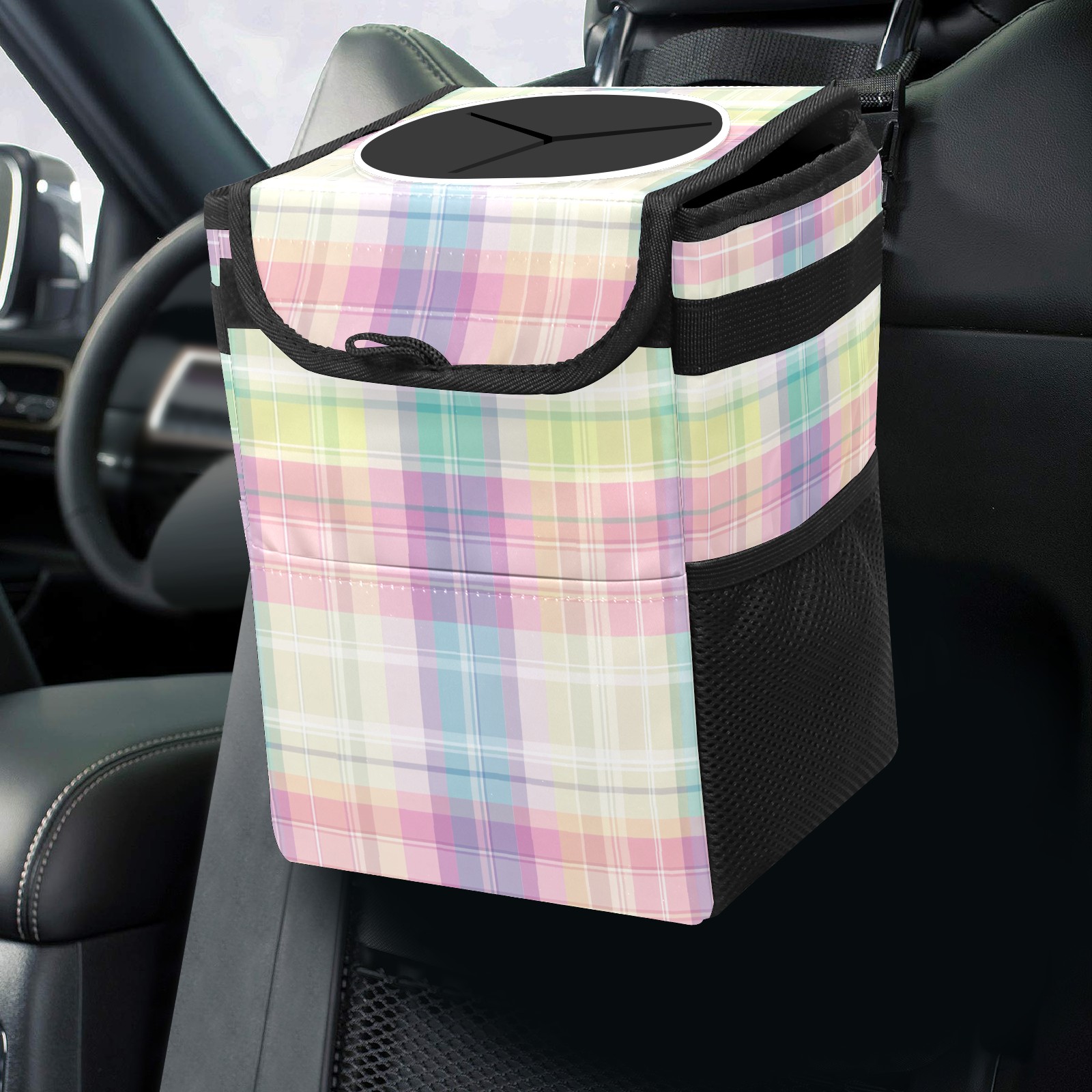 Car Trash Can with Lid, Small Portable Hanging Automotive Garbage Bin for Vehicles, Leakproof Waste Bag Container for SUV Truck Van Interior Auto Travel Road Trips(Colorful Gingham)