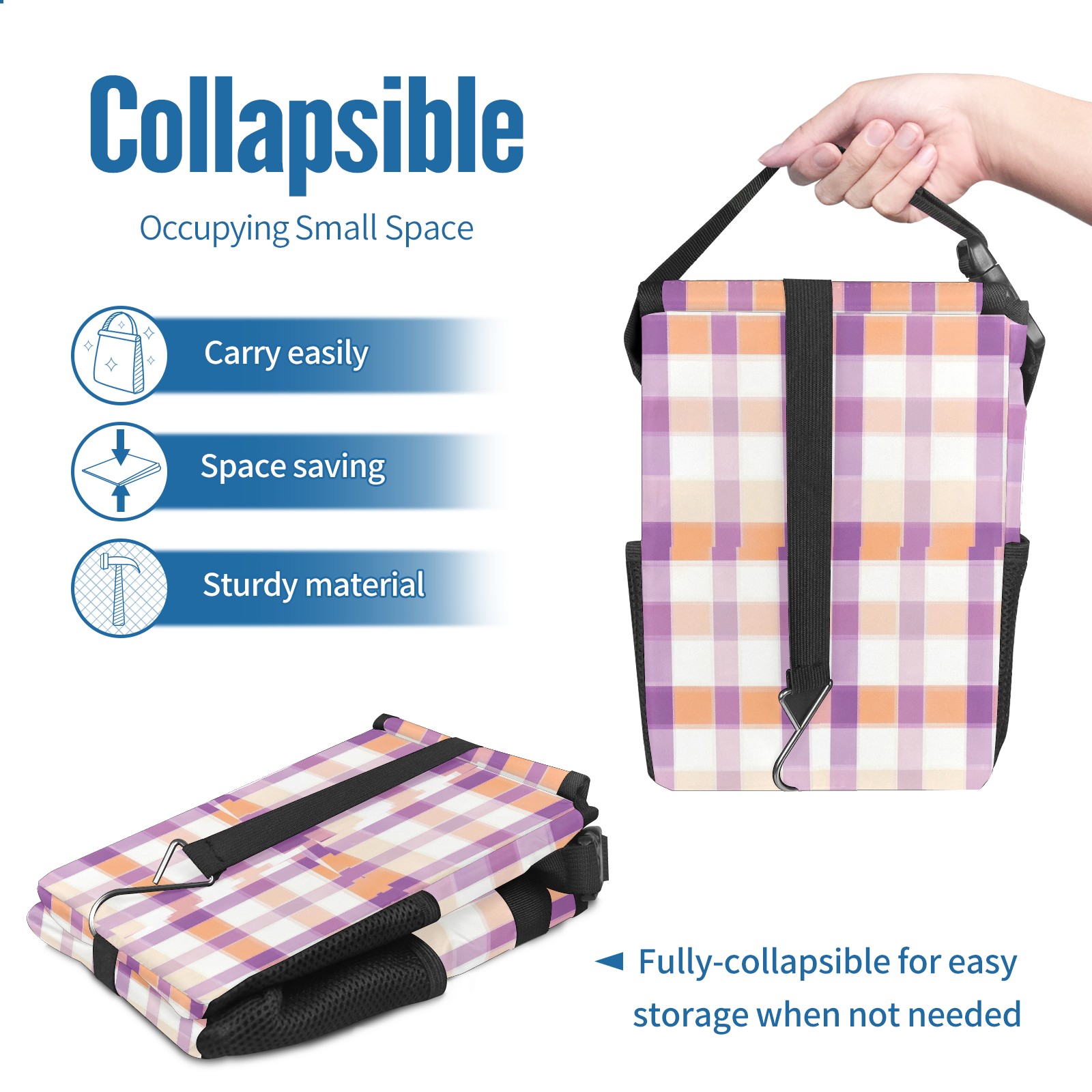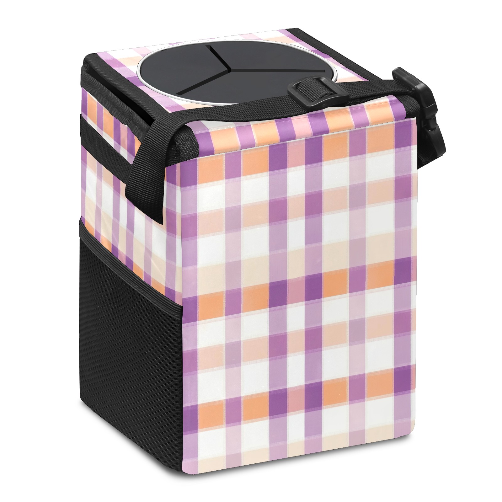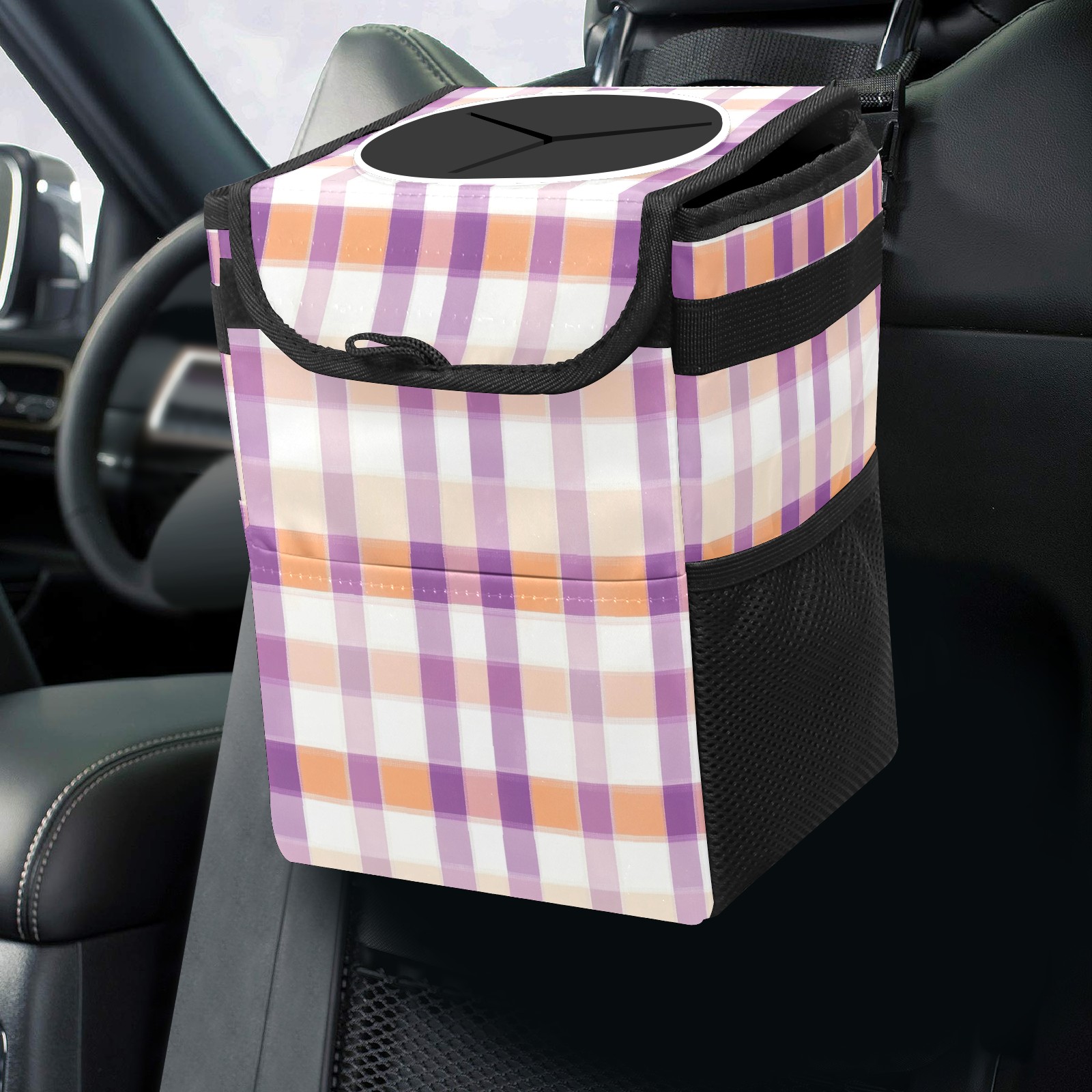 Car Trash Can with Lid, Small Portable Hanging Automotive Garbage Bin for Vehicles, Leakproof Waste Bag Container for SUV Truck Van Interior Auto Travel Road Trips(Purple And Peach Gingham)