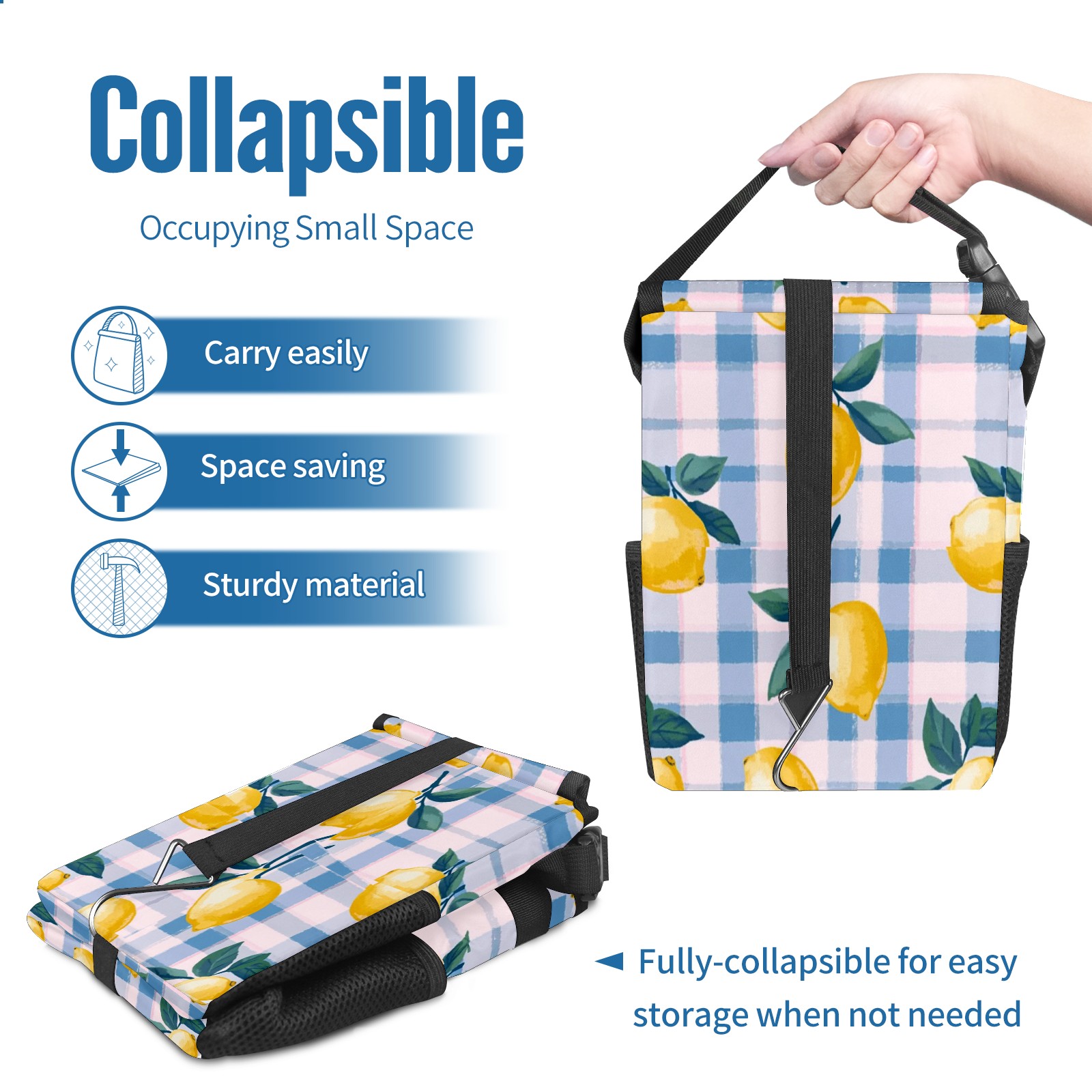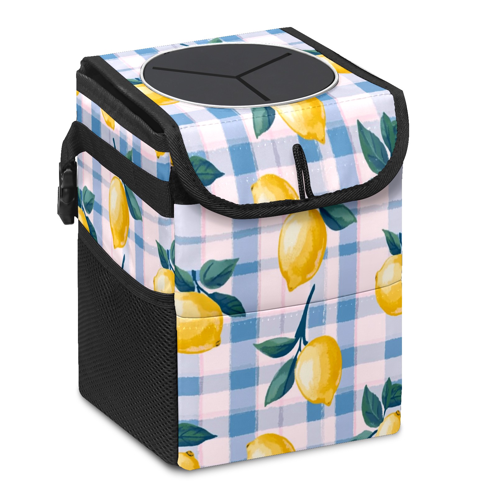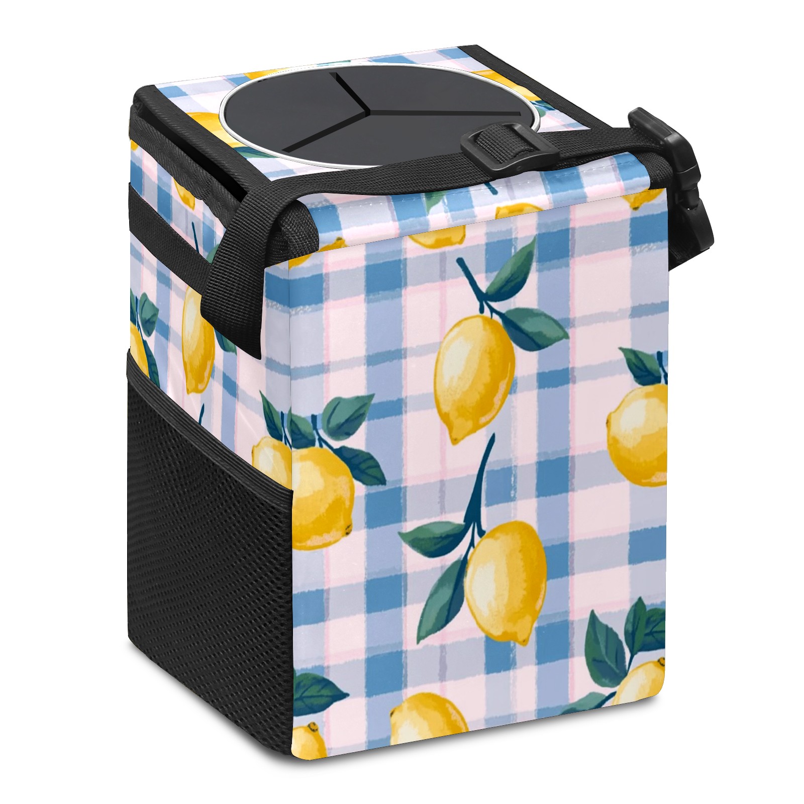 Car Trash Can with Lid, Small Portable Hanging Automotive Garbage Bin for Vehicles, Leakproof Waste Bag Container for SUV Truck Van Interior Auto Travel Road Trips(Lemons)