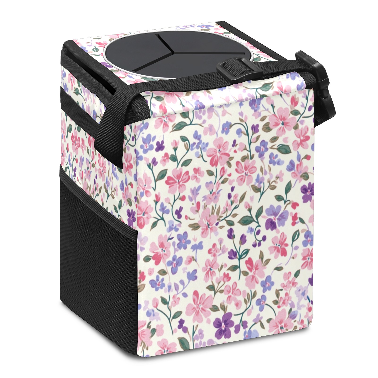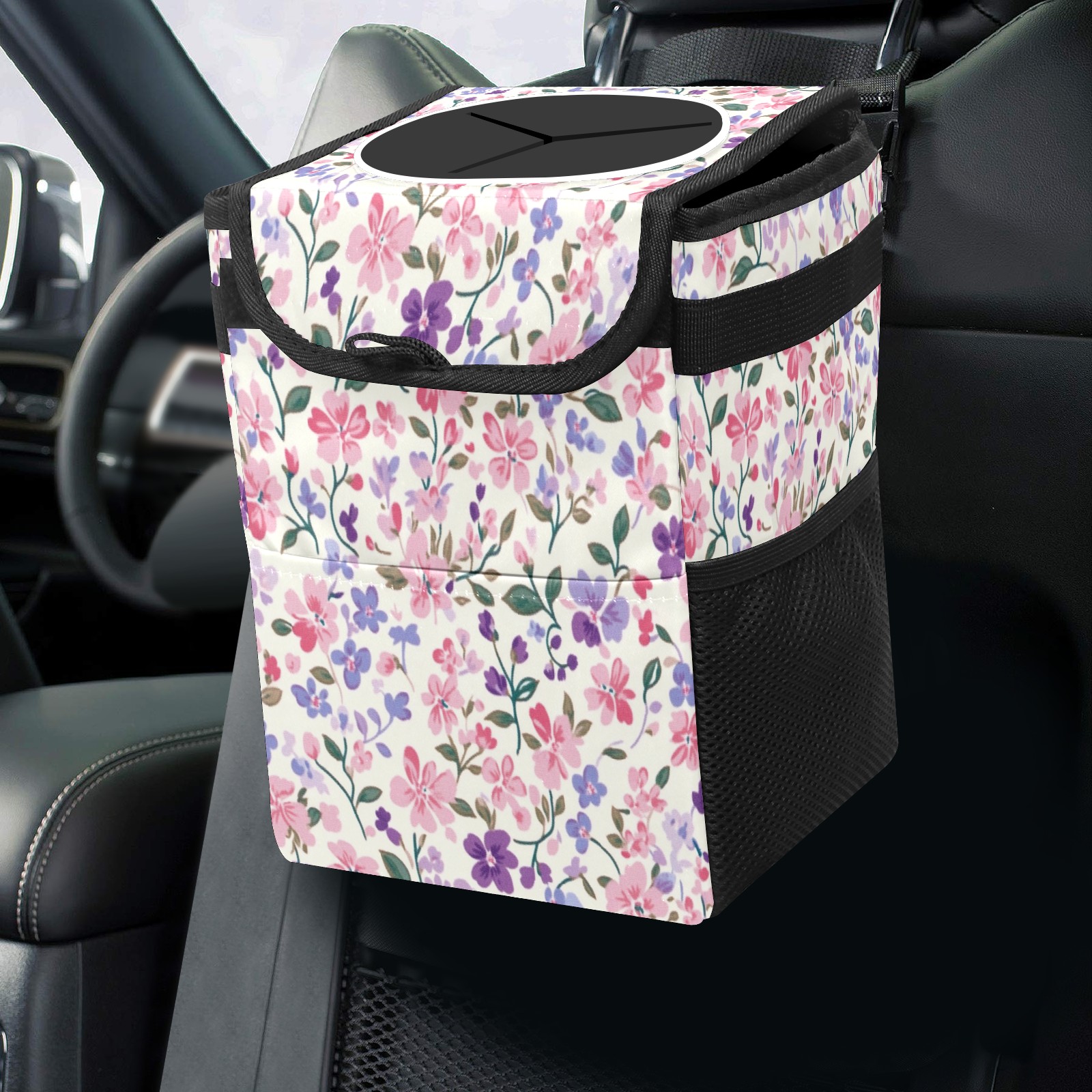 Car Trash Can with Lid, Small Portable Hanging Automotive Garbage Bin for Vehicles, Leakproof Waste Bag Container for SUV Truck Van Interior Auto Travel Road Trips(Lulu And Georges Small Floral)