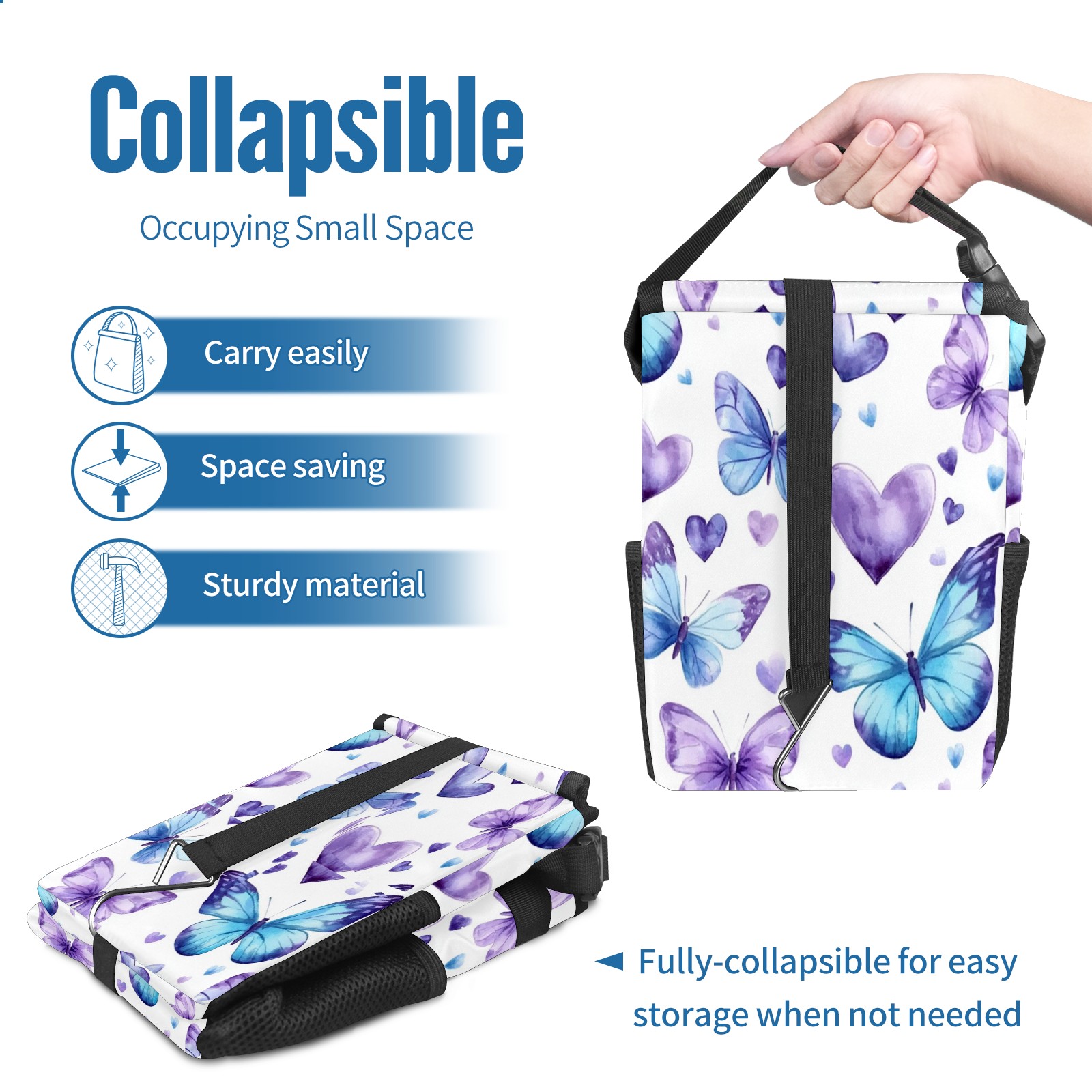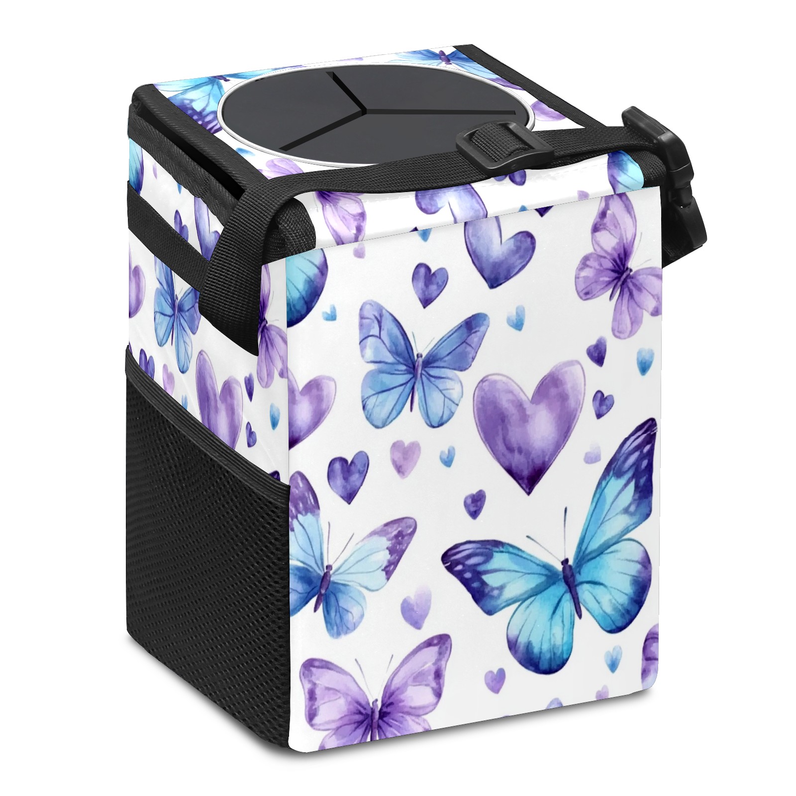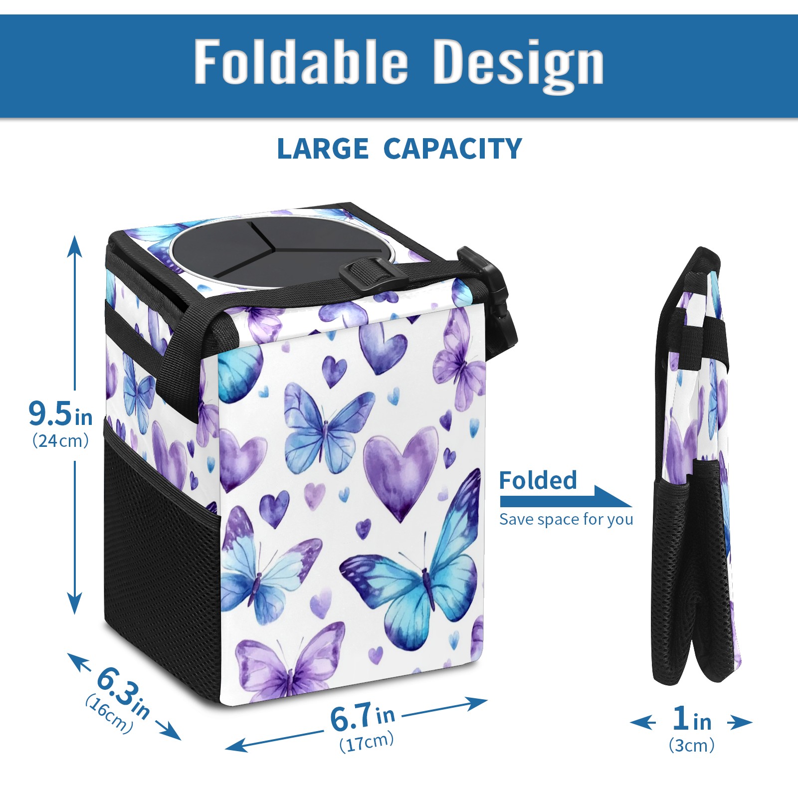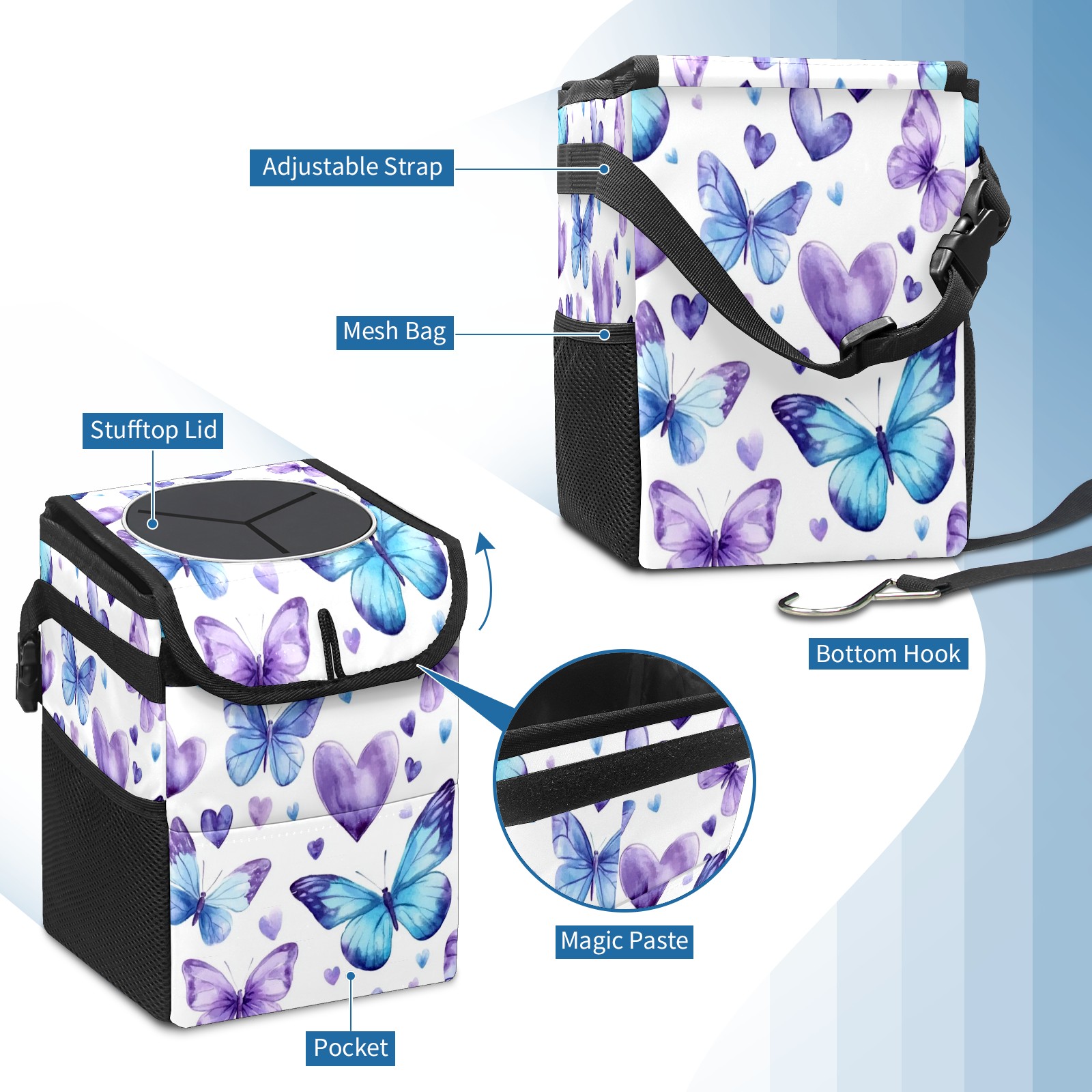Car Trash Can with Lid, Small Portable Hanging Automotive Garbage Bin for Vehicles, Leakproof Waste Bag Container for SUV Truck Van Interior Auto Travel Road Trips(Watercolor Butterfly)