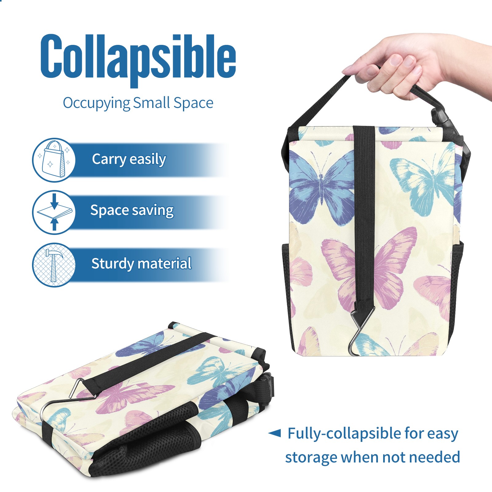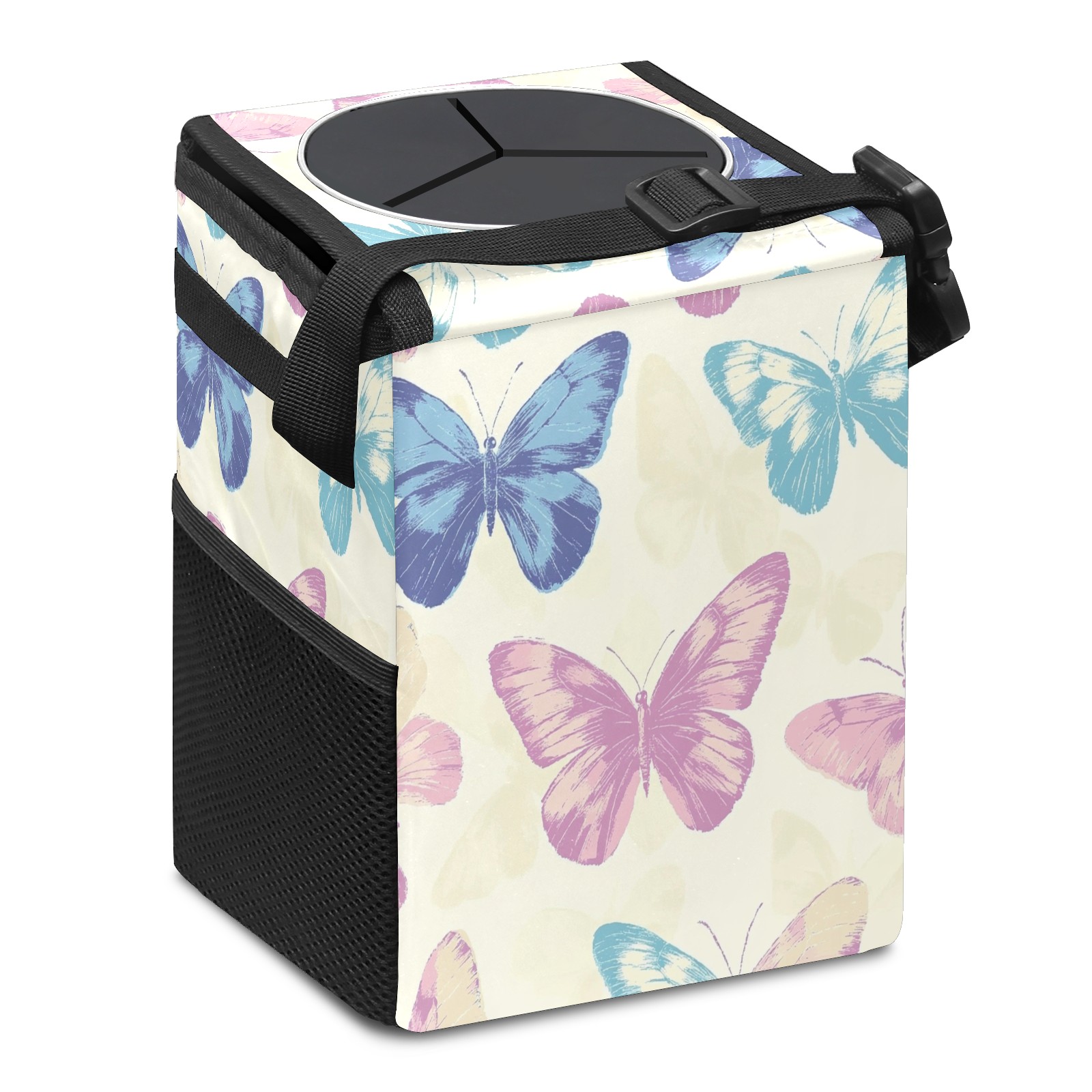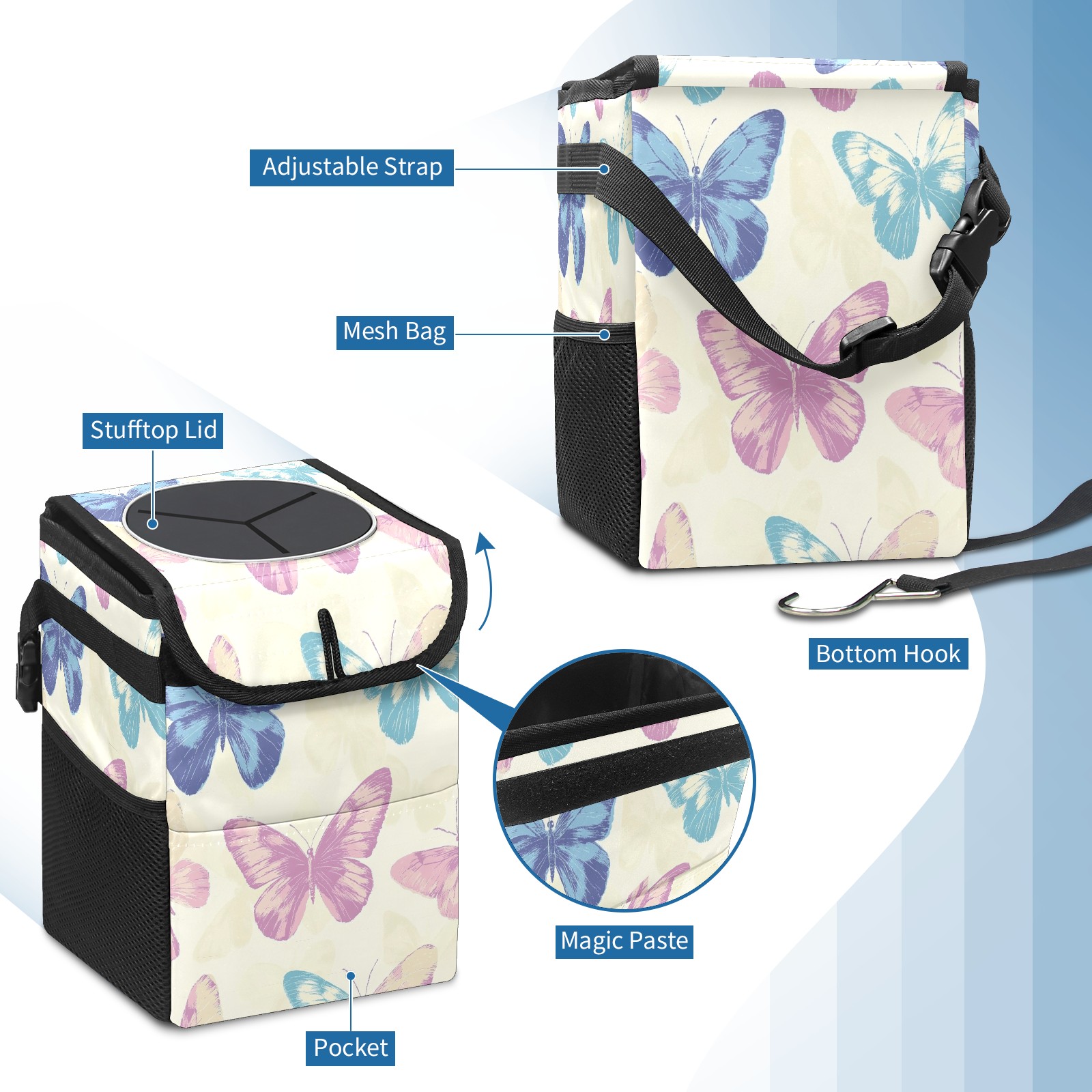 Car Trash Can with Lid, Small Portable Hanging Automotive Garbage Bin for Vehicles, Leakproof Waste Bag Container for SUV Truck Van Interior Auto Travel Road Trips(Pink And Blue Butterflies)