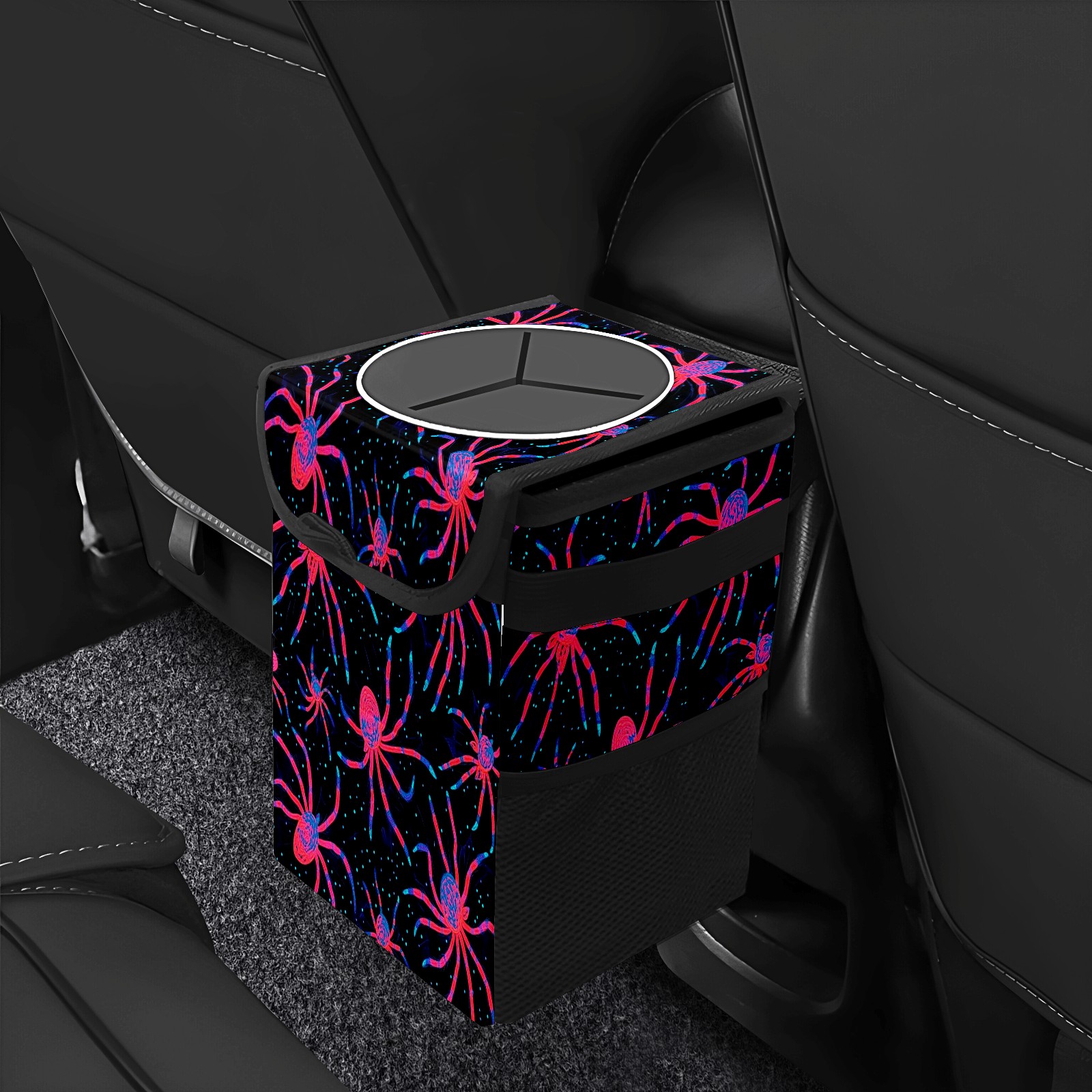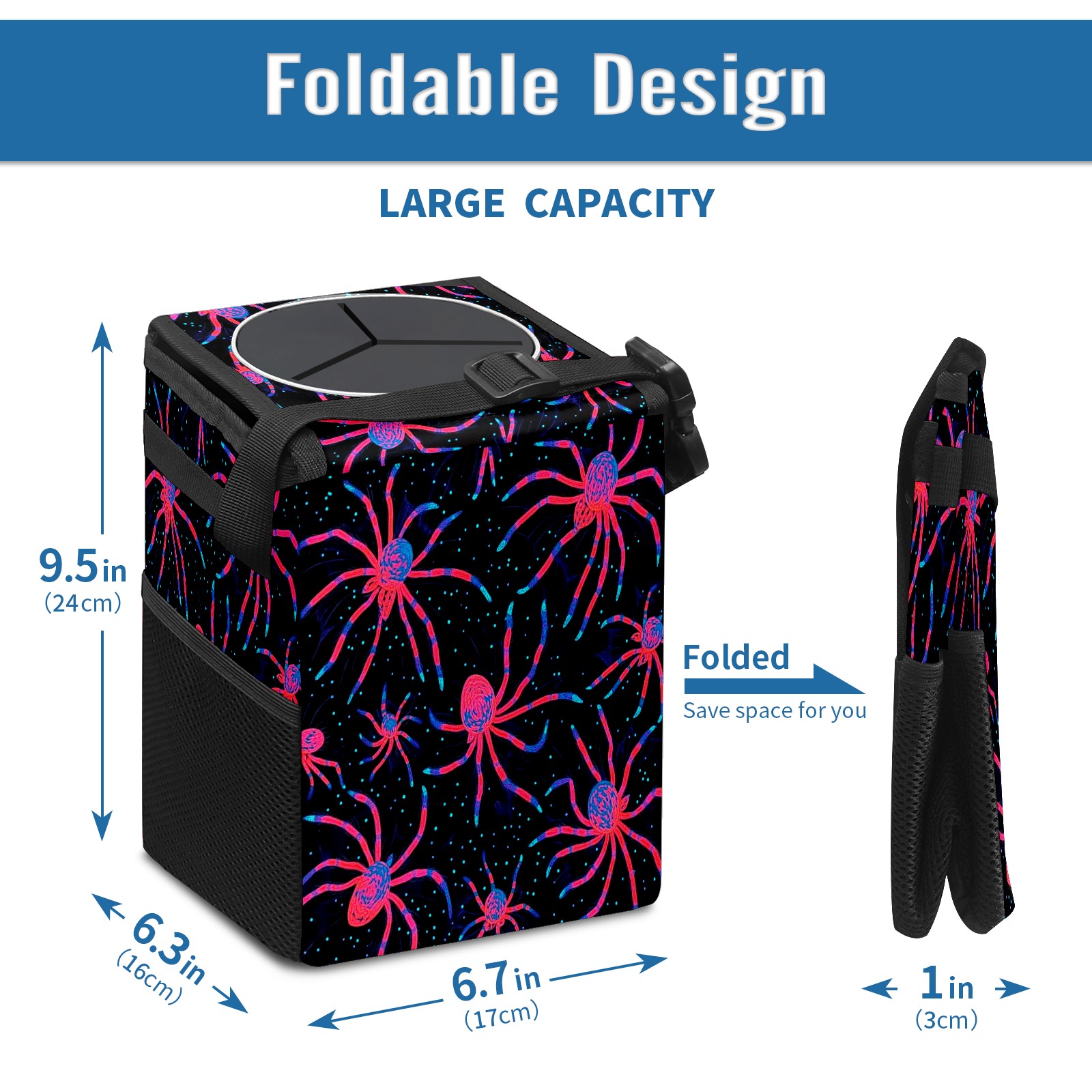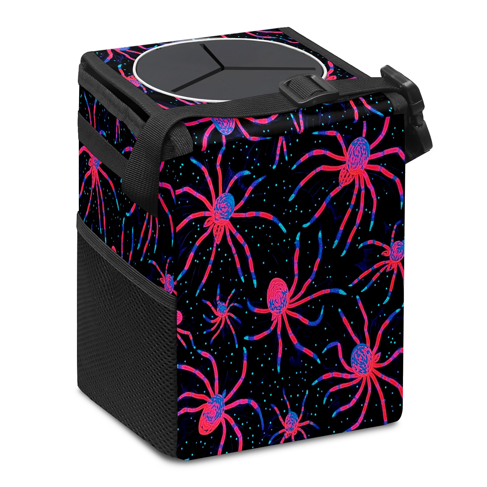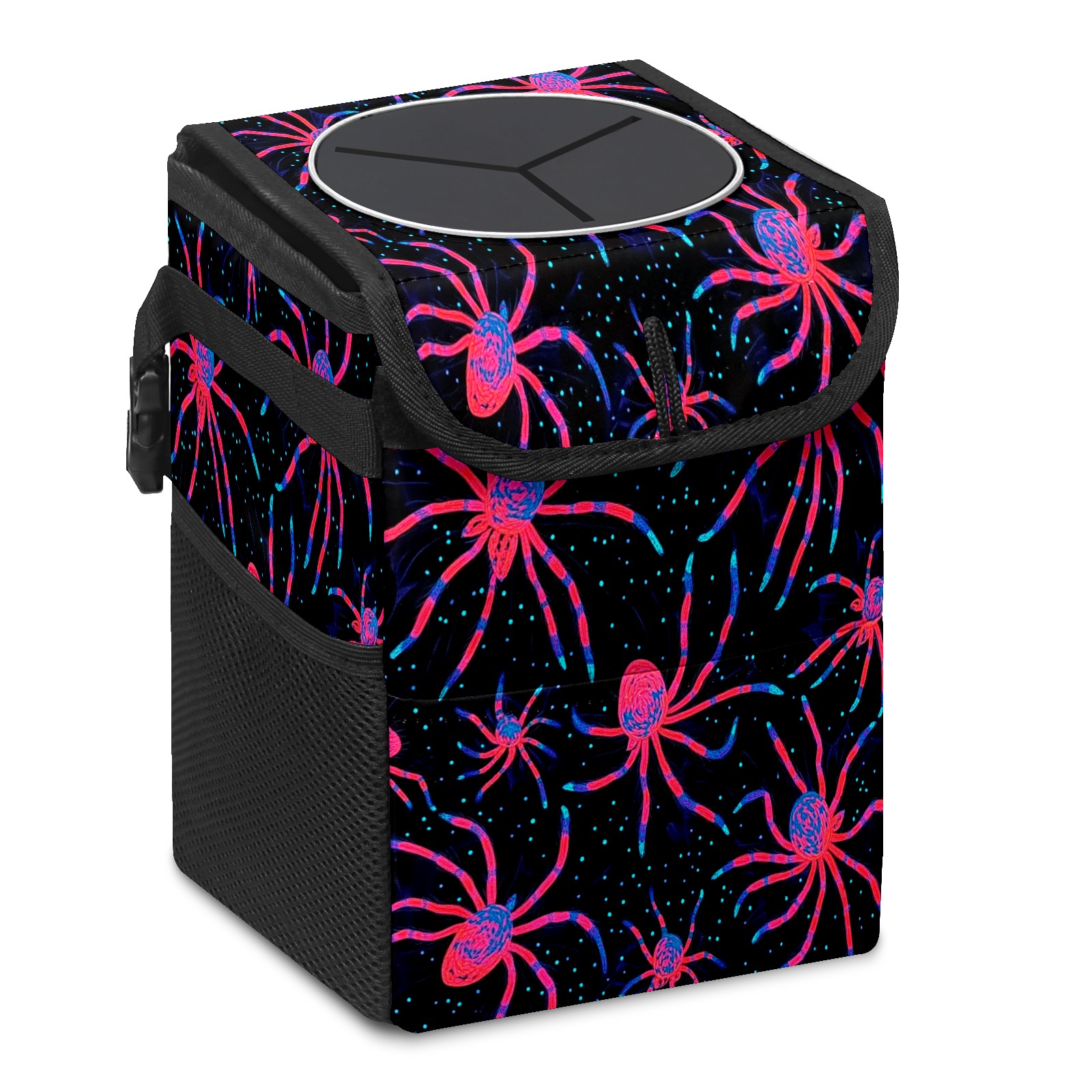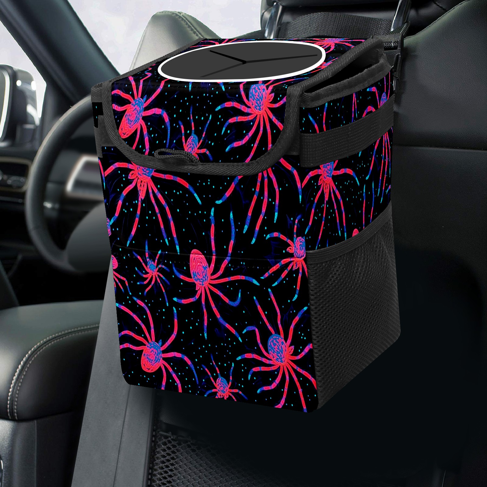 Car Trash Can with Lid, Small Portable Hanging Automotive Garbage Bin for Vehicles, Leakproof Waste Bag Container for SUV Truck Van Interior Auto Travel Road Trips(Neon Red And Blue Spider)
