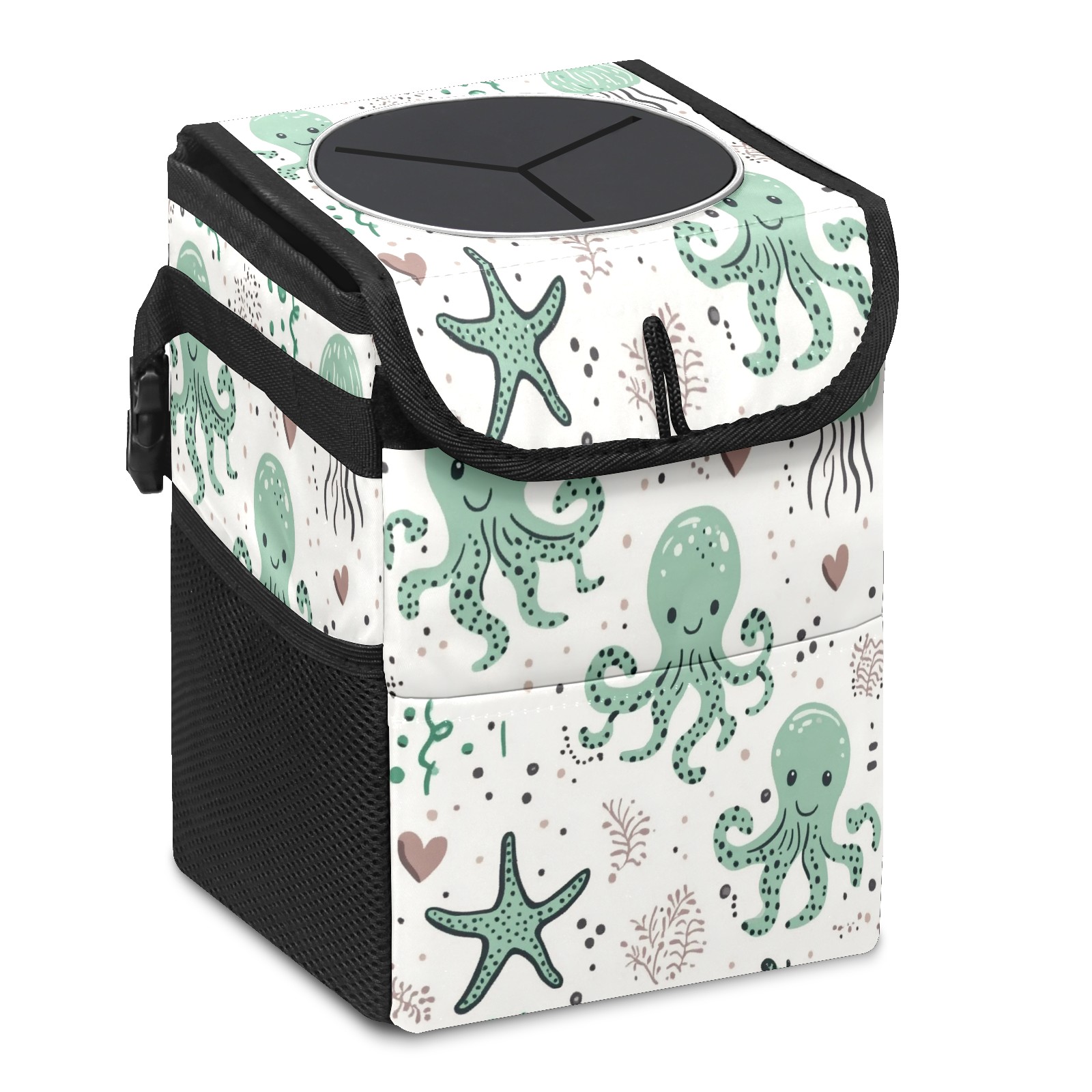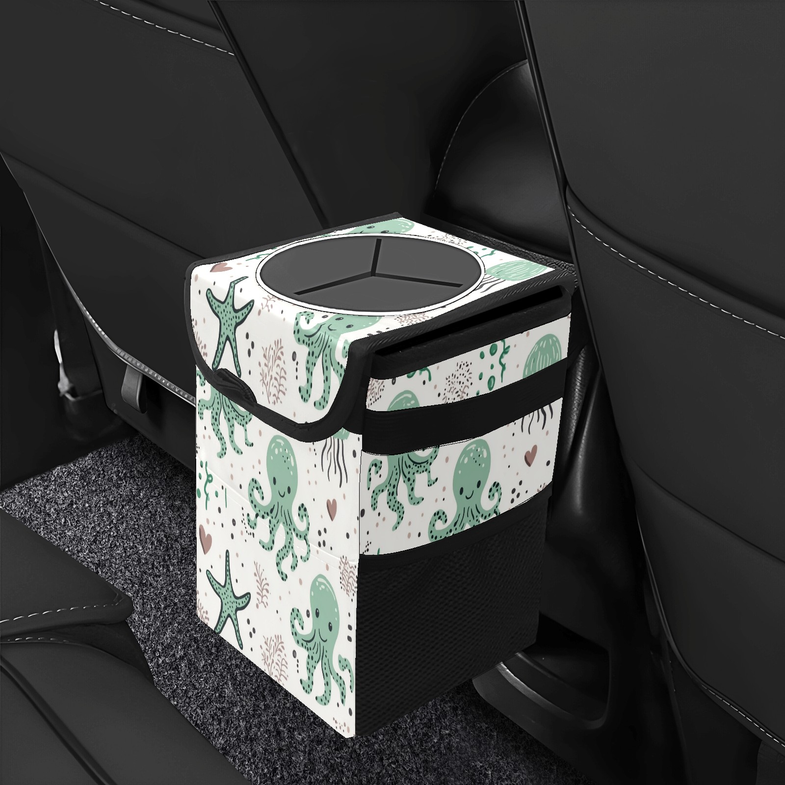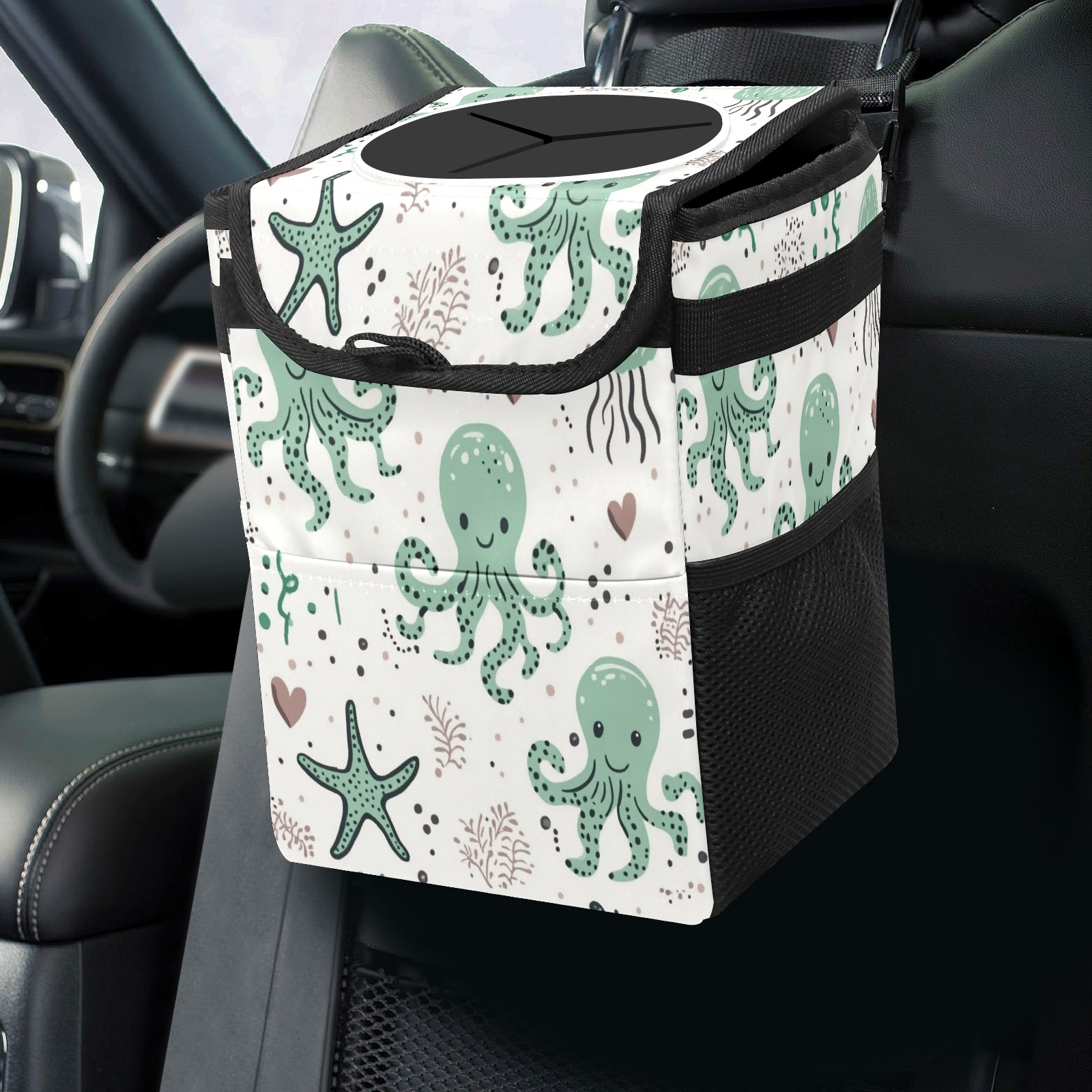 Car Trash Can with Lid, Small Portable Hanging Automotive Garbage Bin for Vehicles, Leakproof Waste Bag Container for SUV Truck Van Interior Auto Travel Road Trips(Cute Octopuses)