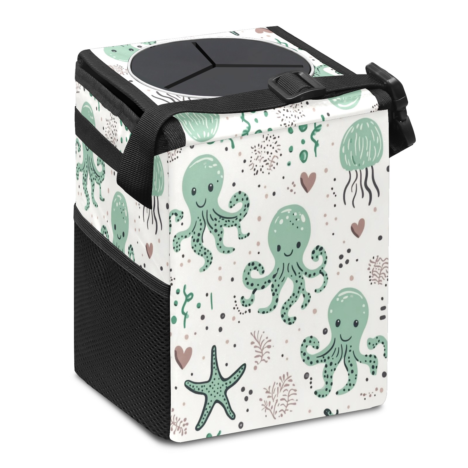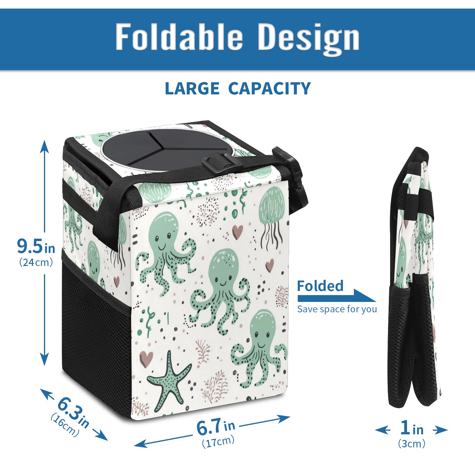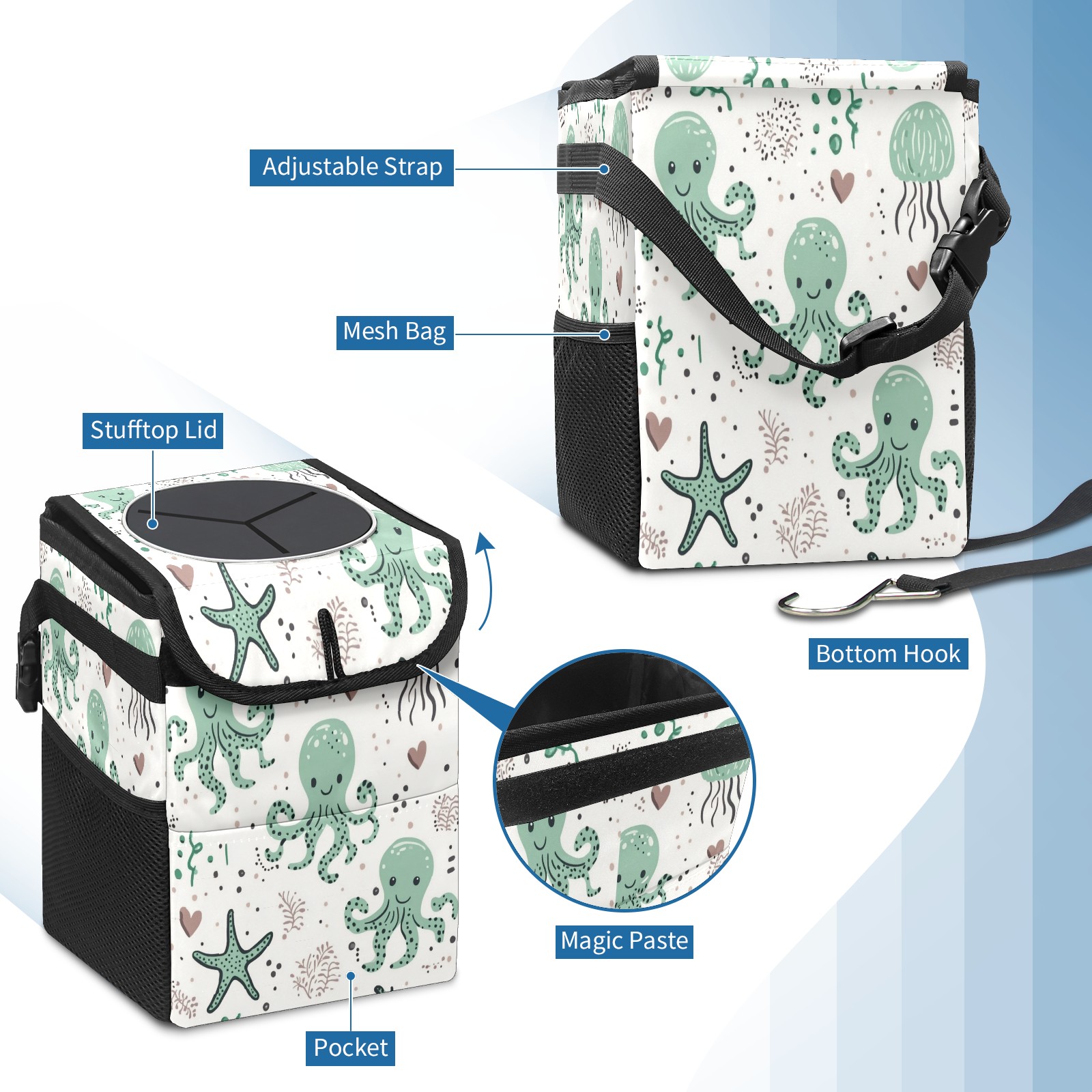 Car Trash Can with Lid, Small Portable Hanging Automotive Garbage Bin for Vehicles, Leakproof Waste Bag Container for SUV Truck Van Interior Auto Travel Road Trips(Cute Octopuses)