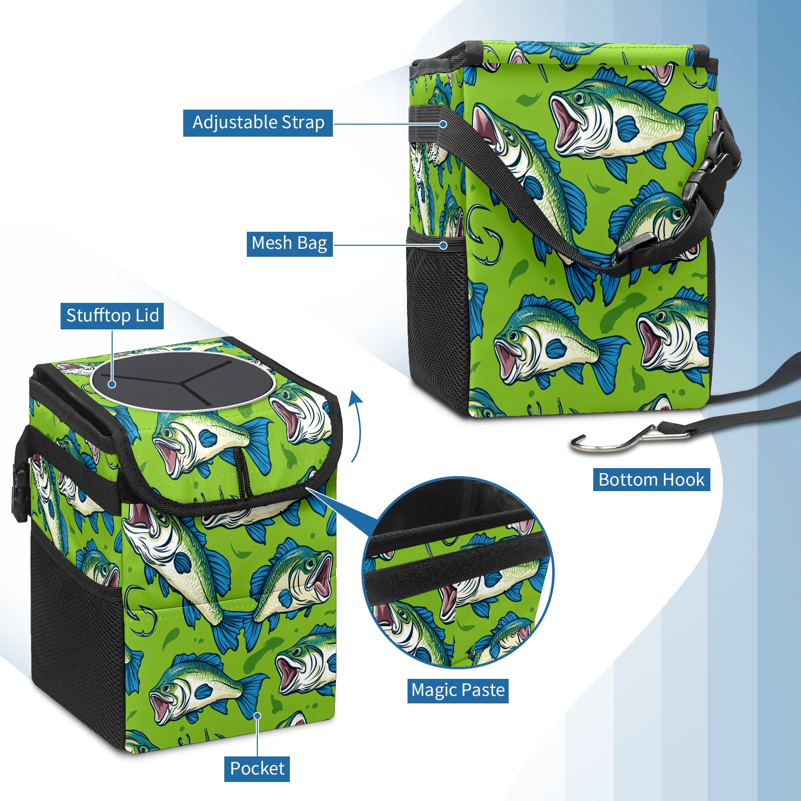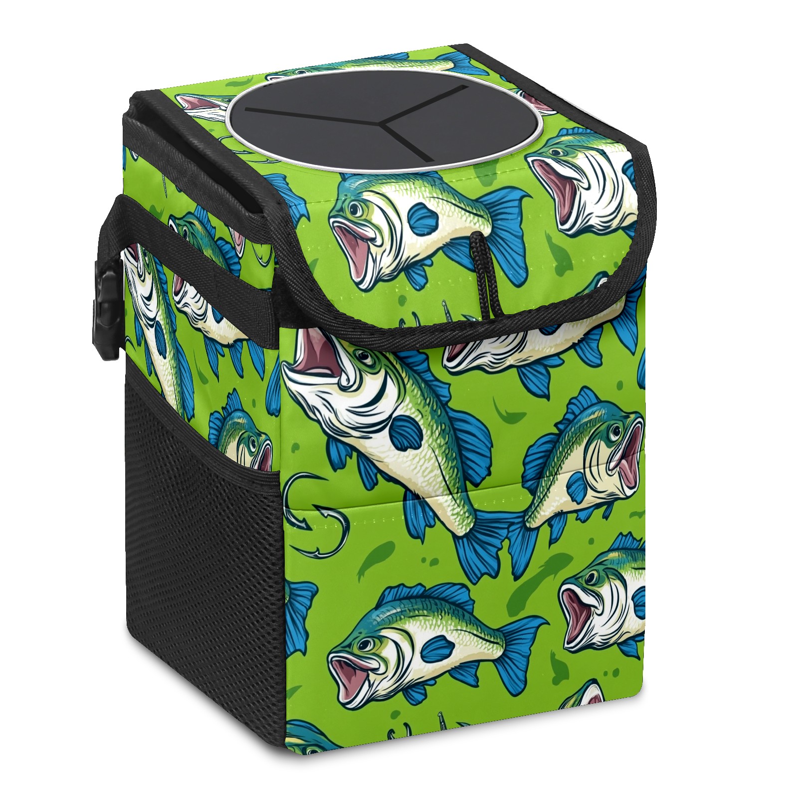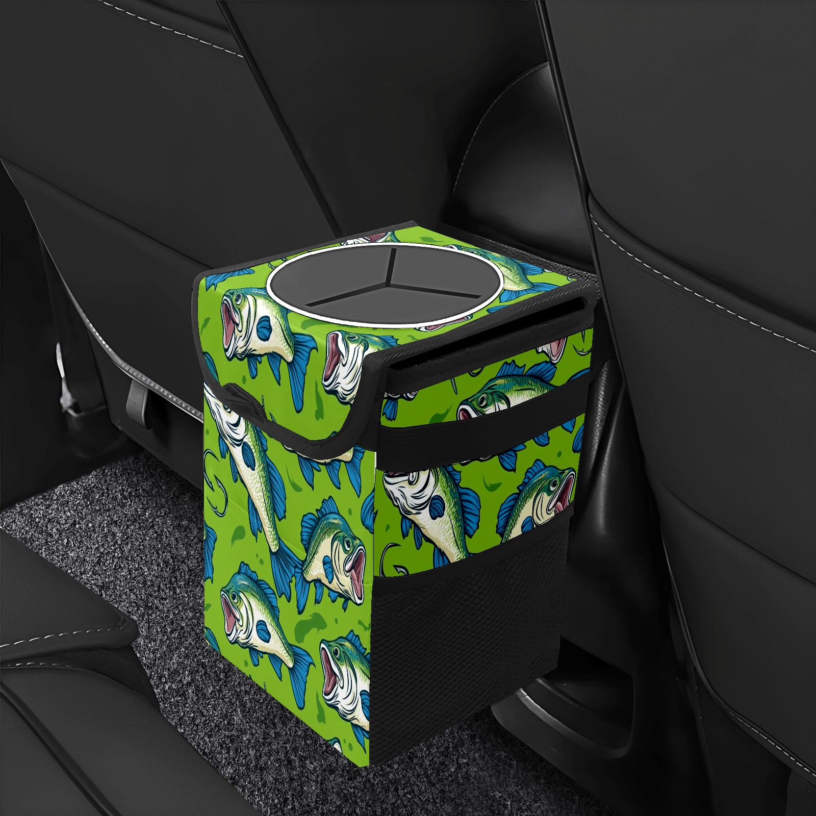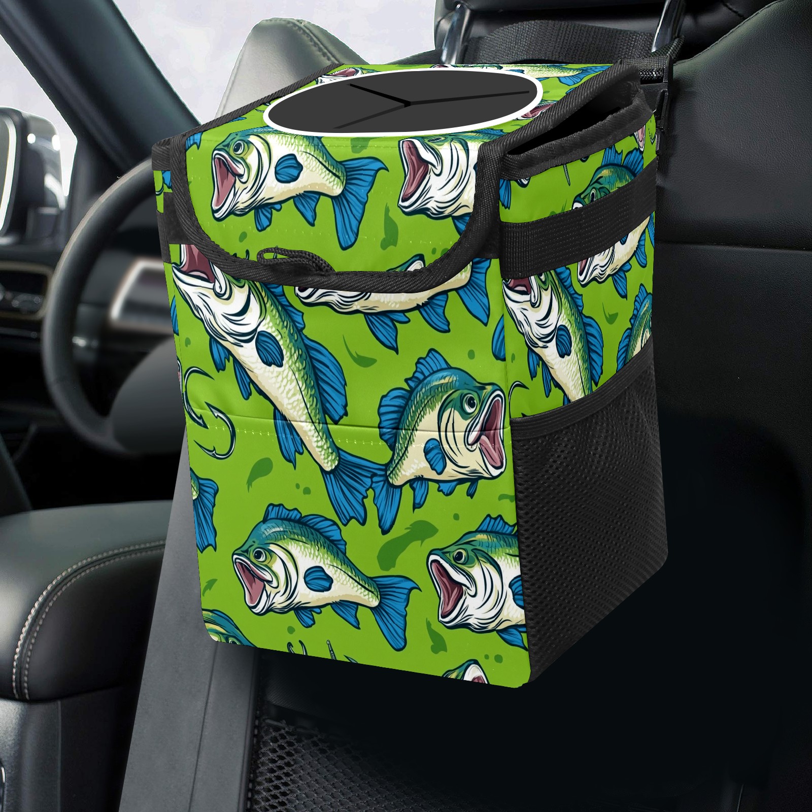 Car Trash Can with Lid, Small Portable Hanging Automotive Garbage Bin for Vehicles, Leakproof Waste Bag Container for SUV Truck Van Interior Auto Travel Road Trips(Fish)