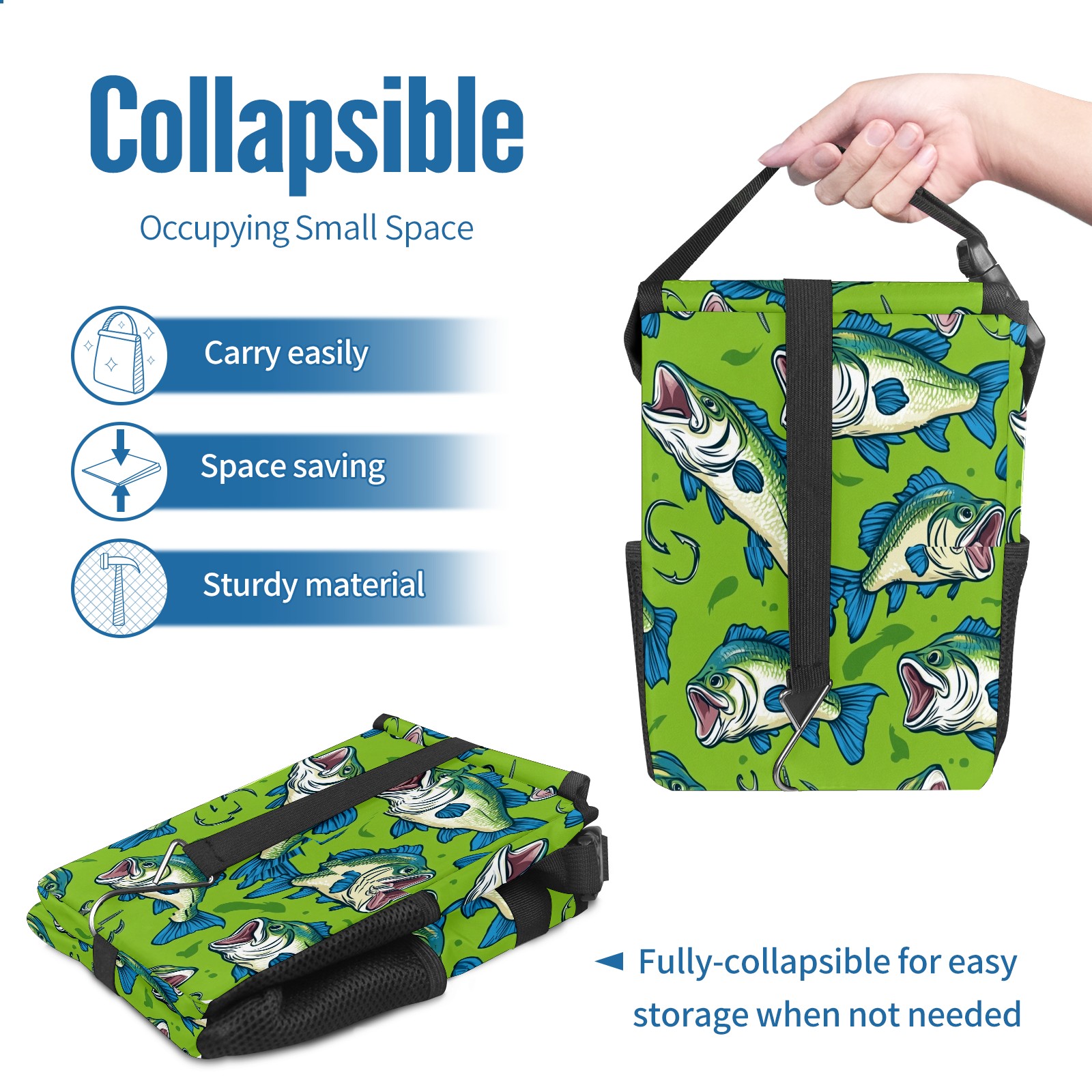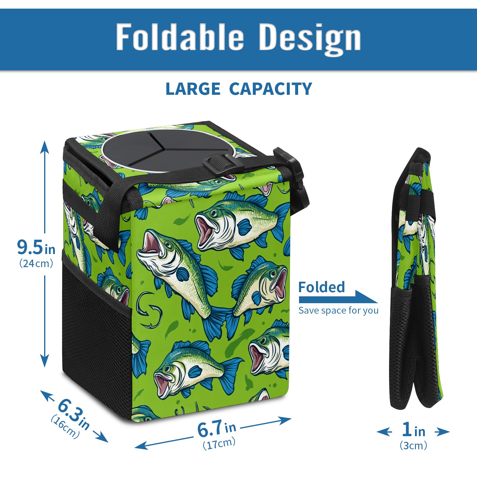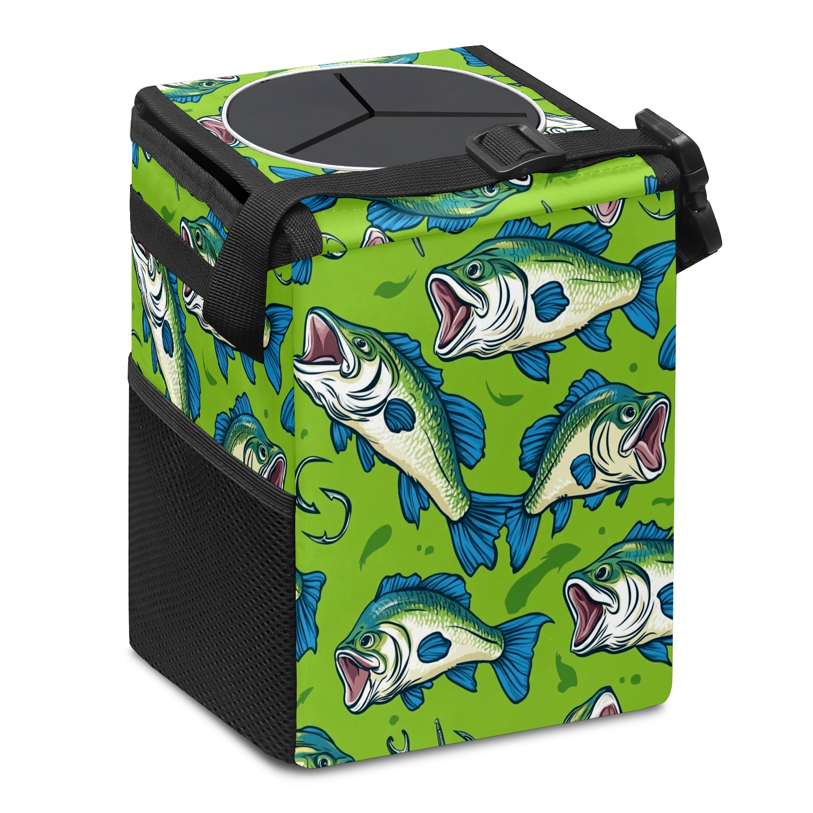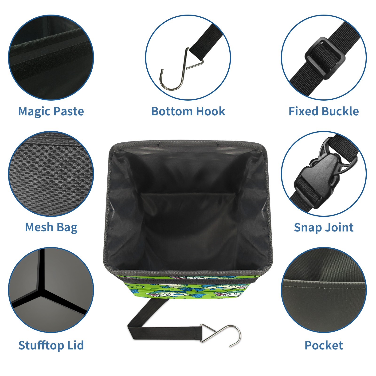 Car Trash Can with Lid, Small Portable Hanging Automotive Garbage Bin for Vehicles, Leakproof Waste Bag Container for SUV Truck Van Interior Auto Travel Road Trips(Fish)