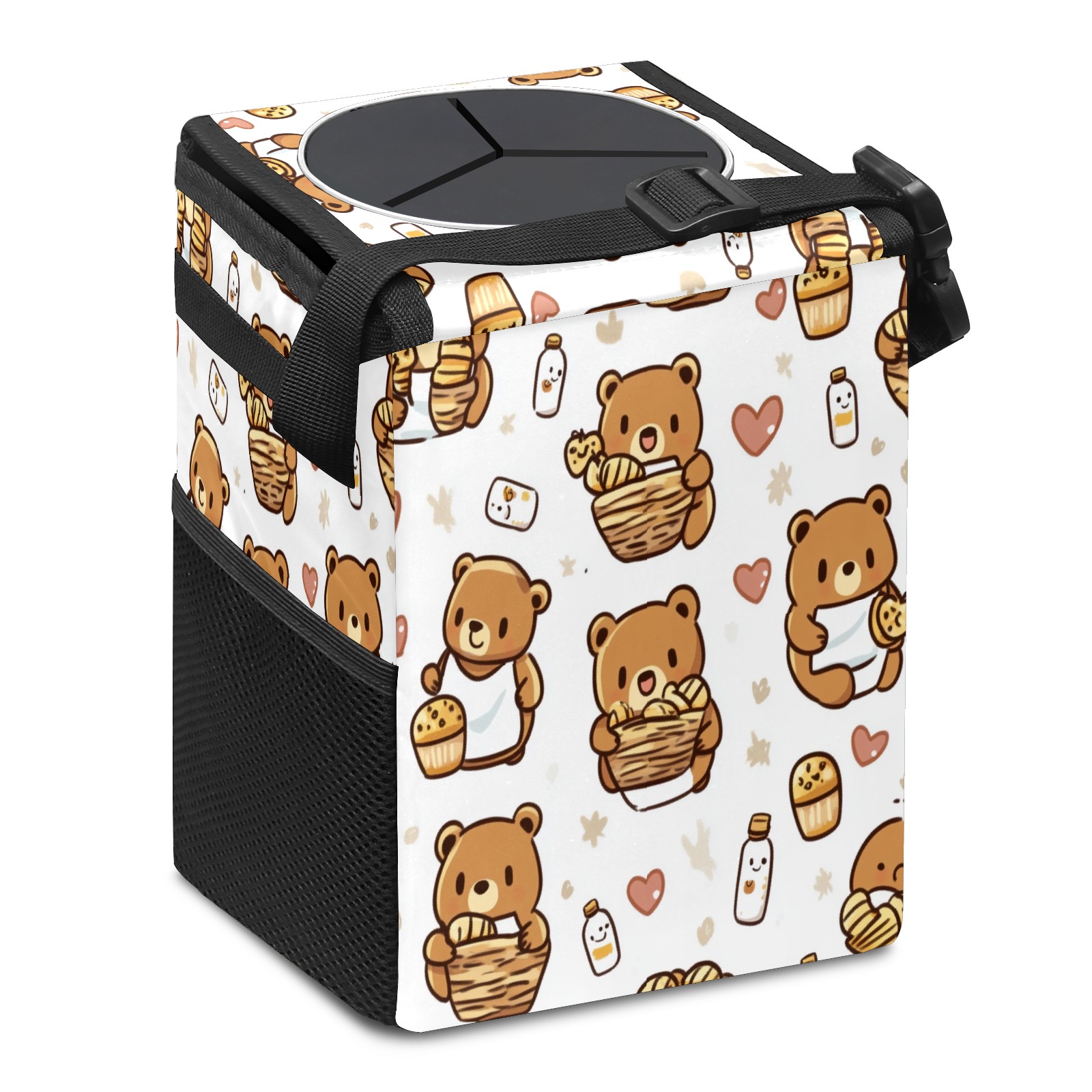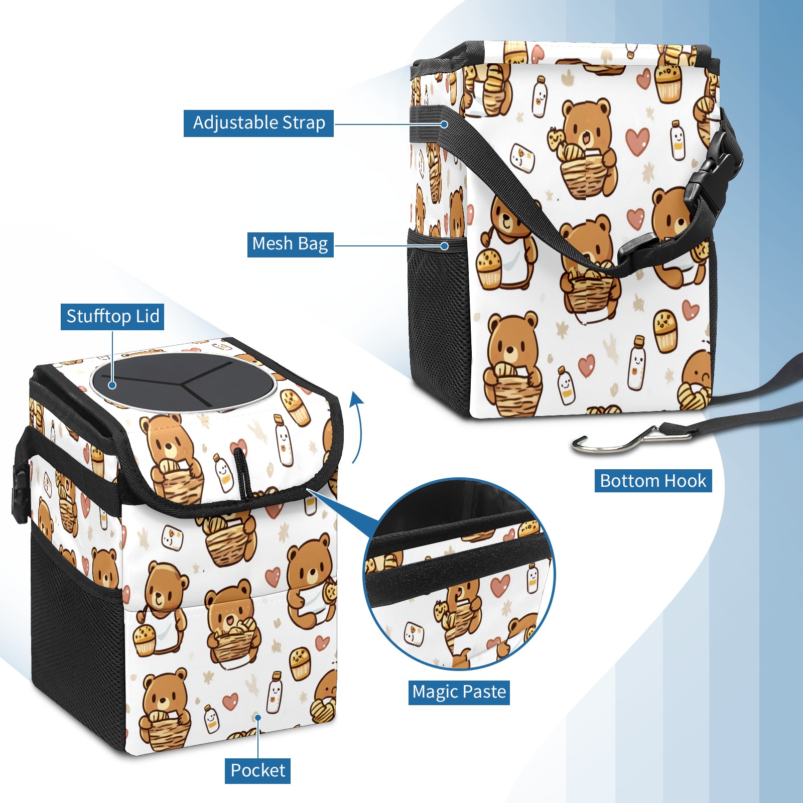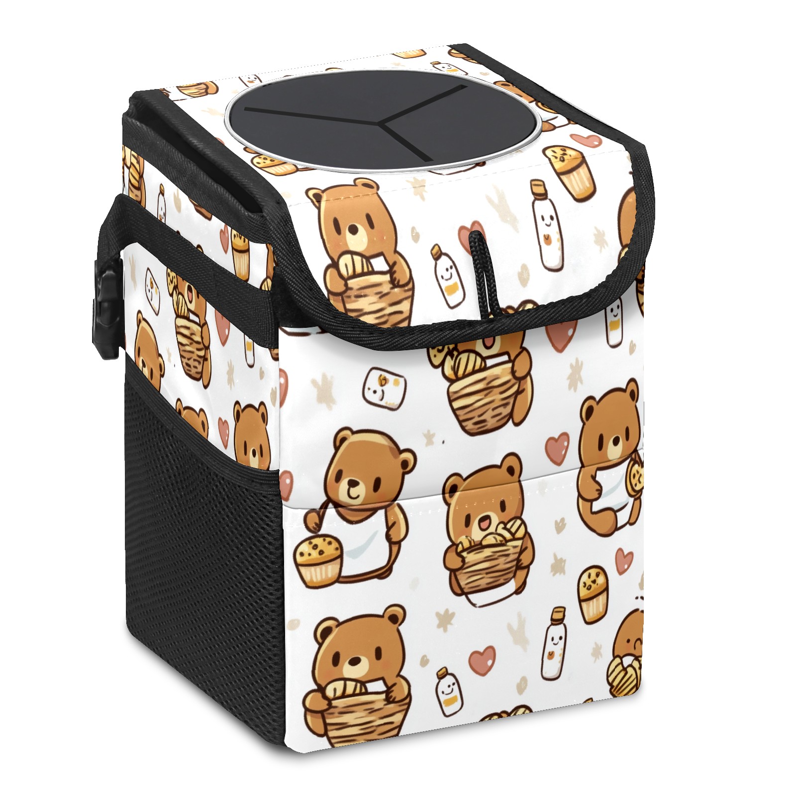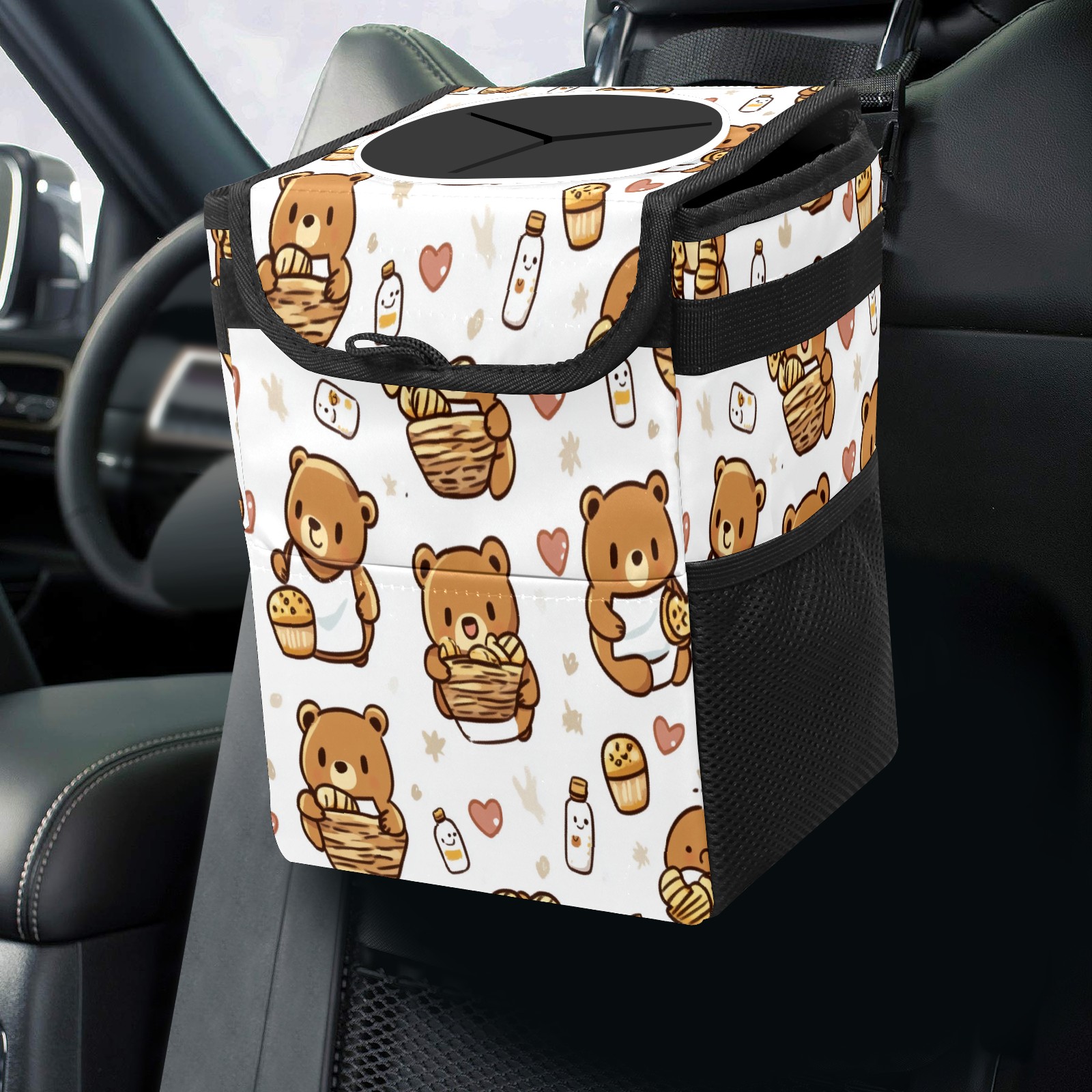 Car Trash Can with Lid, Small Portable Hanging Automotive Garbage Bin for Vehicles, Leakproof Waste Bag Container for SUV Truck Van Interior Auto Travel Road Trips(Bear And Honey Pot)