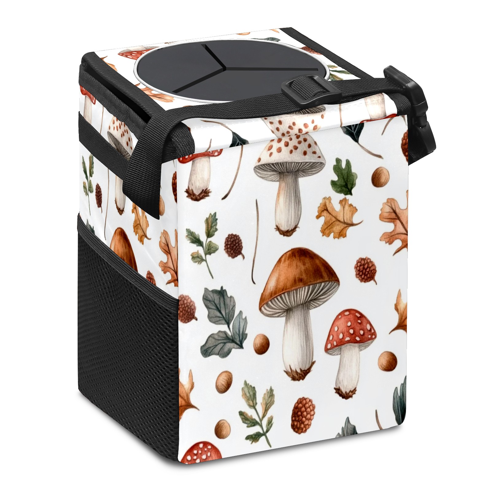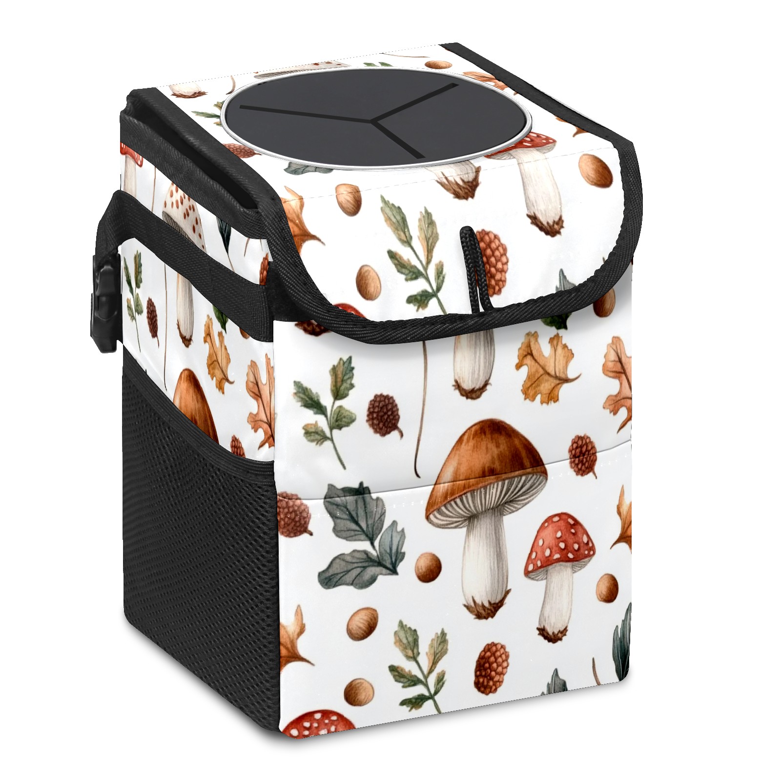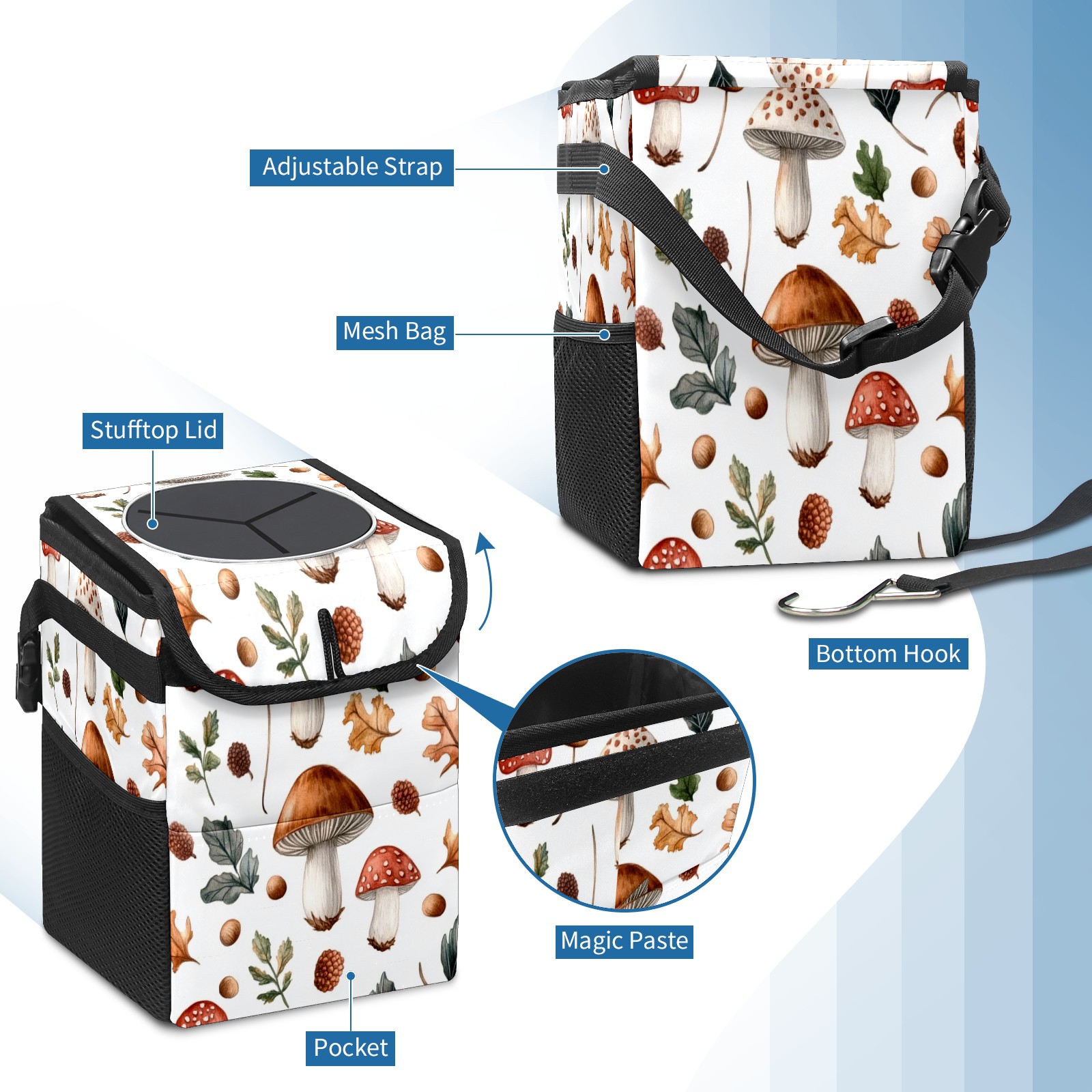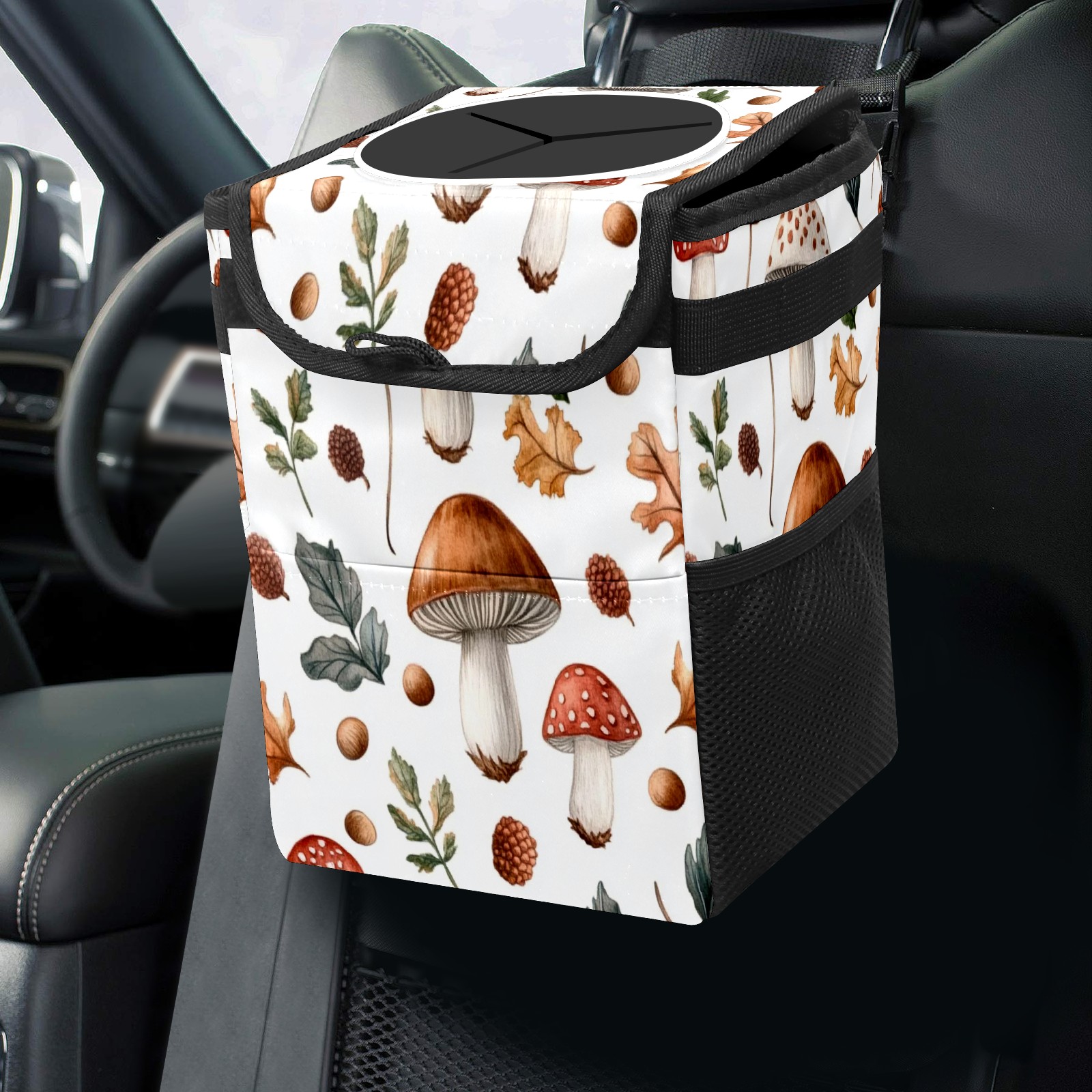 Car Trash Can with Lid, Small Portable Hanging Automotive Garbage Bin for Vehicles, Leakproof Waste Bag Container for SUV Truck Van Interior Auto Travel Road Trips(Watercolor Mushrooms)