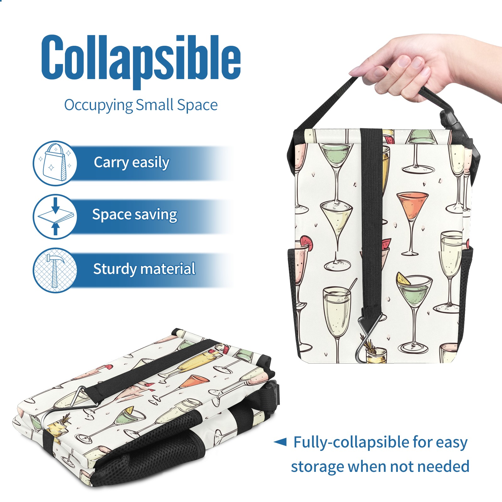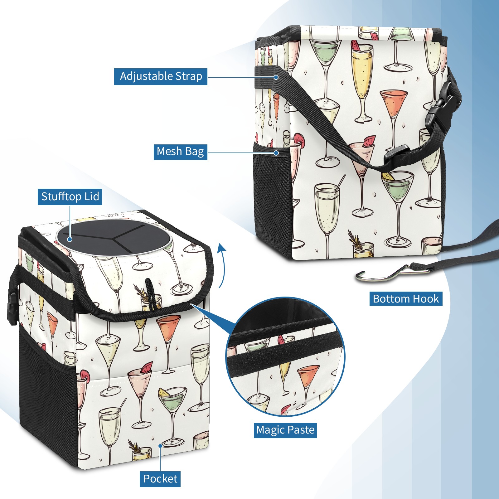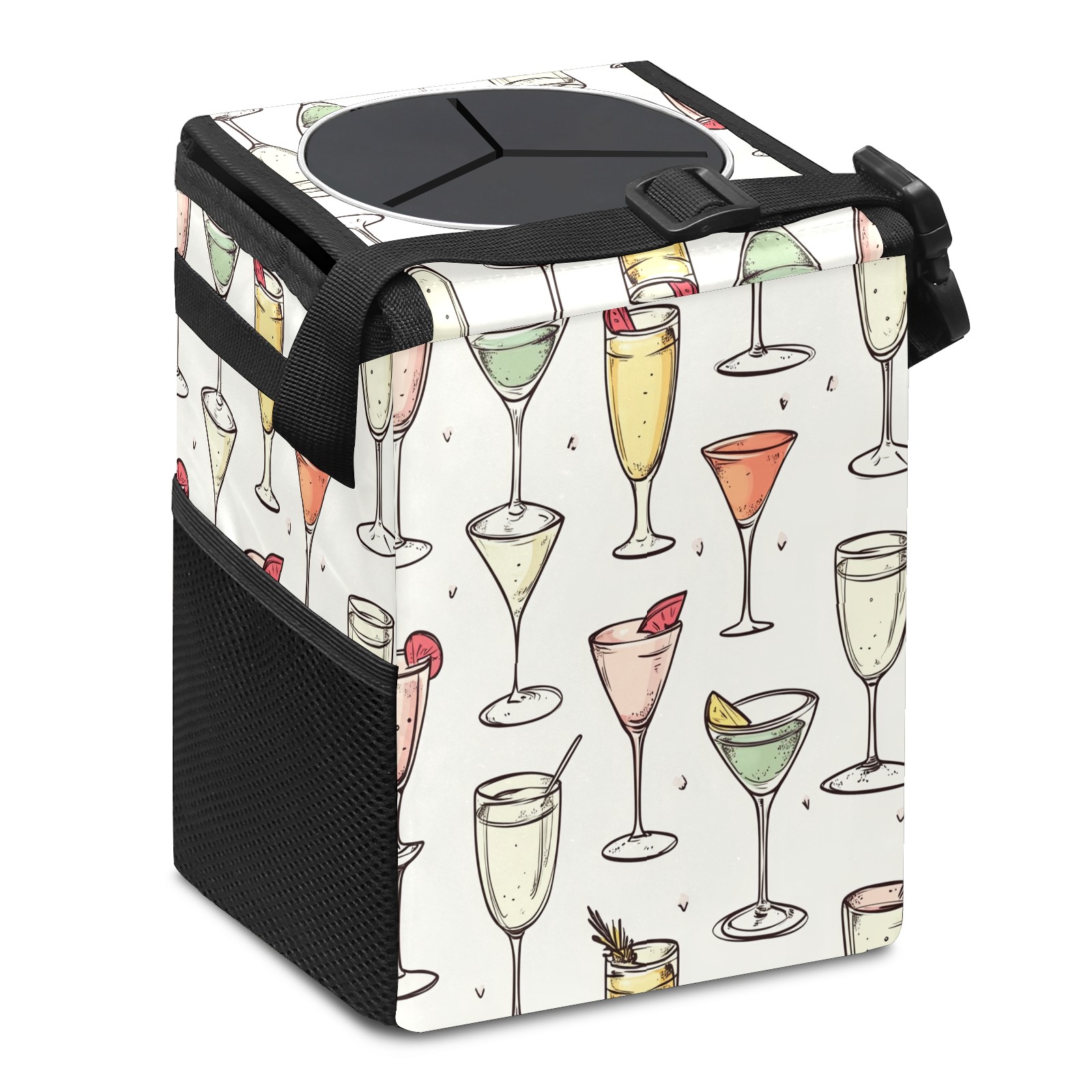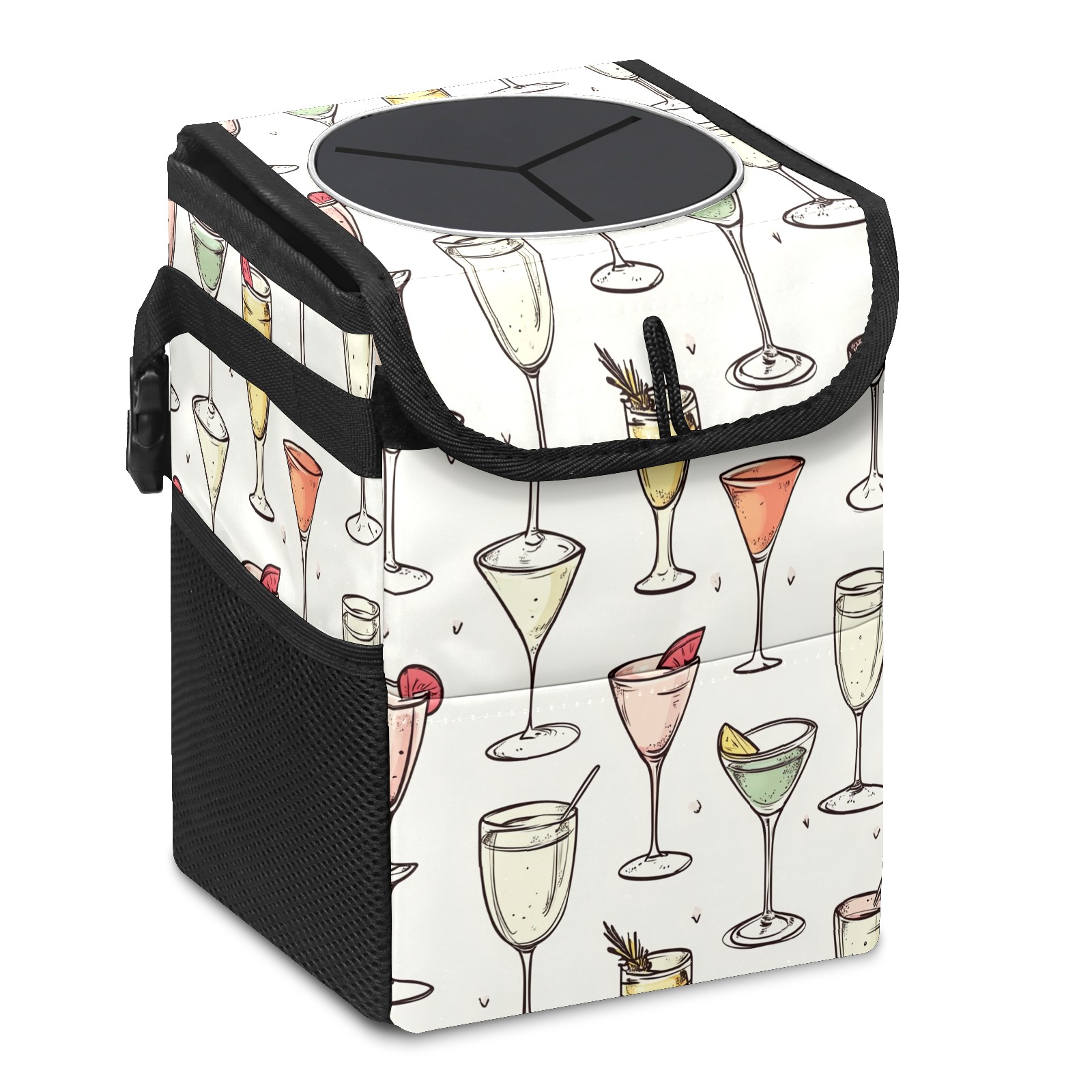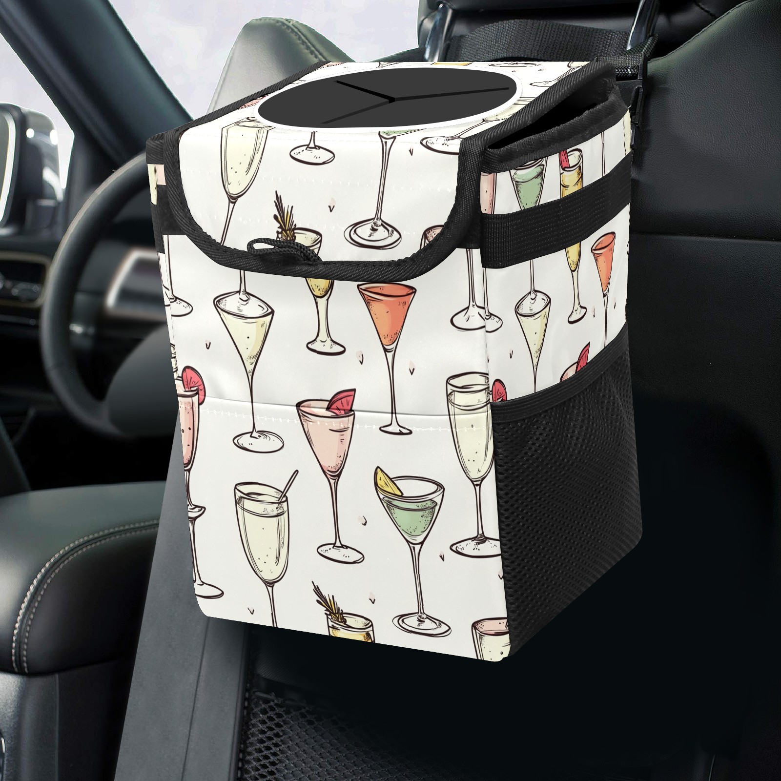 Car Trash Can with Lid, Small Portable Hanging Automotive Garbage Bin for Vehicles, Leakproof Waste Bag Container for SUV Truck Van Interior Auto Travel Road Trips(Champagne Glasses)