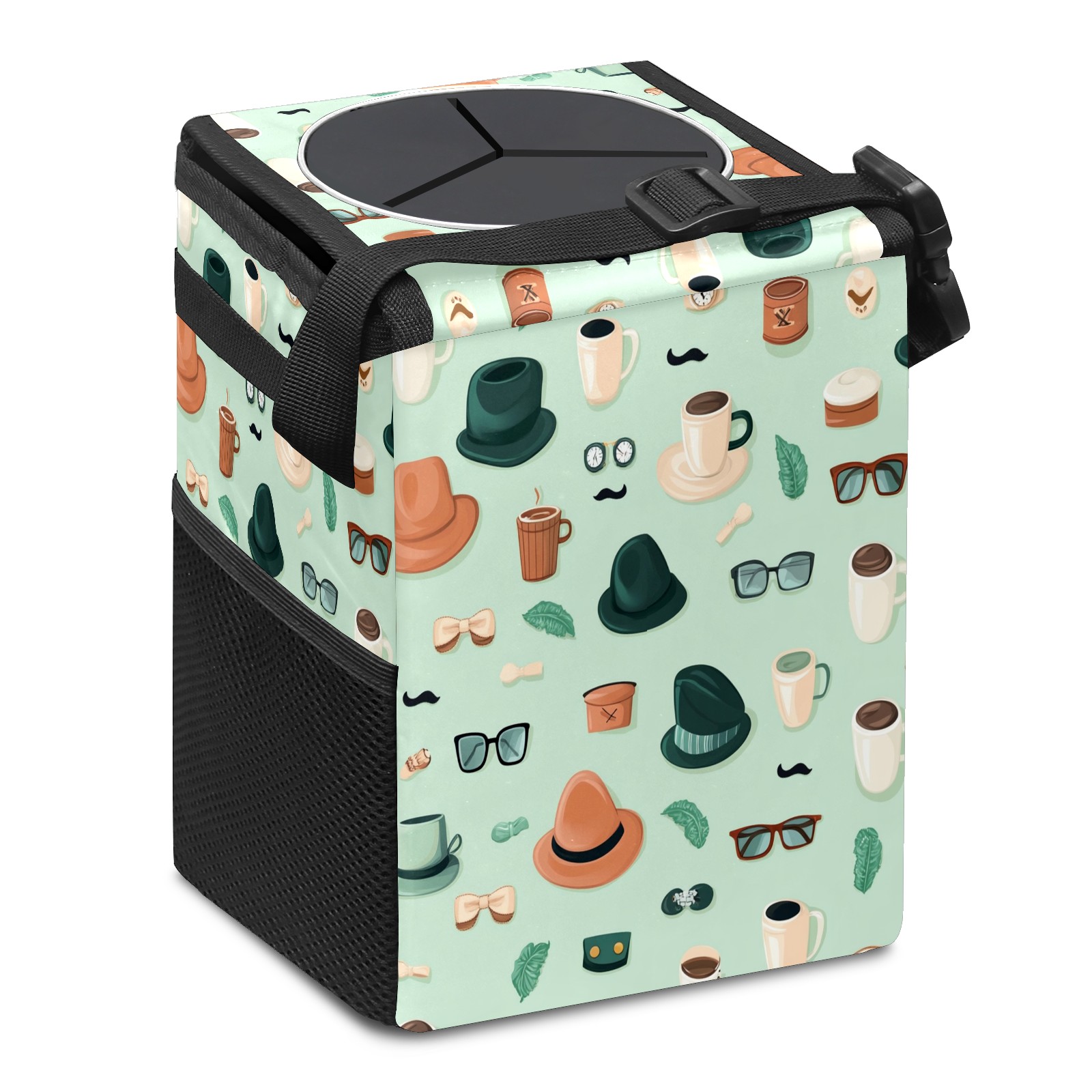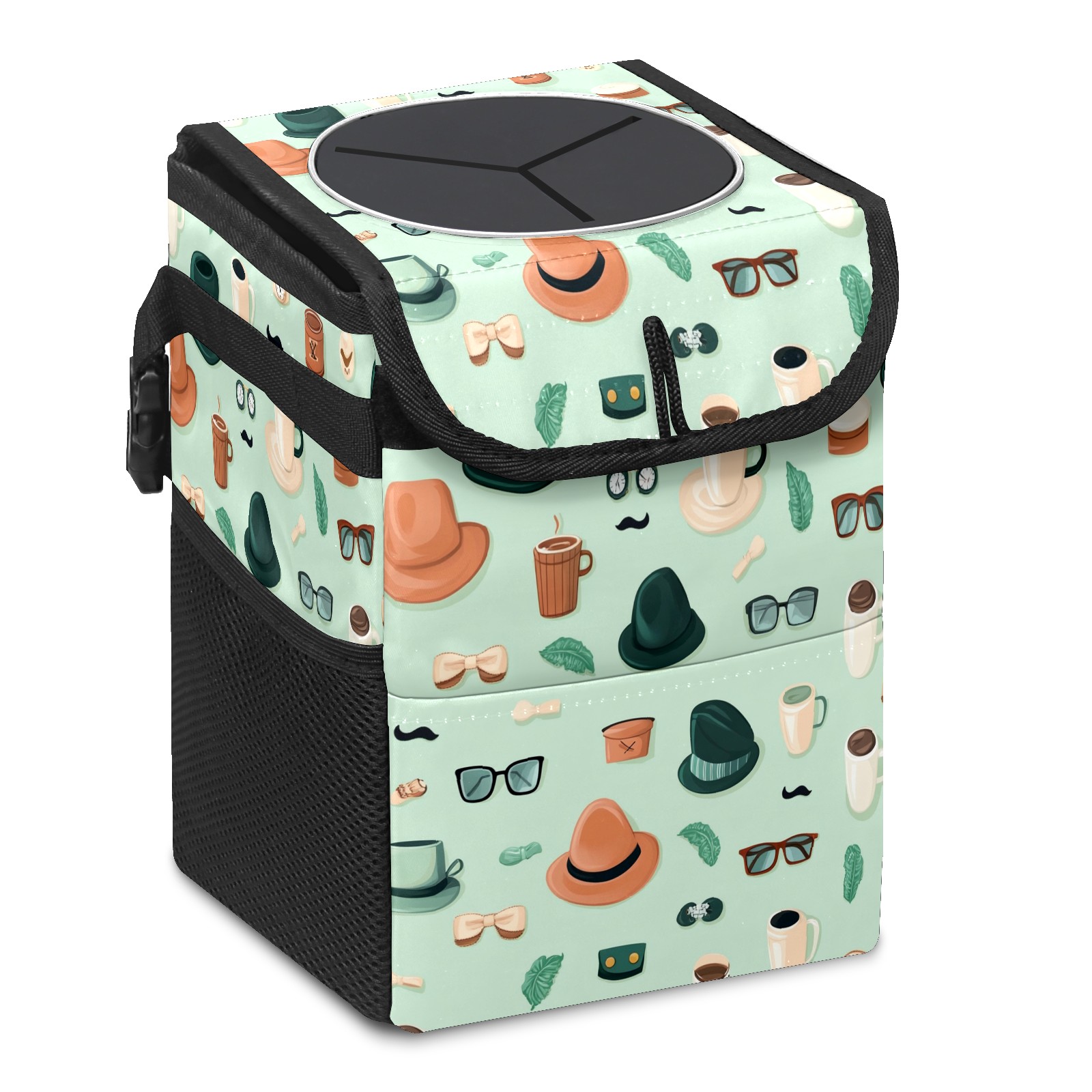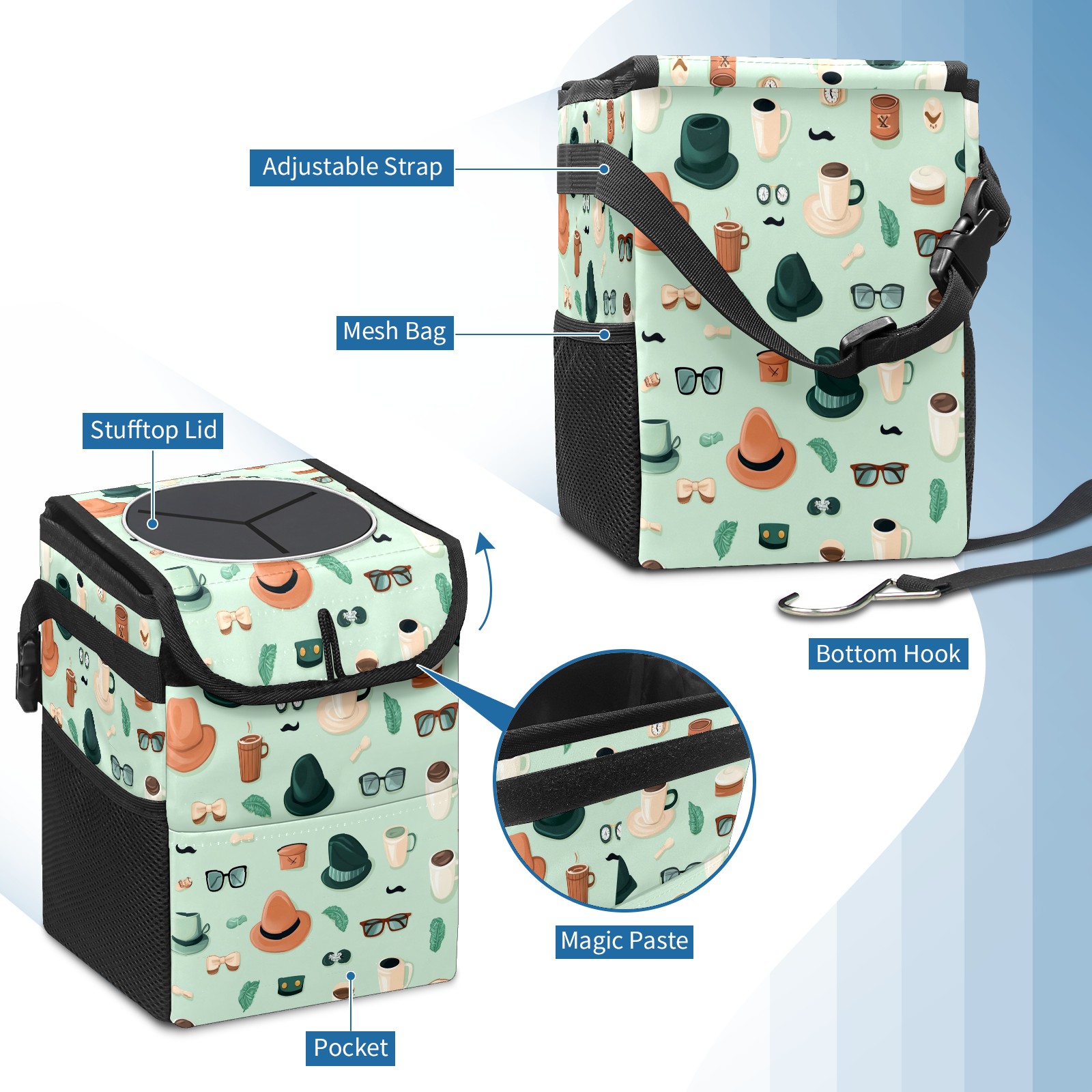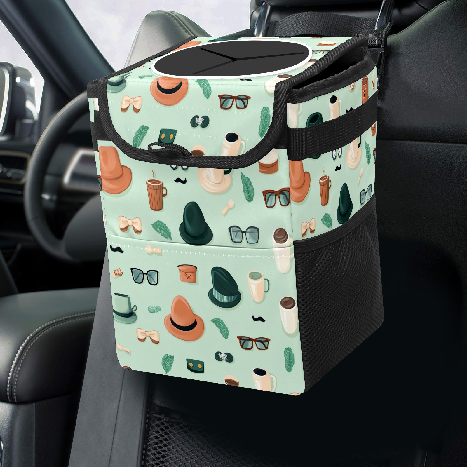 Car Trash Can with Lid, Small Portable Hanging Automotive Garbage Bin for Vehicles, Leakproof Waste Bag Container for SUV Truck Van Interior Auto Travel Road Trips(Hats)