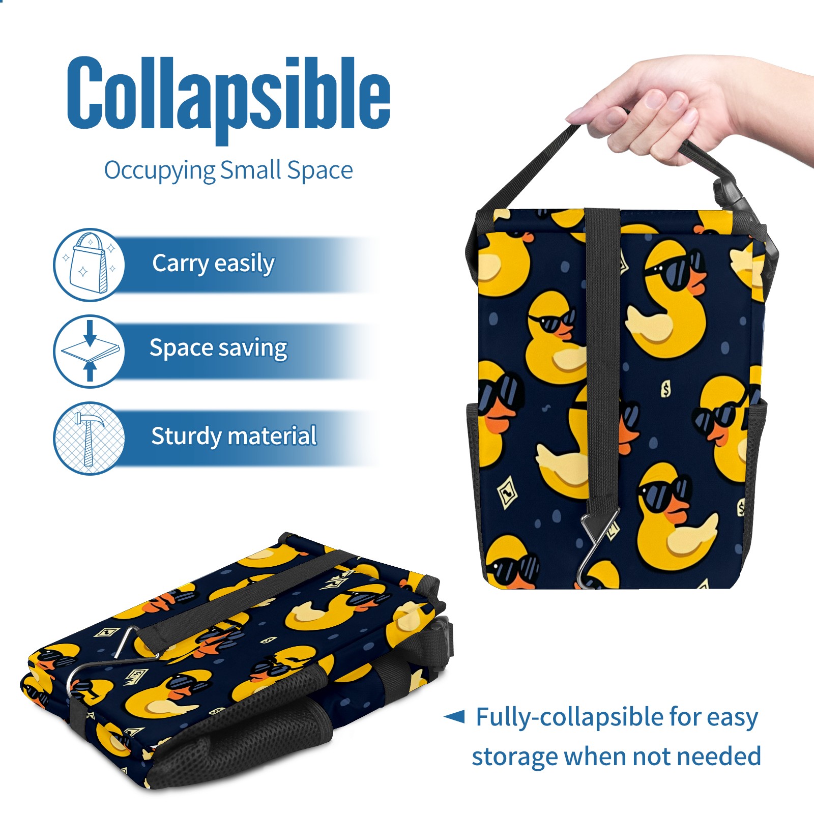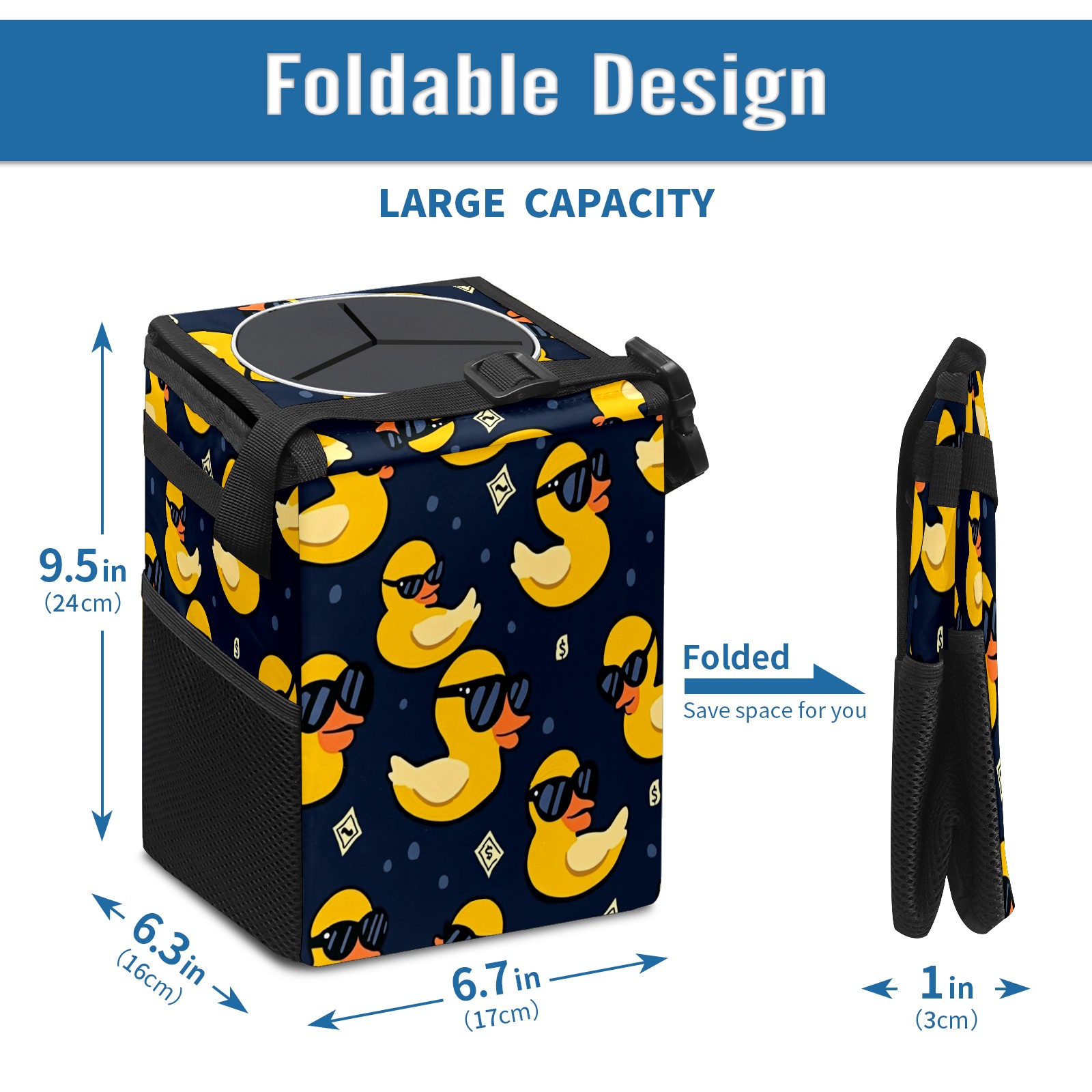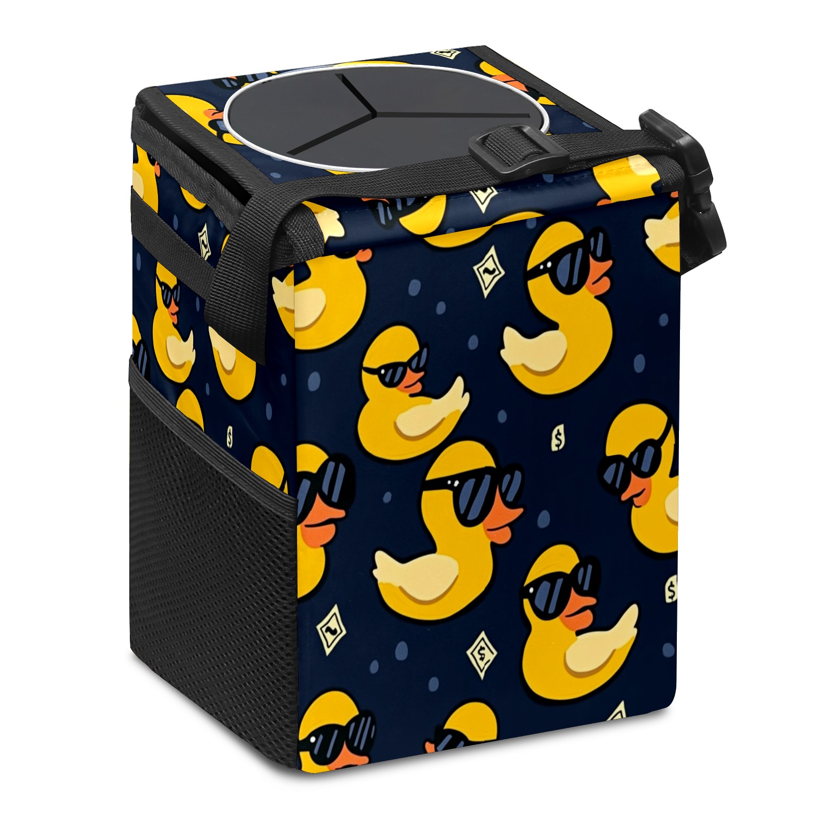 Car Trash Can with Lid, Small Portable Hanging Automotive Garbage Bin for Vehicles, Leakproof Waste Bag Container for SUV Truck Van Interior Auto Travel Road Trips(Yellow Ducks)