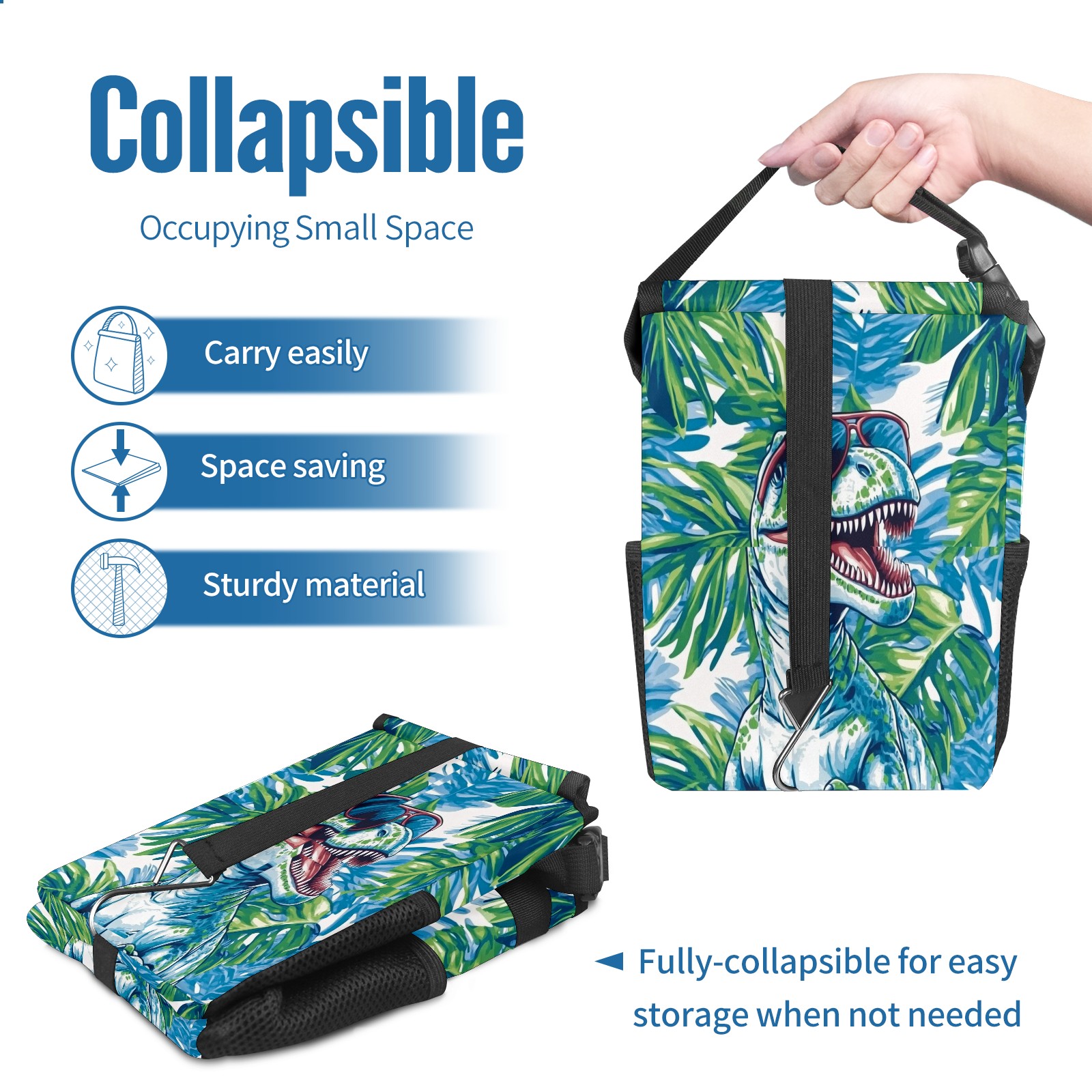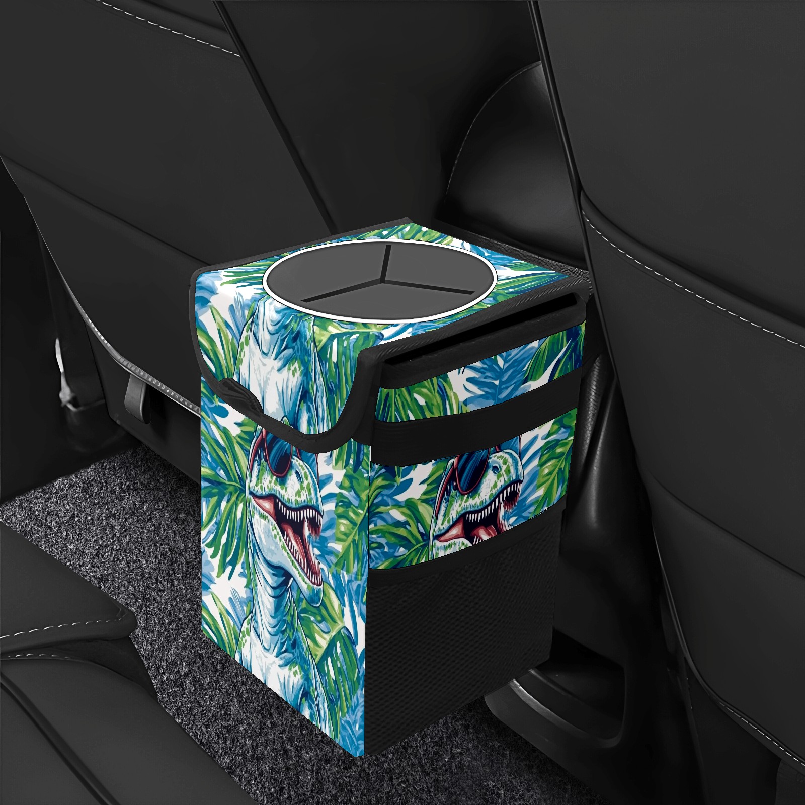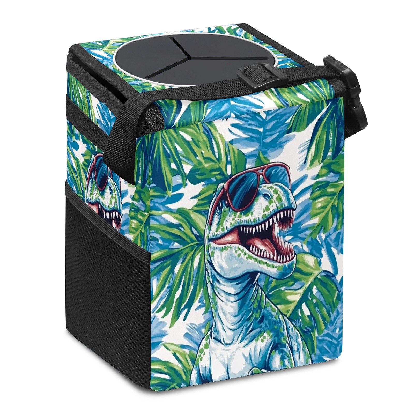 Car Trash Can with Lid, Small Portable Hanging Automotive Garbage Bin for Vehicles, Leakproof Waste Bag Container for SUV Truck Van Interior Auto Travel Road Trips(T-rex Wearing Sunglasses)