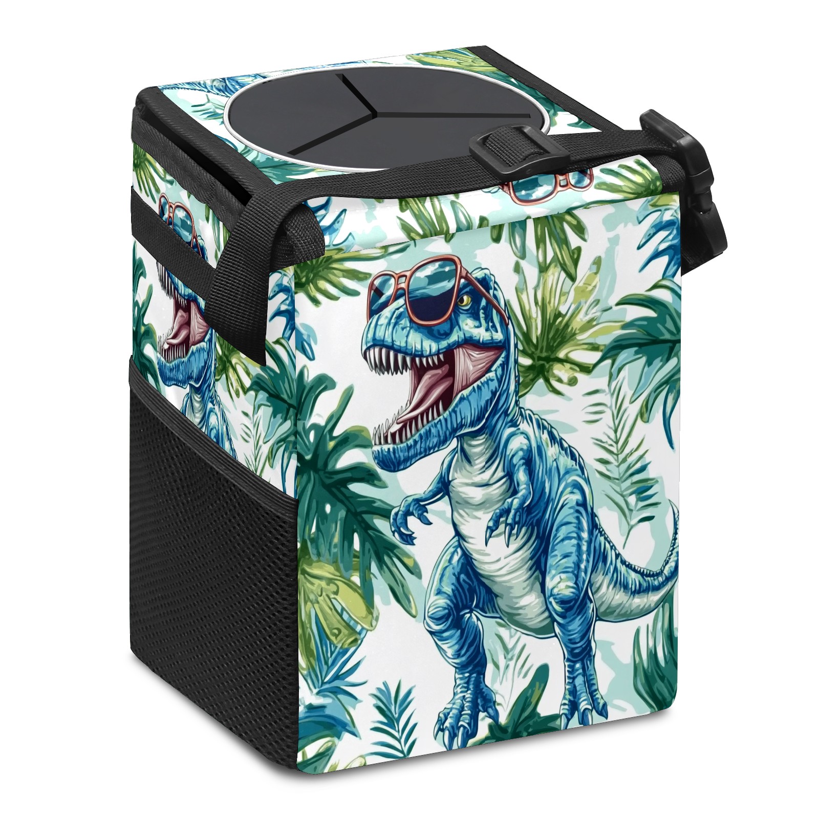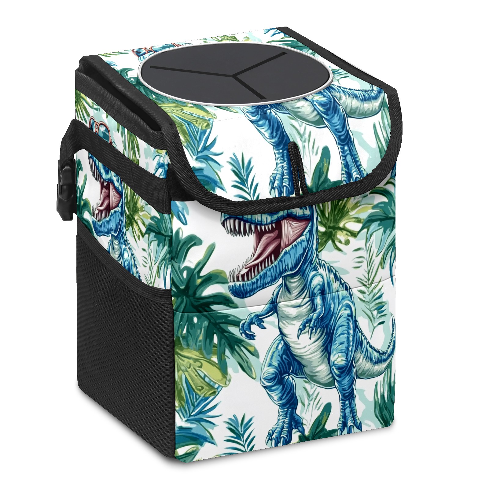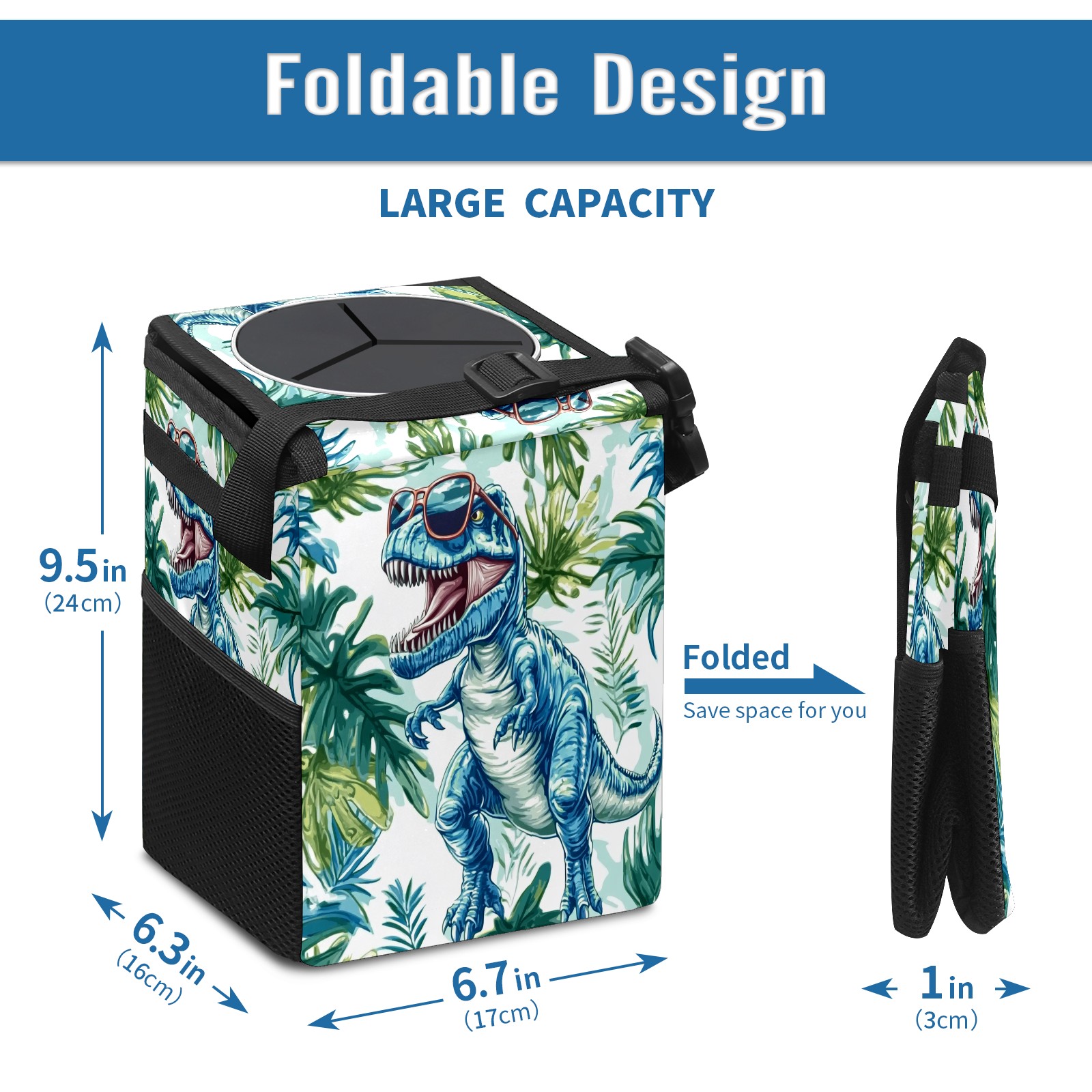 Car Trash Can with Lid, Small Portable Hanging Automotive Garbage Bin for Vehicles, Leakproof Waste Bag Container for SUV Truck Van Interior Auto Travel Road Trips(T-Rex)