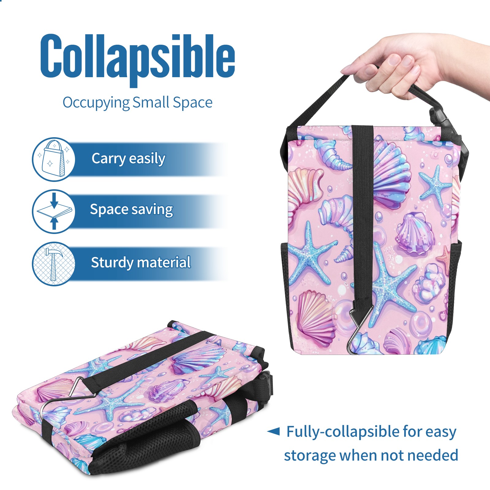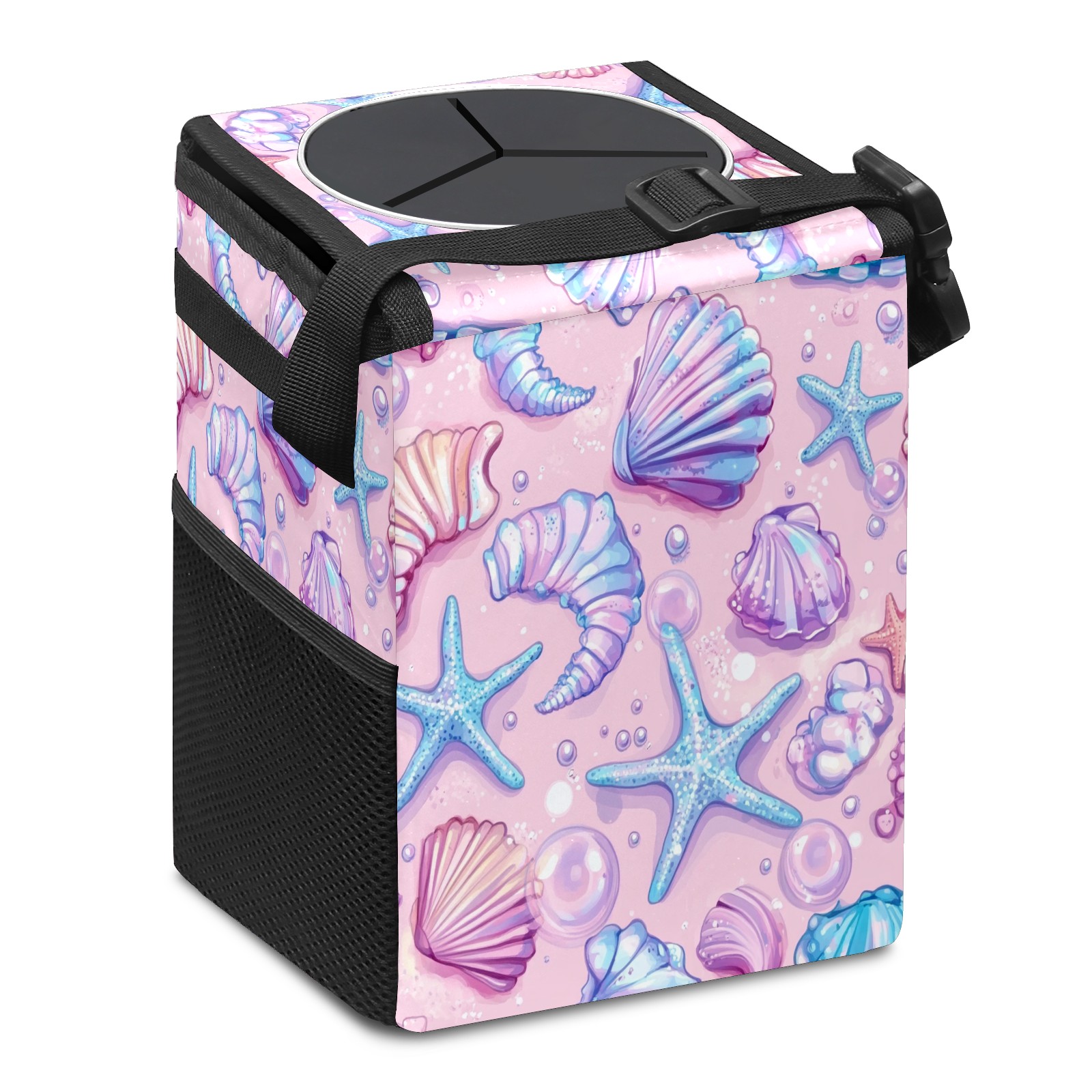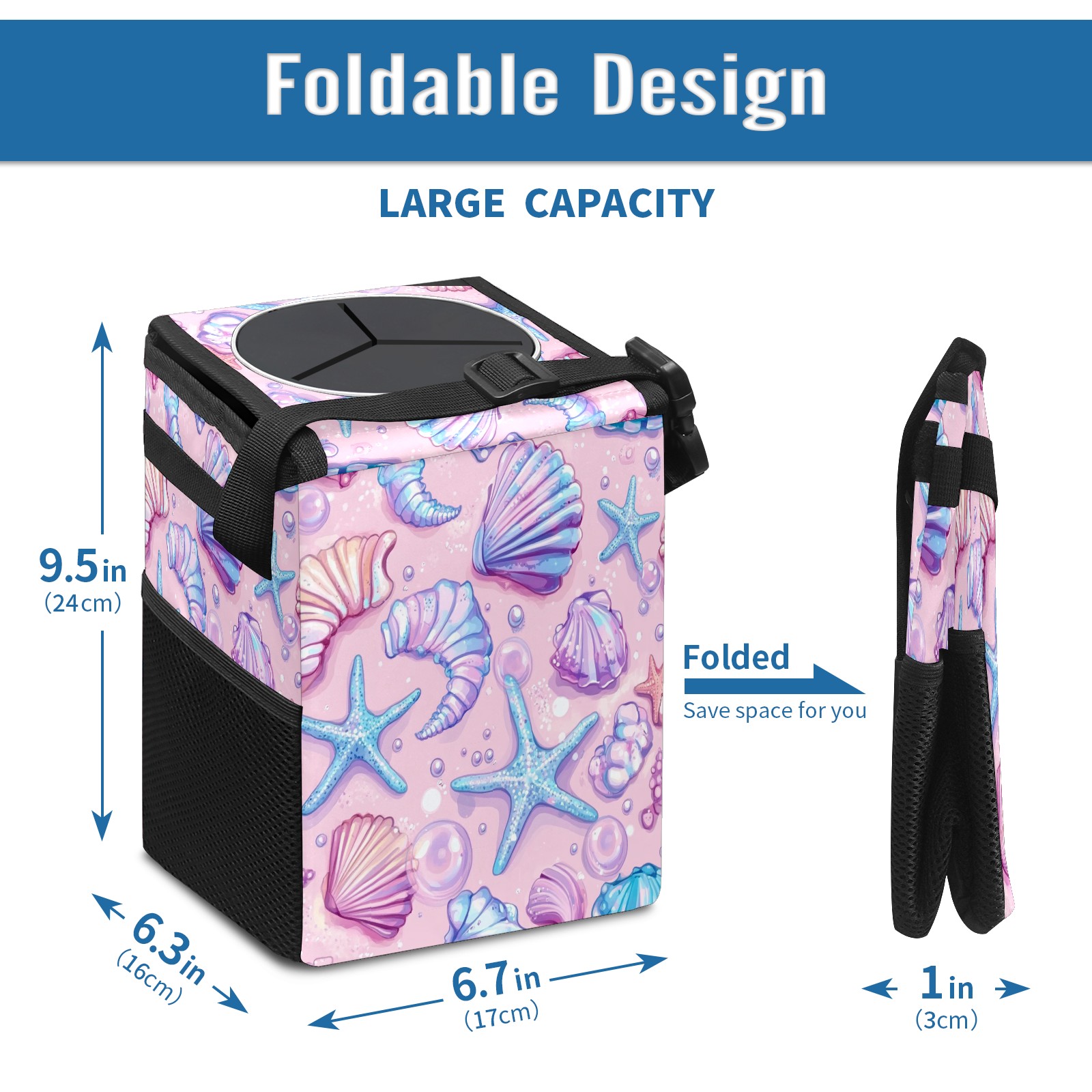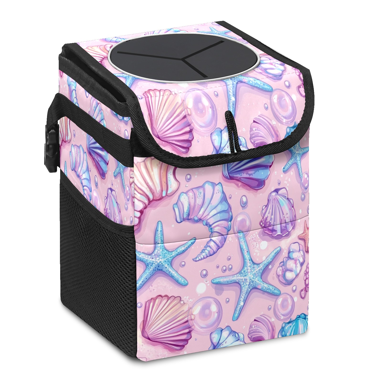 Car Trash Can with Lid, Small Portable Hanging Automotive Garbage Bin for Vehicles, Leakproof Waste Bag Container for SUV Truck Van Interior Auto Travel Road Trips(Starfish)