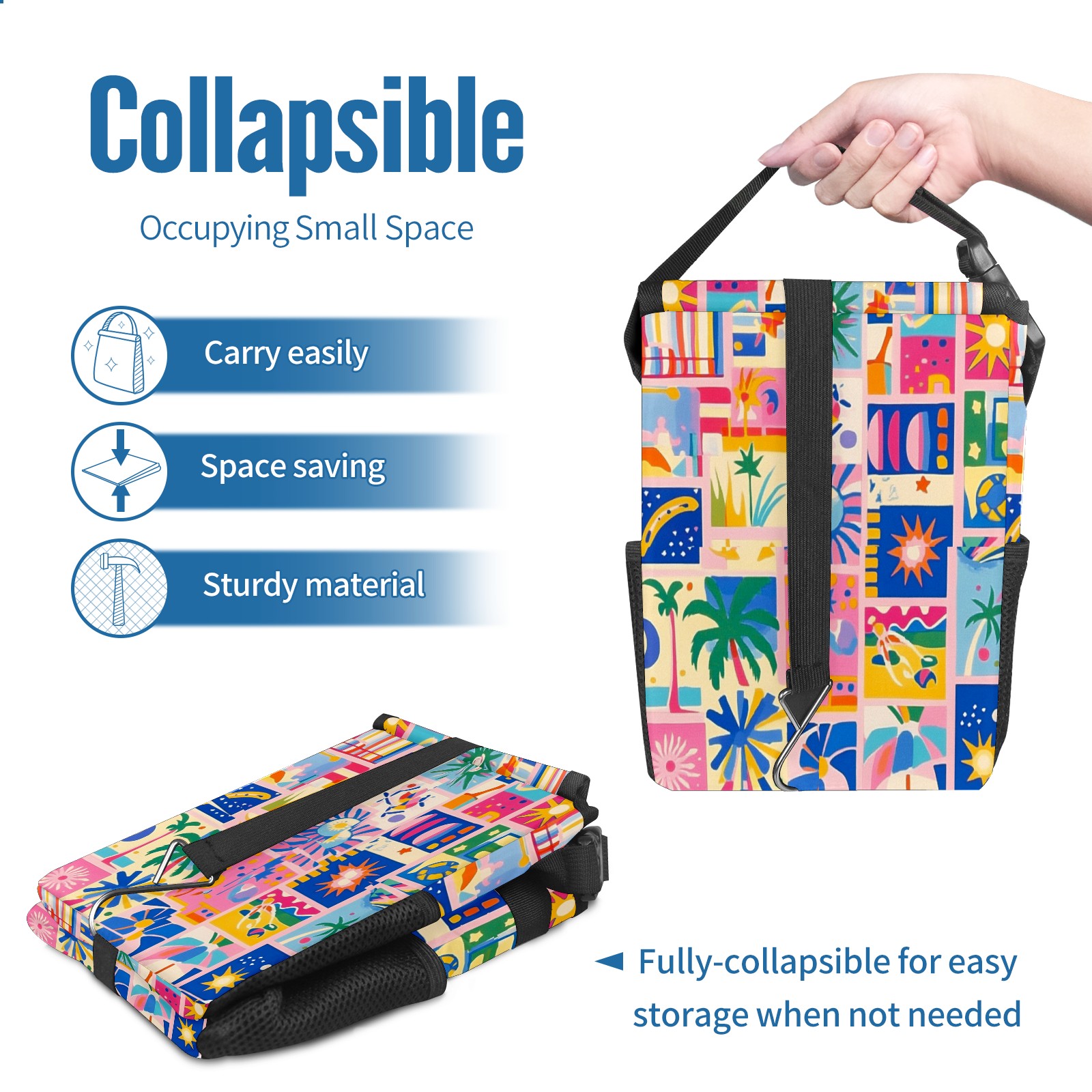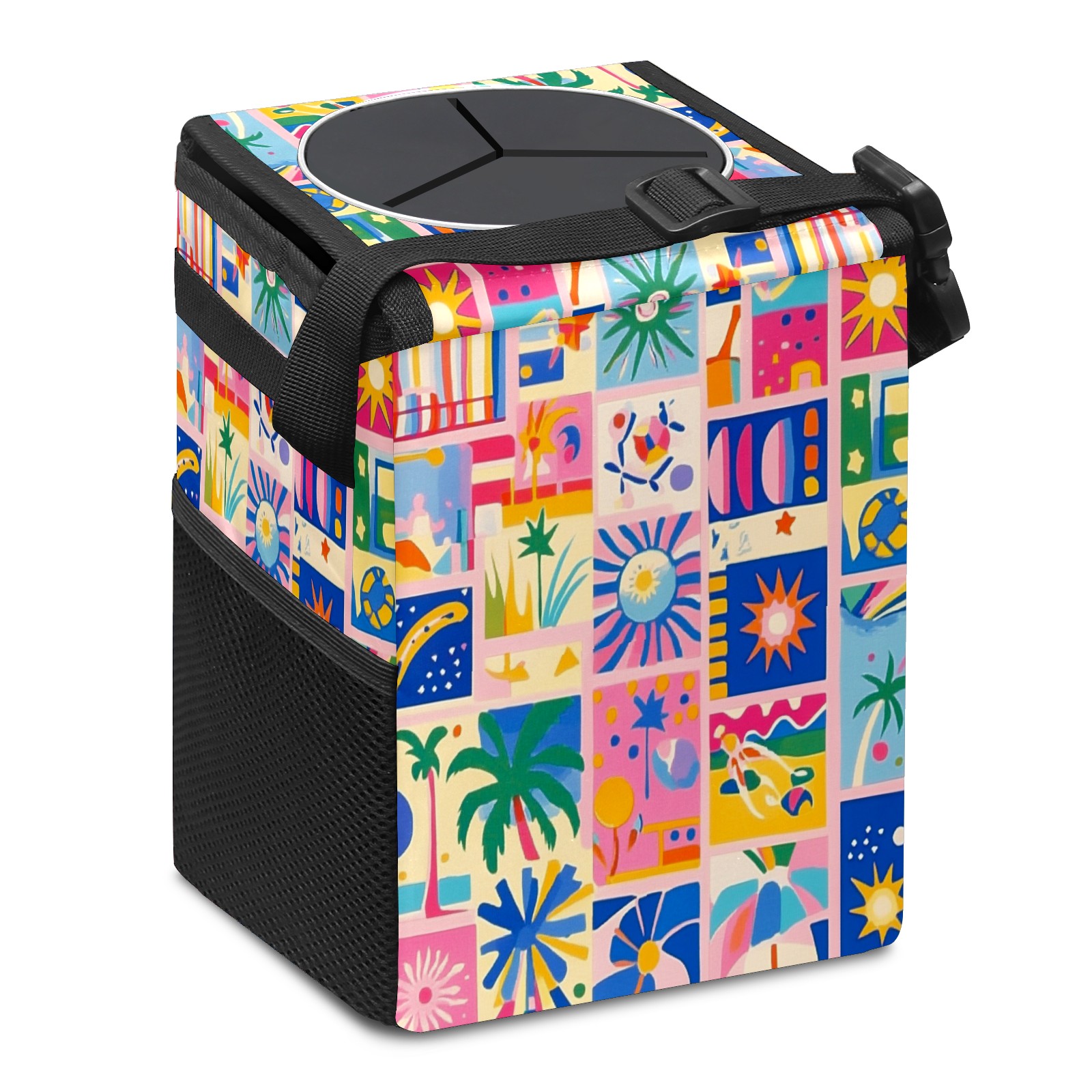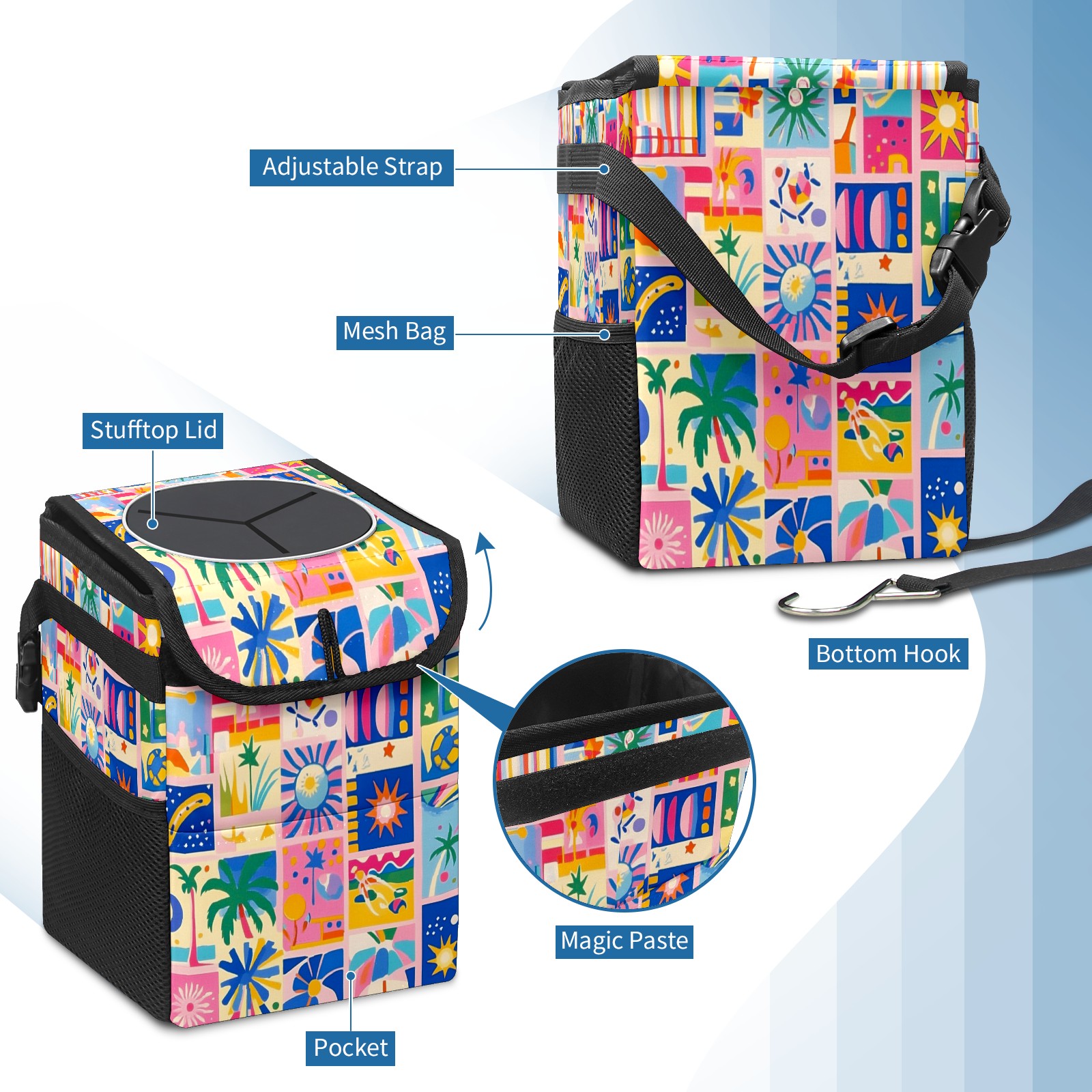 Car Trash Can with Lid, Small Portable Hanging Automotive Garbage Bin for Vehicles, Leakproof Waste Bag Container for SUV Truck Van Interior Auto Travel Road Trips(Vibrant Pattern)