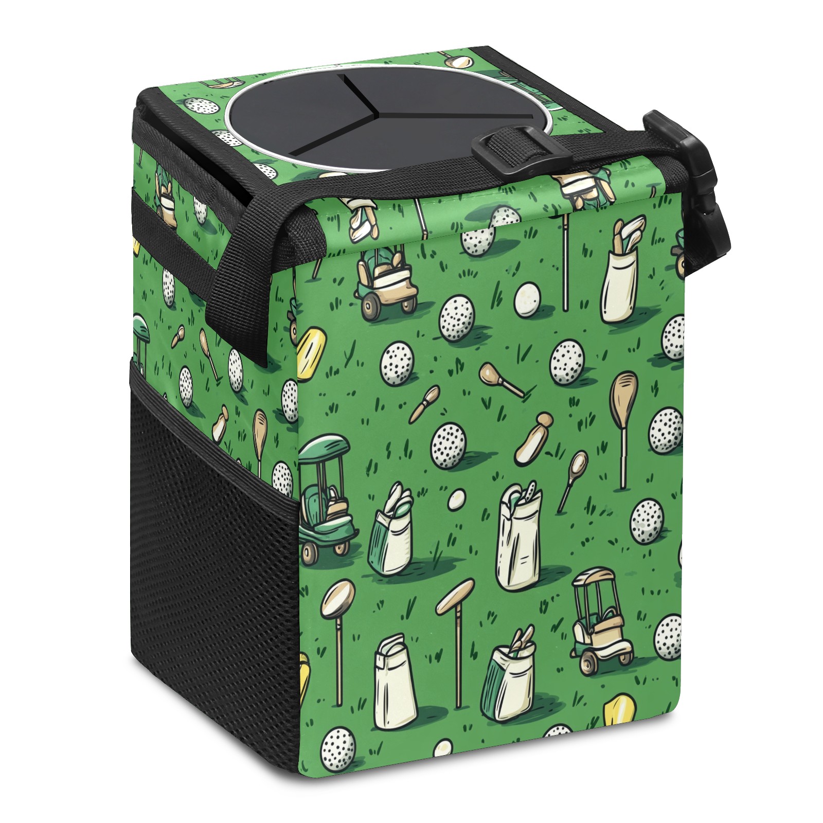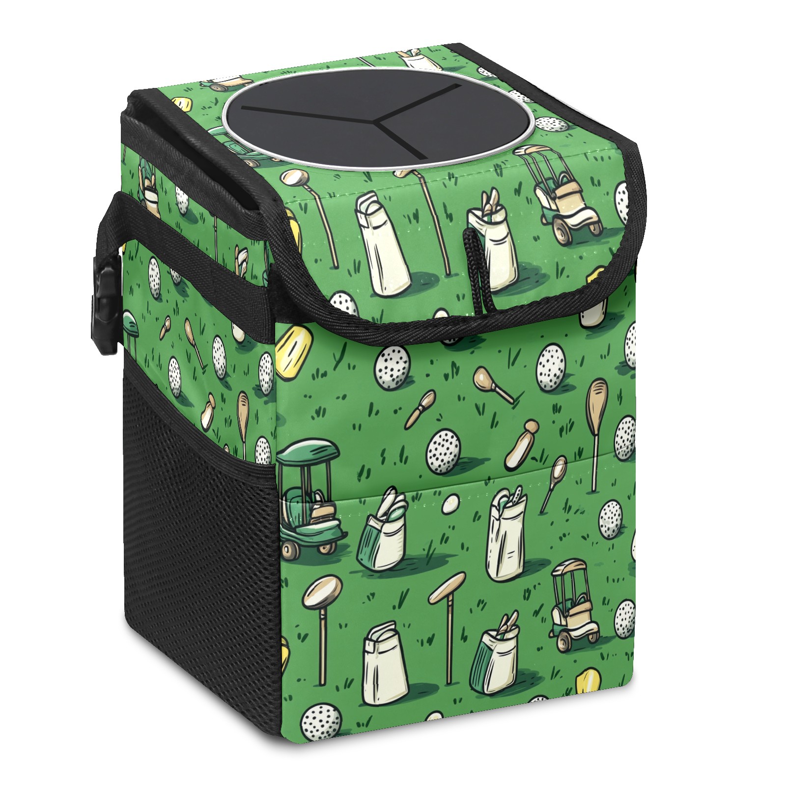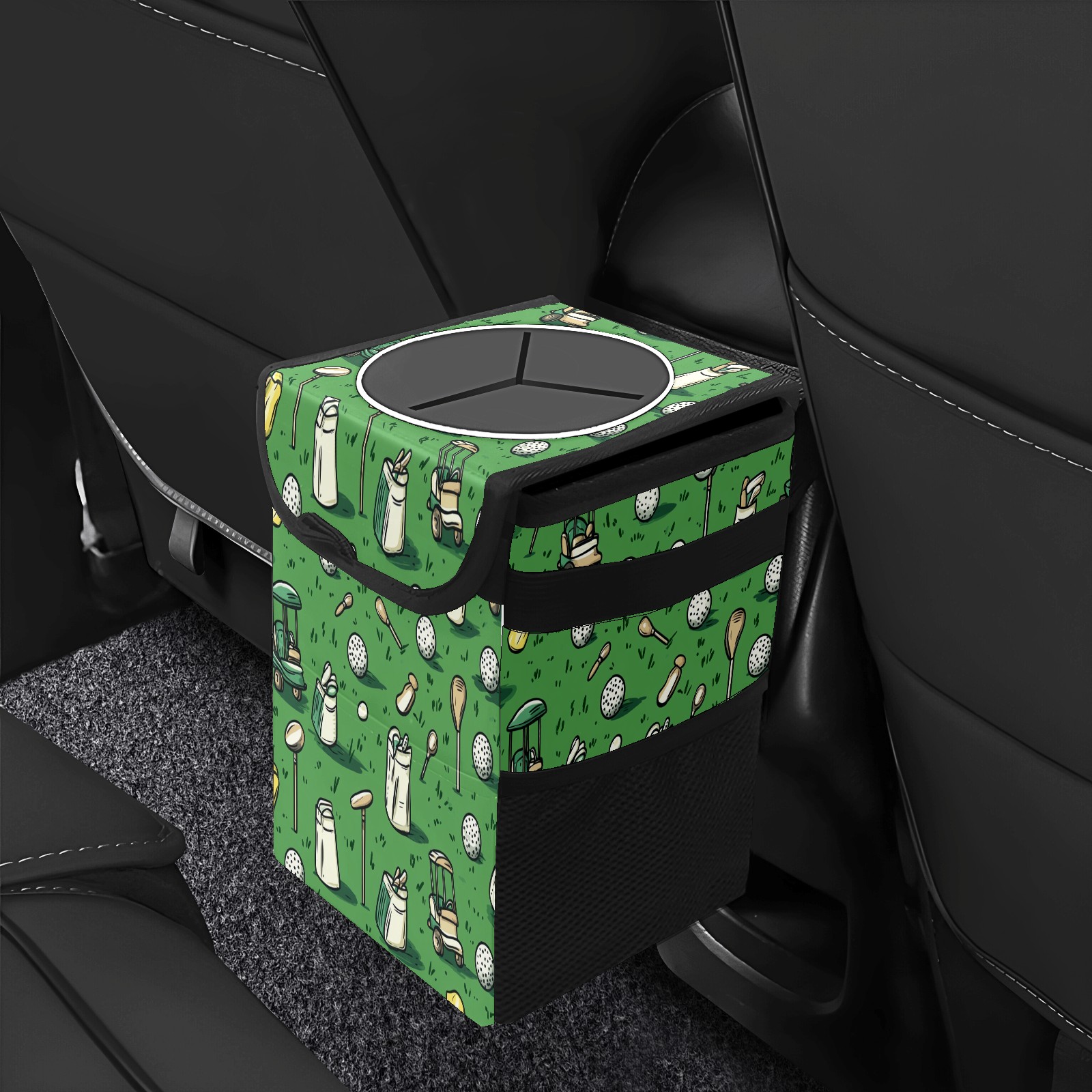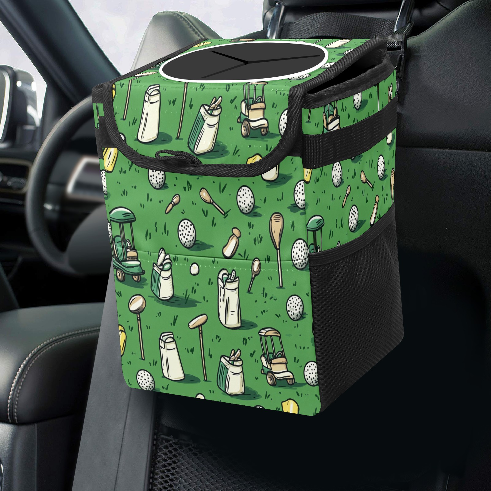 Car Trash Can with Lid, Small Portable Hanging Automotive Garbage Bin for Vehicles, Leakproof Waste Bag Container for SUV Truck Van Interior Auto Travel Road Trips(Golf Balls And Club Bags)