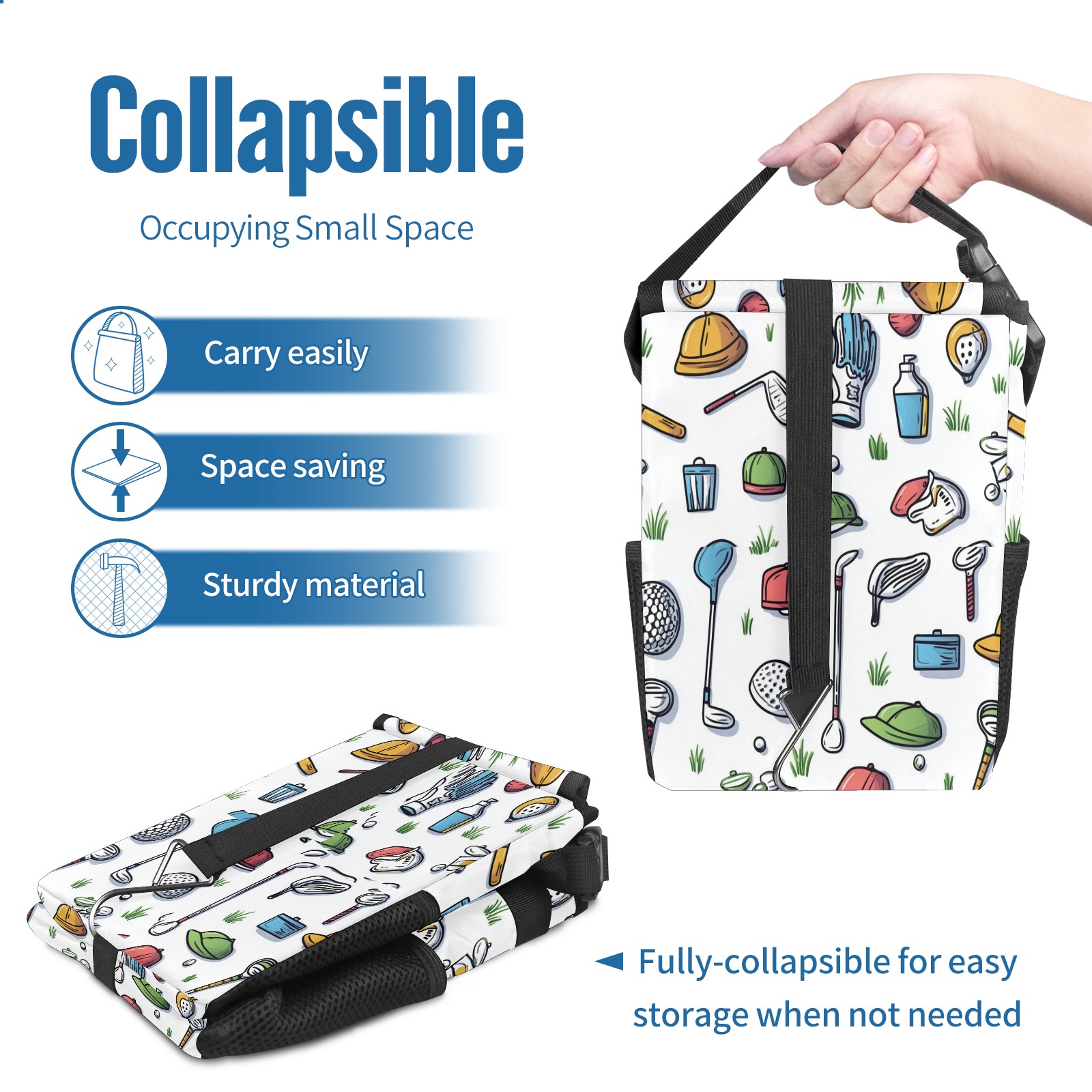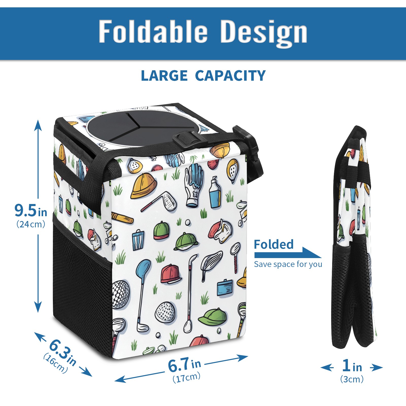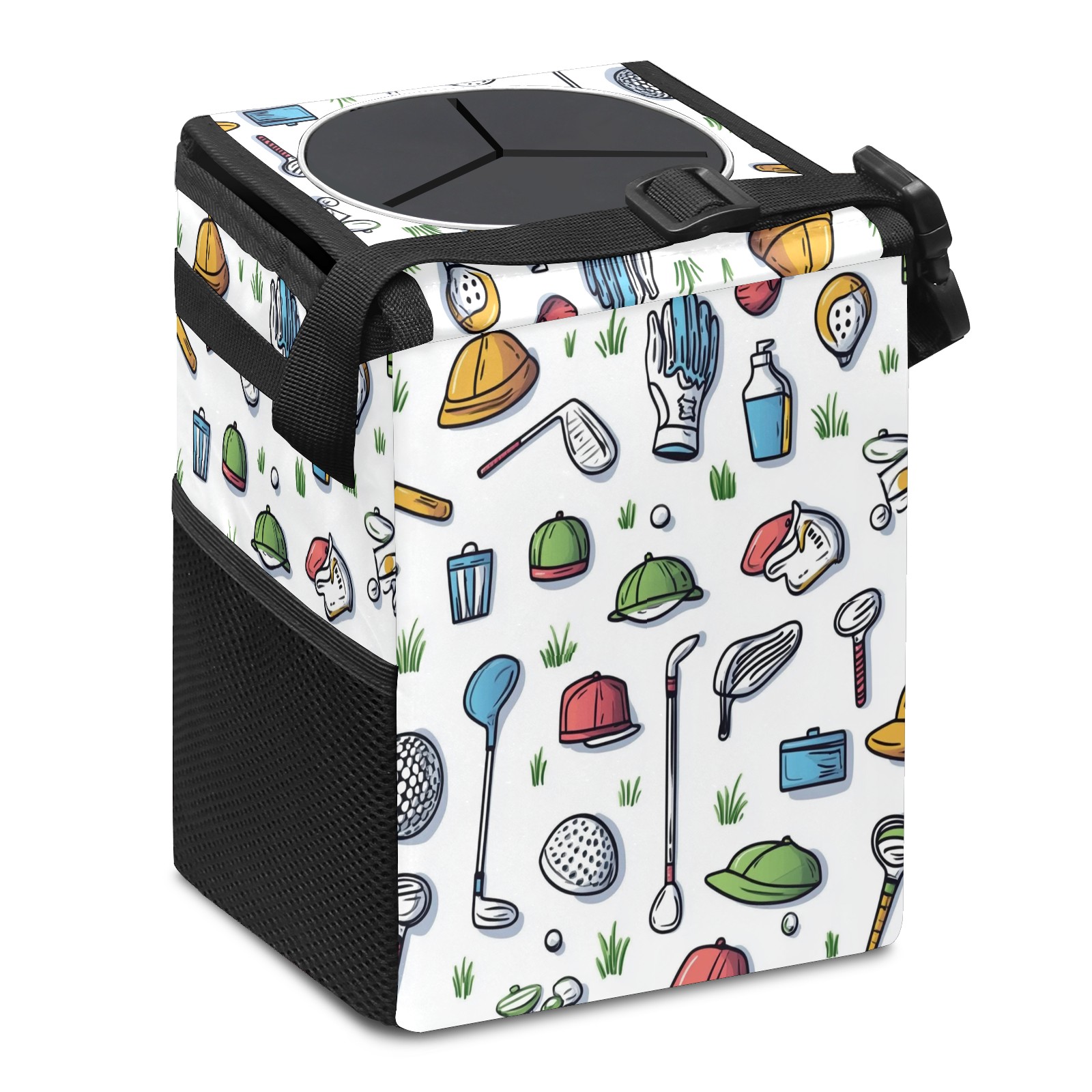 Car Trash Can with Lid, Small Portable Hanging Automotive Garbage Bin for Vehicles, Leakproof Waste Bag Container for SUV Truck Van Interior Auto Travel Road Trips(Golf Elements)