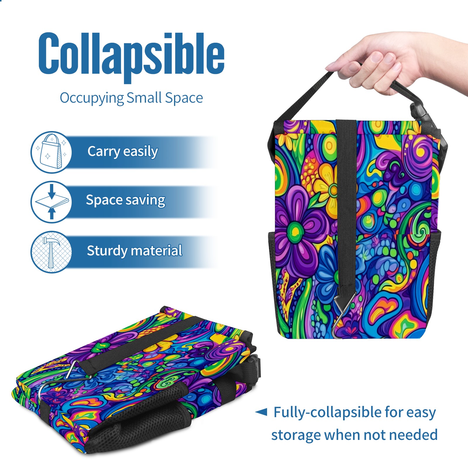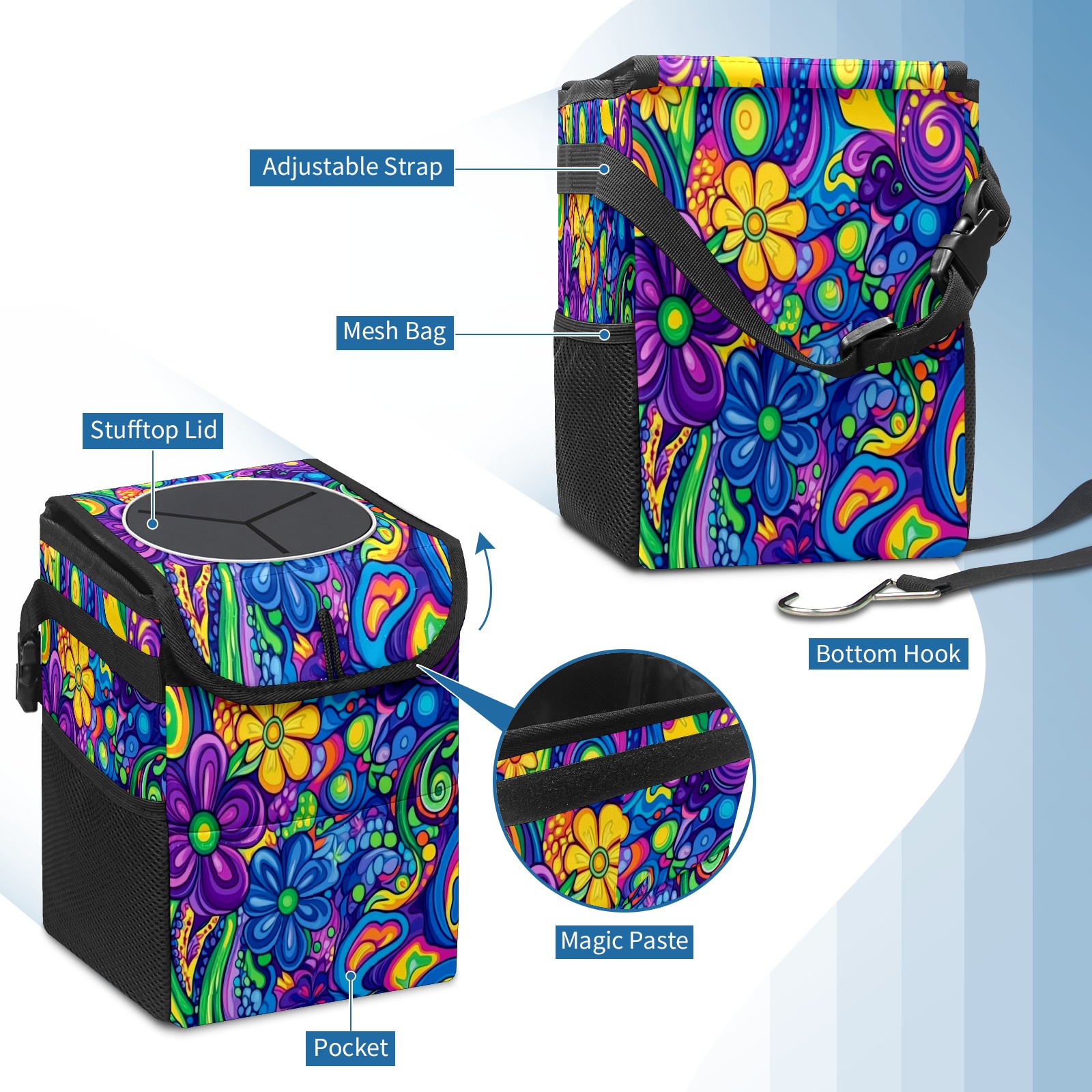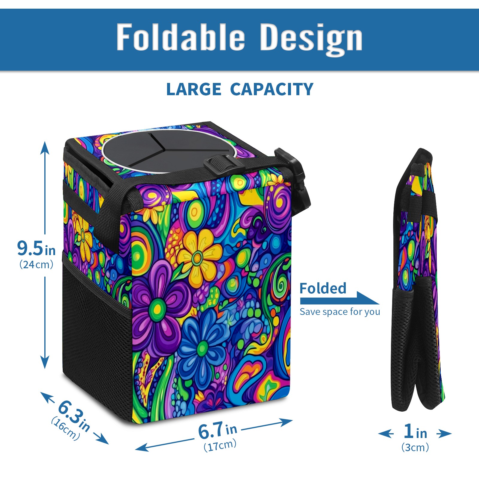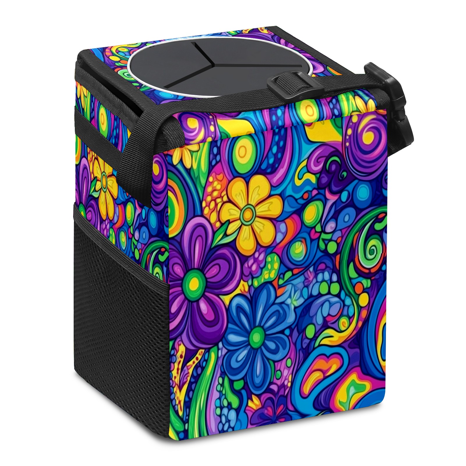 Car Trash Can with Lid, Small Portable Hanging Automotive Garbage Bin for Vehicles, Leakproof Waste Bag Container for SUV Truck Van Interior Auto Travel Road Trips(Psychedelic Patterns)
