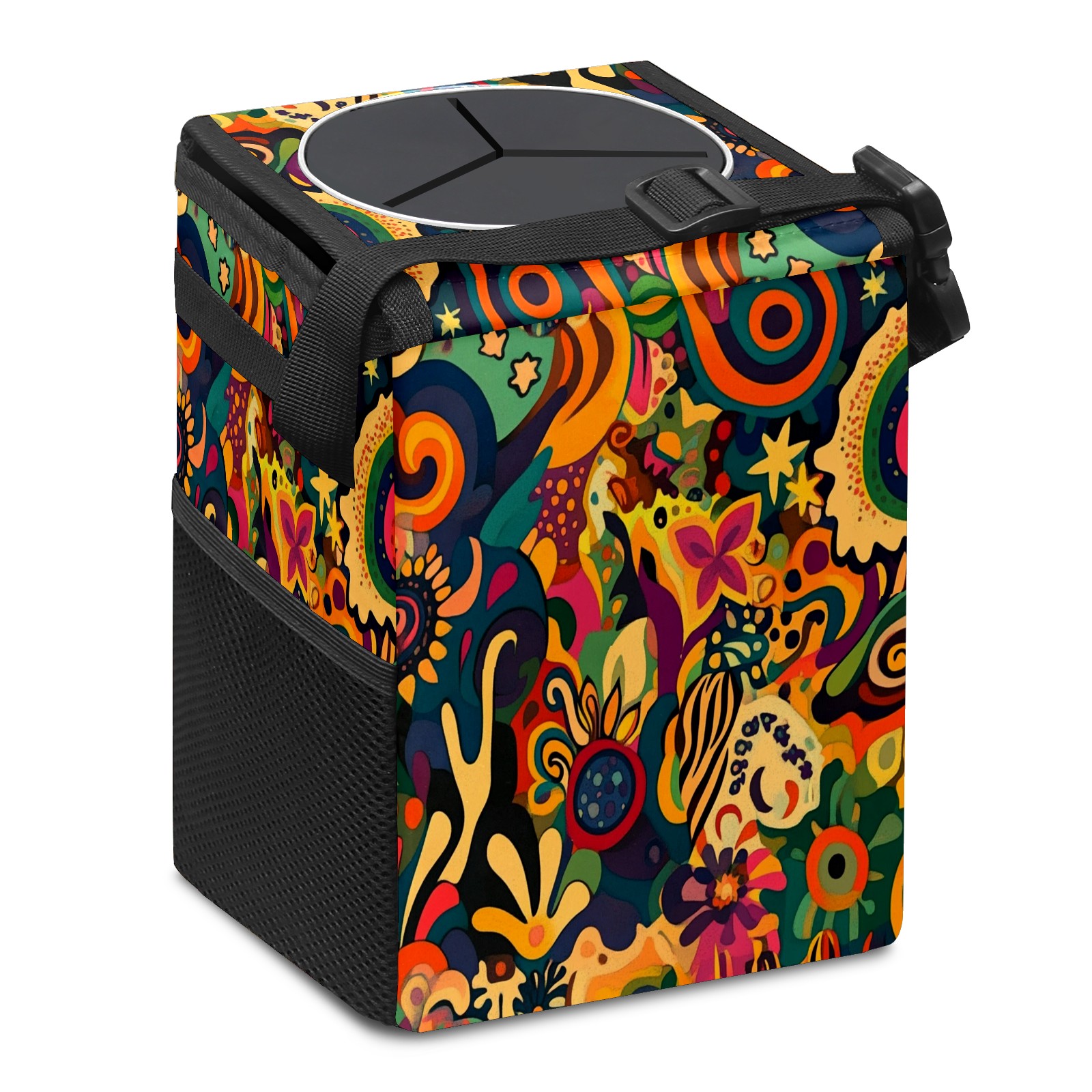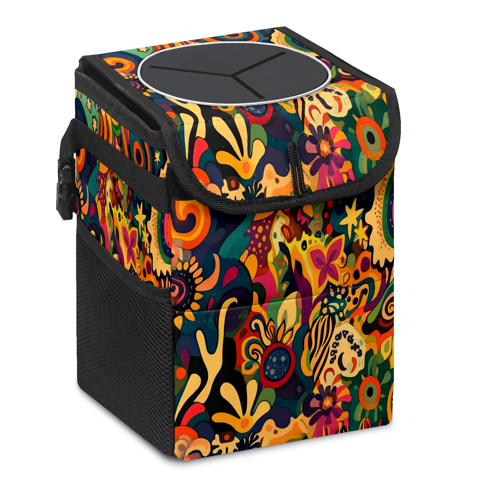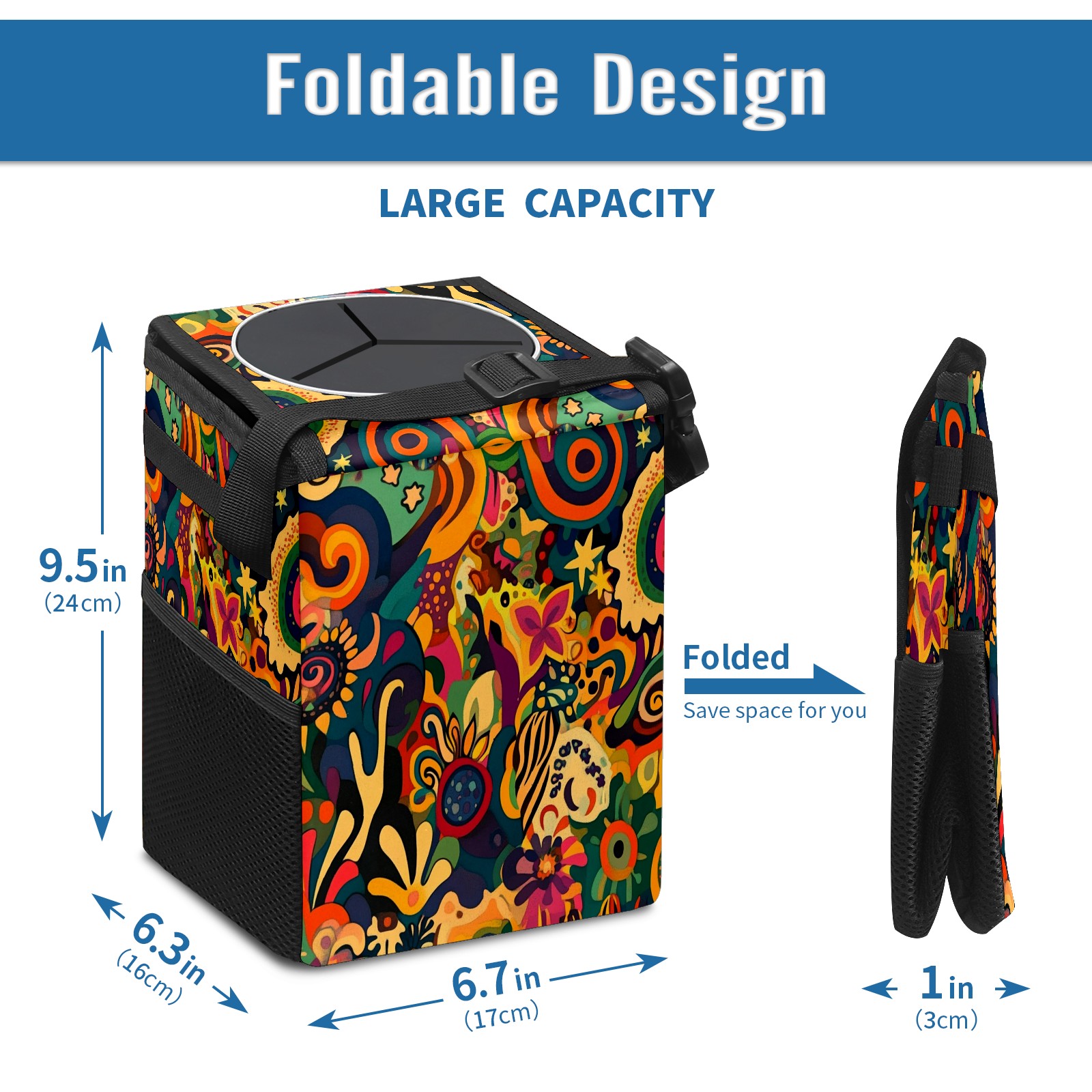 Car Trash Can with Lid, Small Portable Hanging Automotive Garbage Bin for Vehicles, Leakproof Waste Bag Container for SUV Truck Van Interior Auto Travel Road Trips(Abstract Pattern)