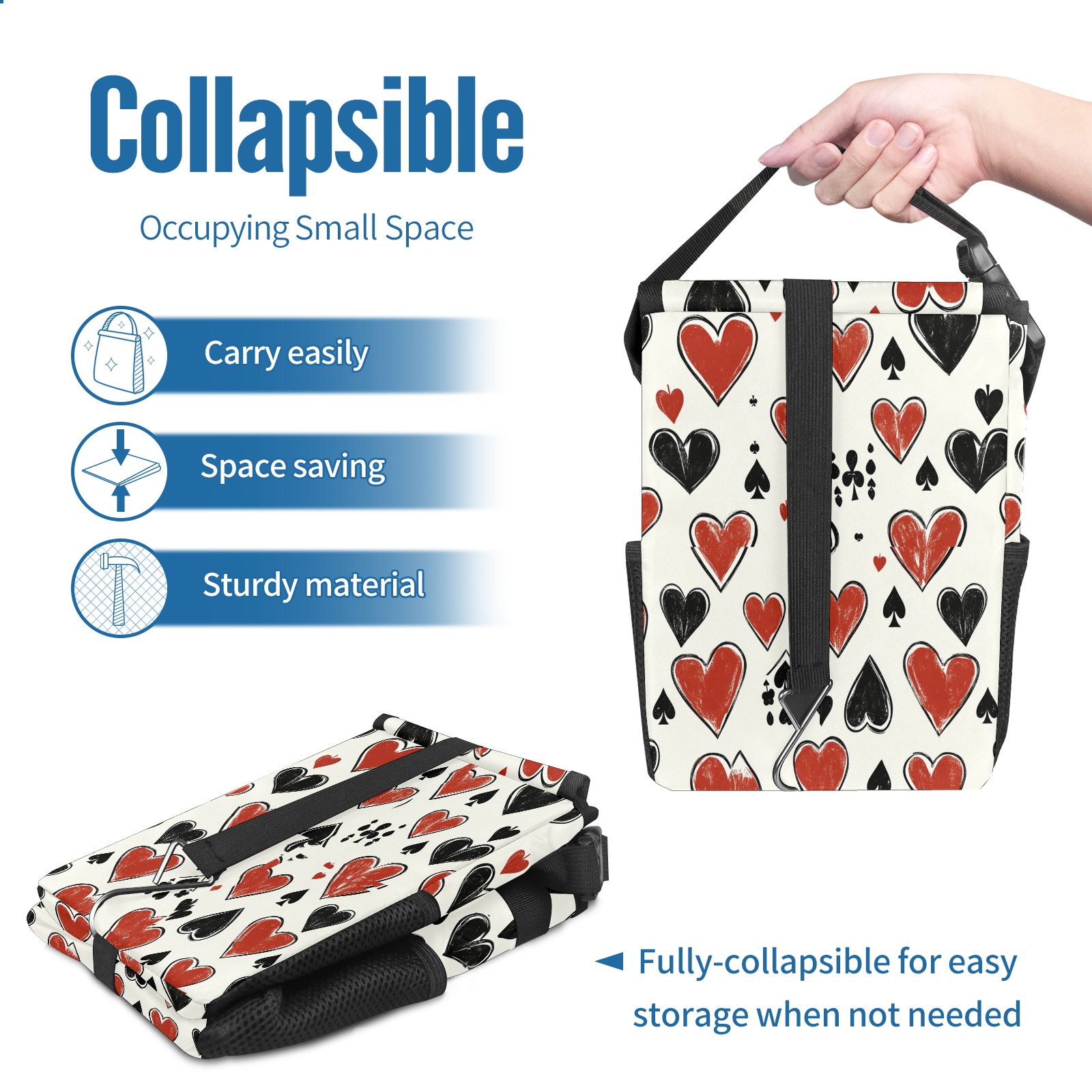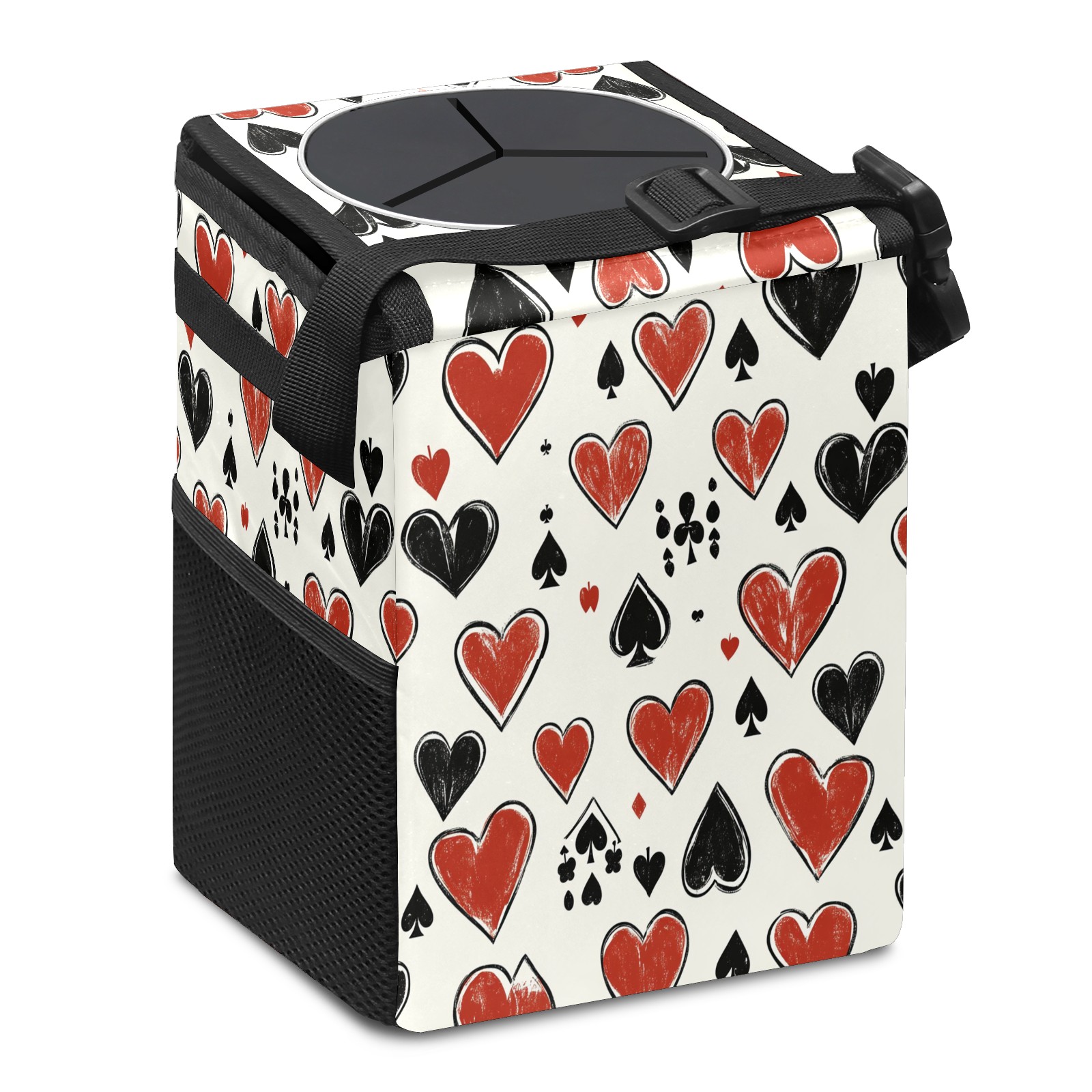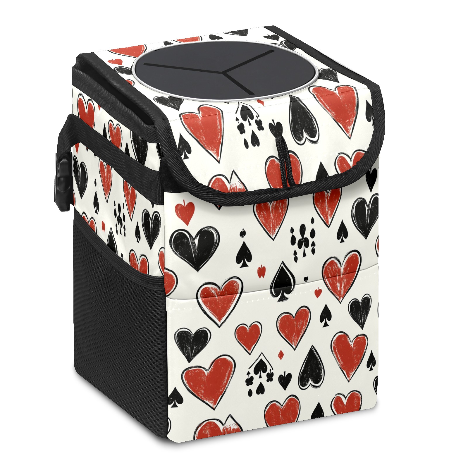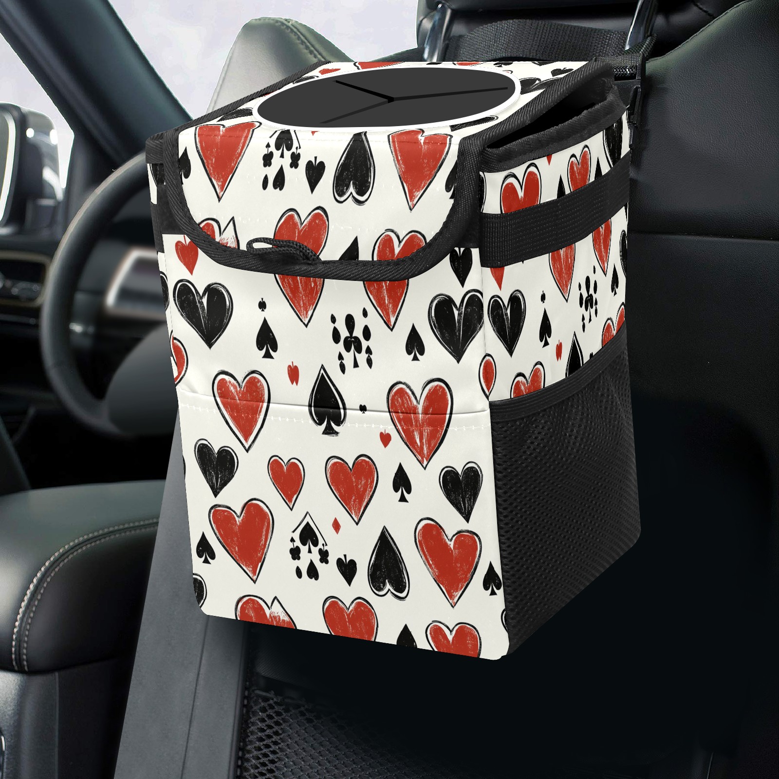 Car Trash Can with Lid, Small Portable Hanging Automotive Garbage Bin for Vehicles, Leakproof Waste Bag Container for SUV Truck Van Interior Auto Travel Road Trips(Hand-drawn Playing Cards)