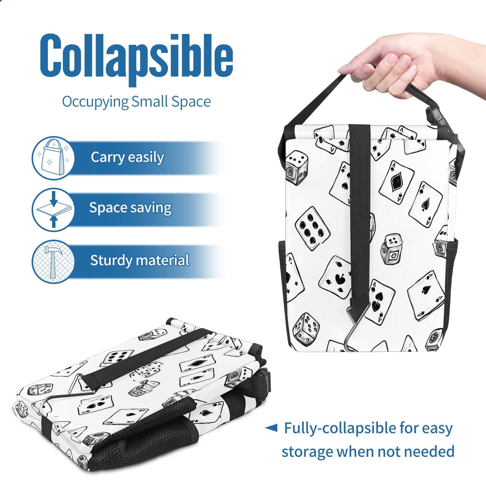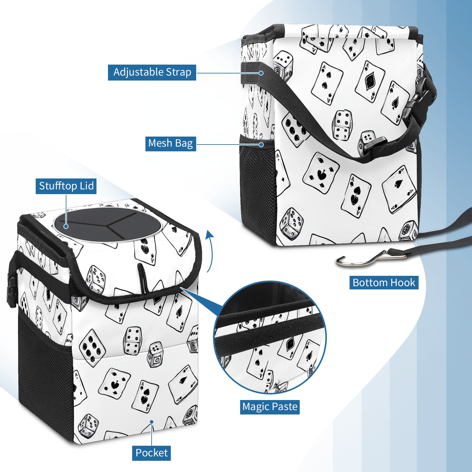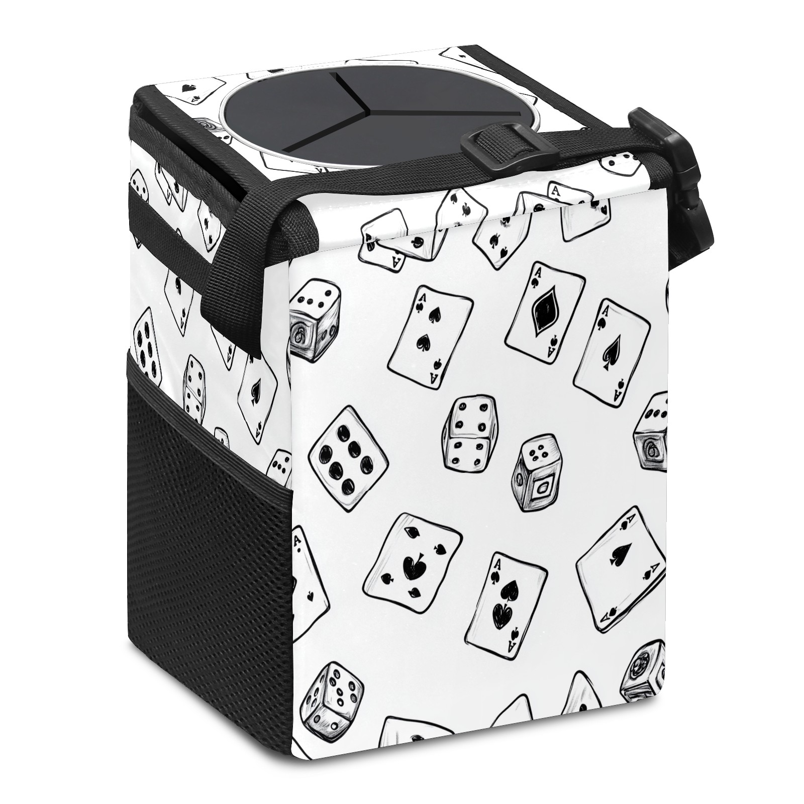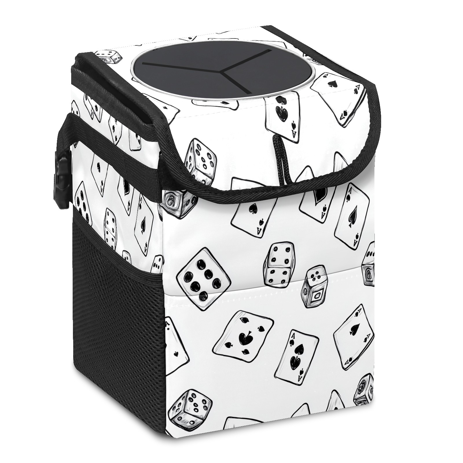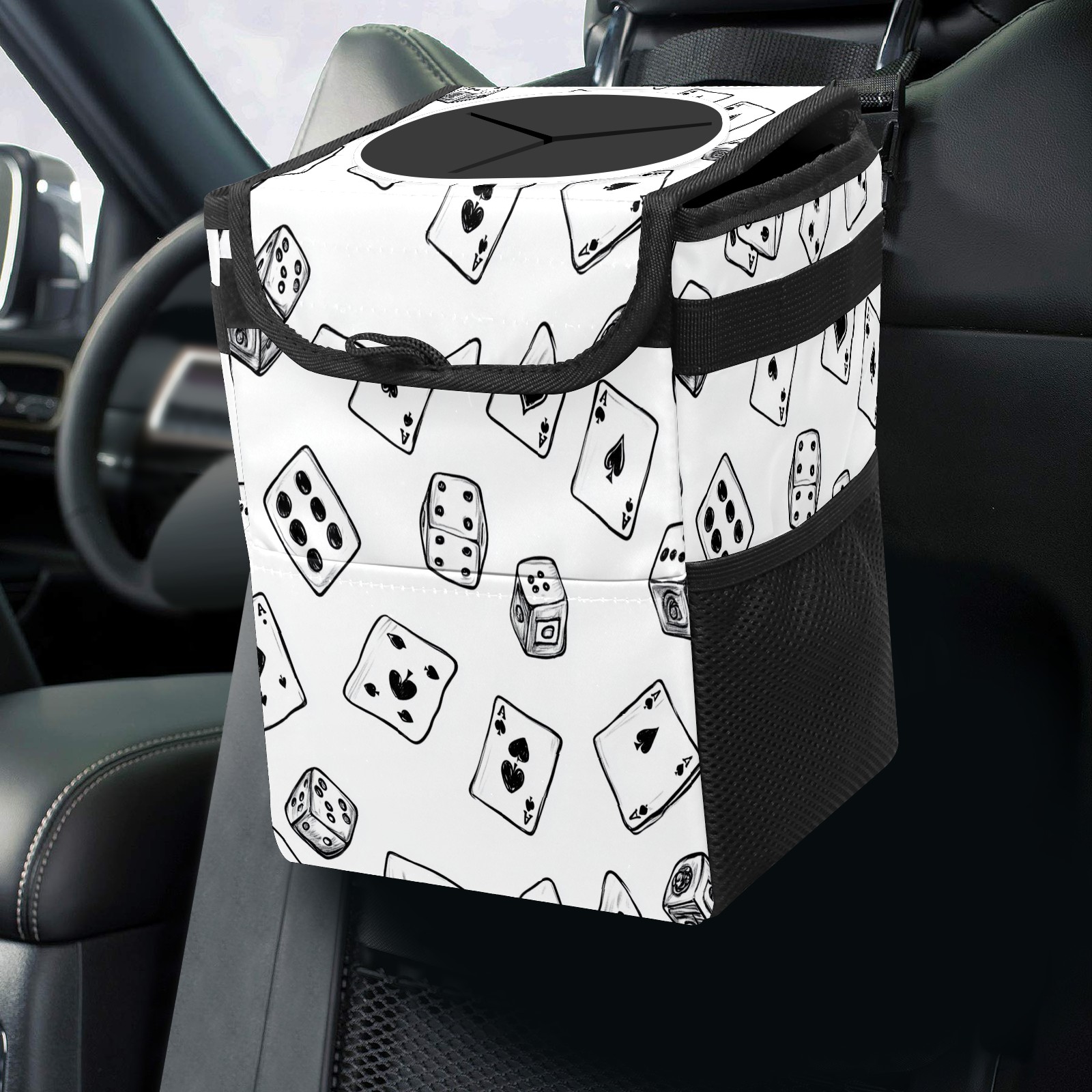 Car Trash Can with Lid, Small Portable Hanging Automotive Garbage Bin for Vehicles, Leakproof Waste Bag Container for SUV Truck Van Interior Auto Travel Road Trips(Hand-drawn Cards Dice And Poker)