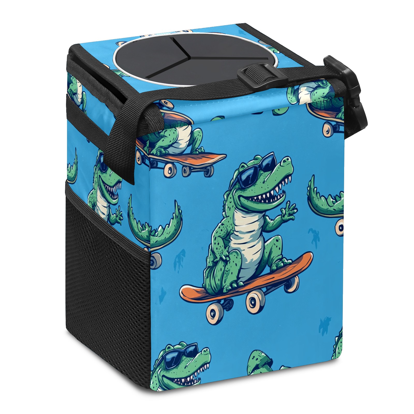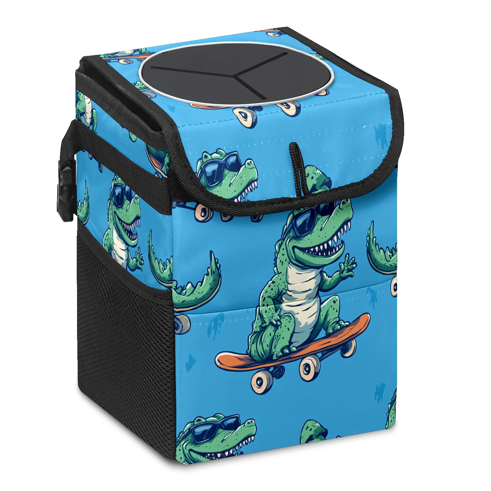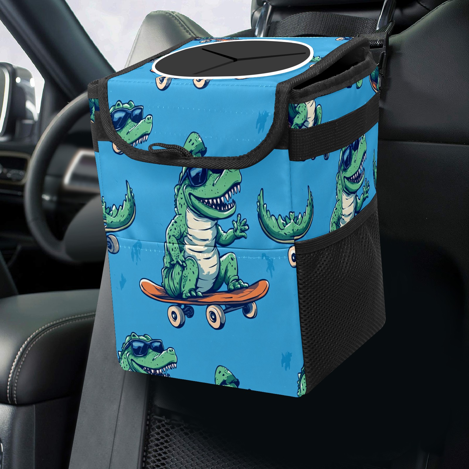 Car Trash Can with Lid, Small Portable Hanging Automotive Garbage Bin for Vehicles, Leakproof Waste Bag Container for SUV Truck Van Interior Auto Travel Road Trips(Alligator Riding)