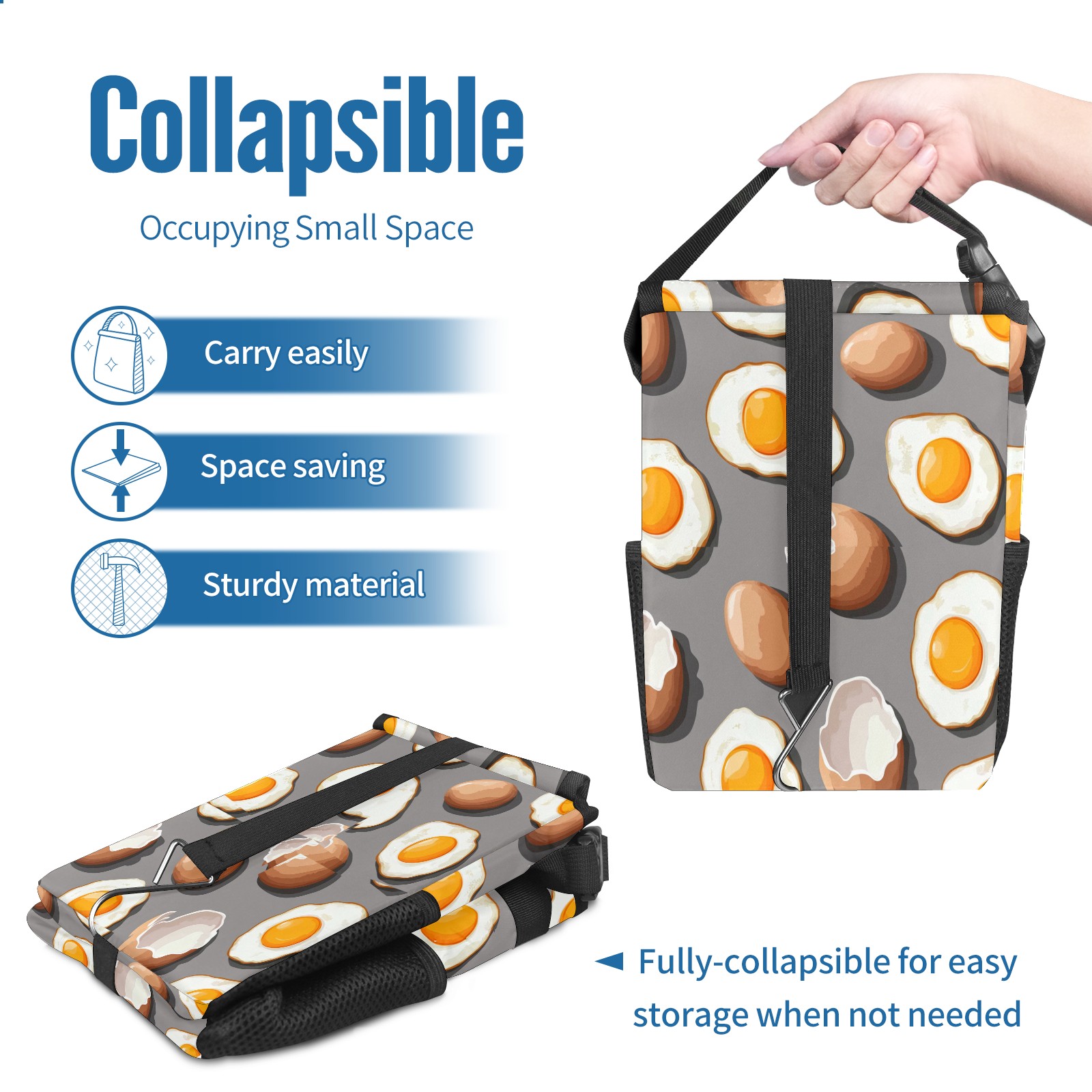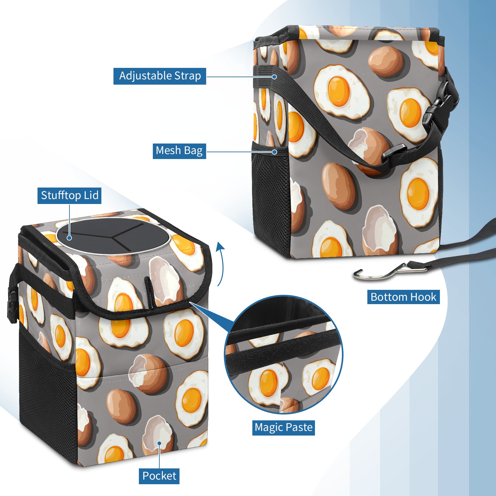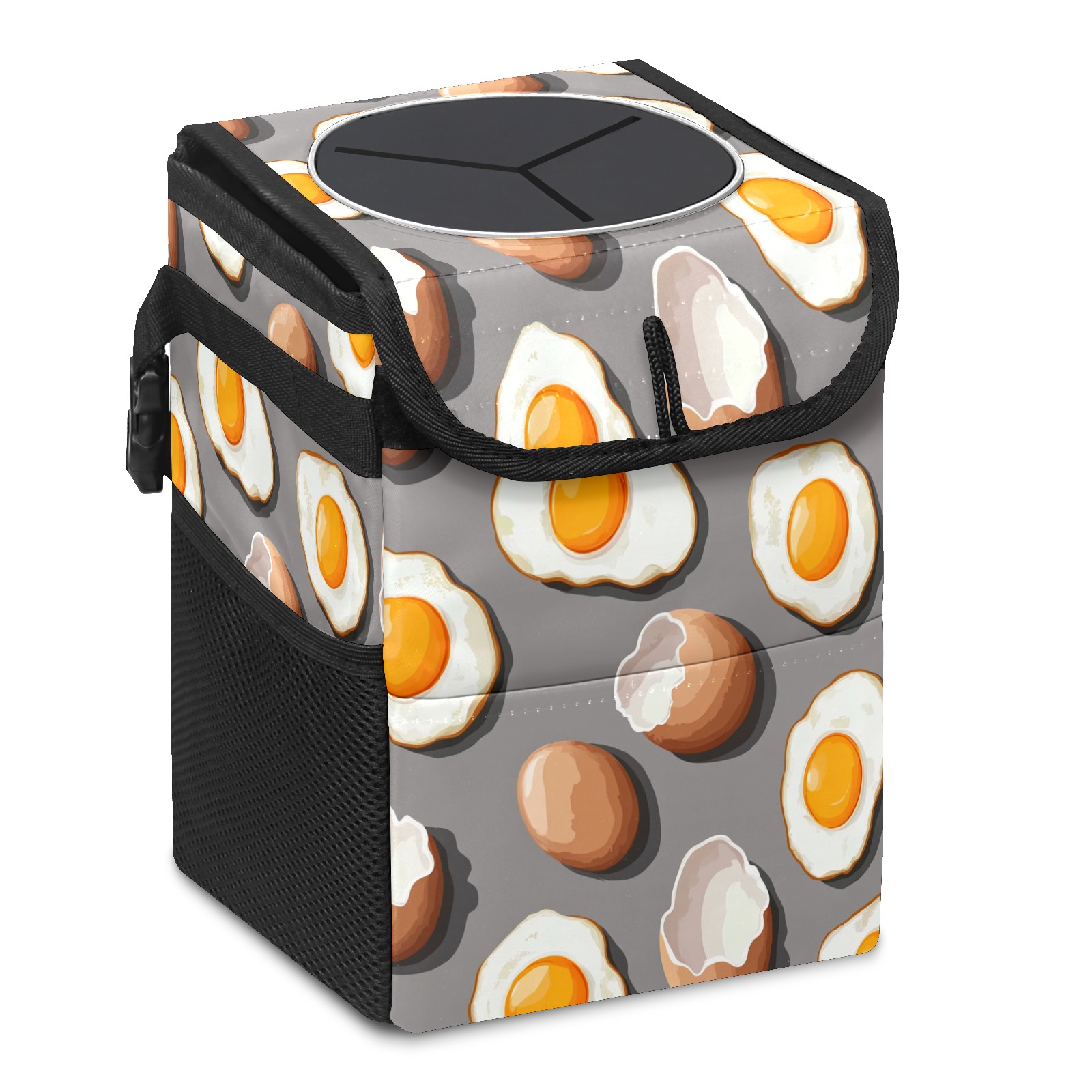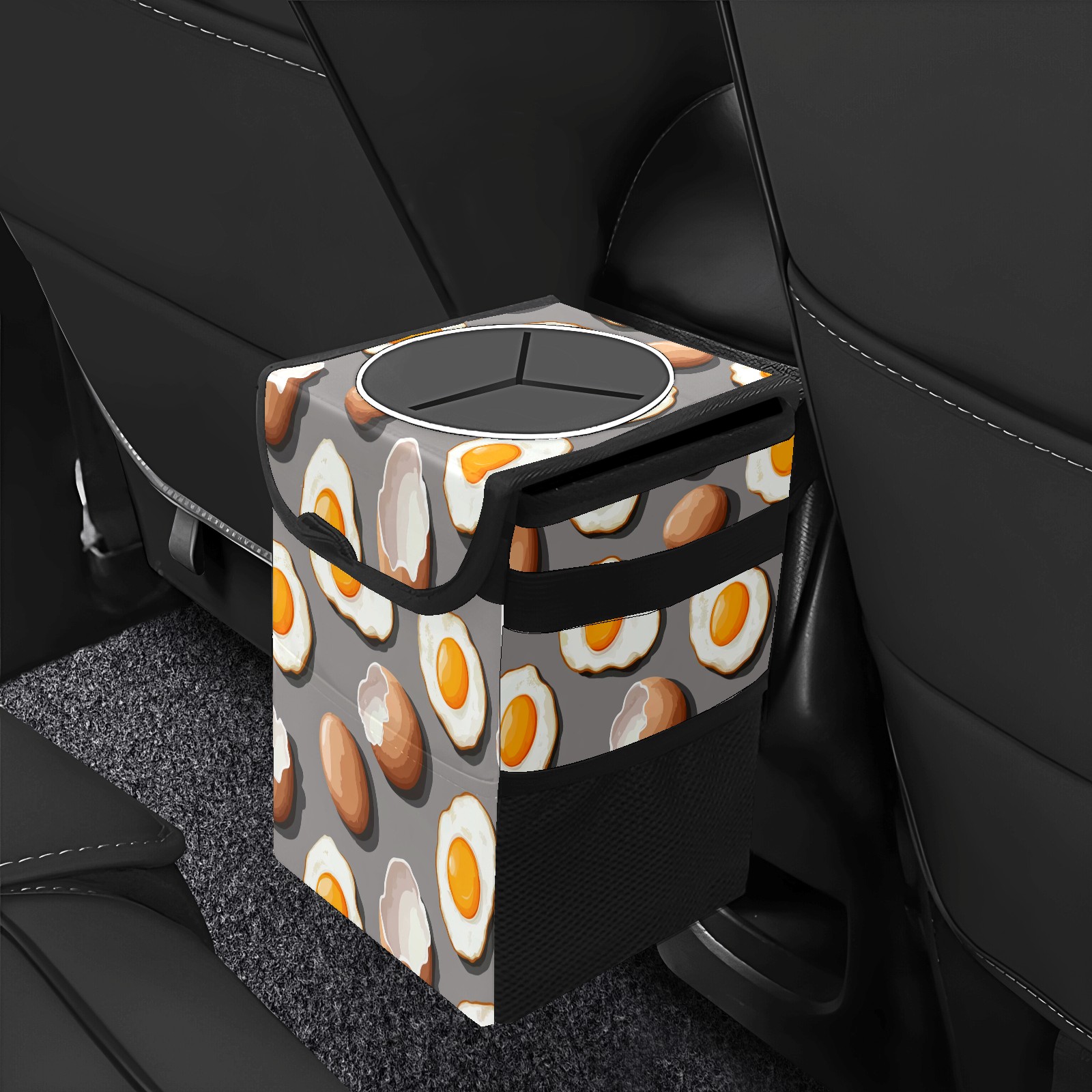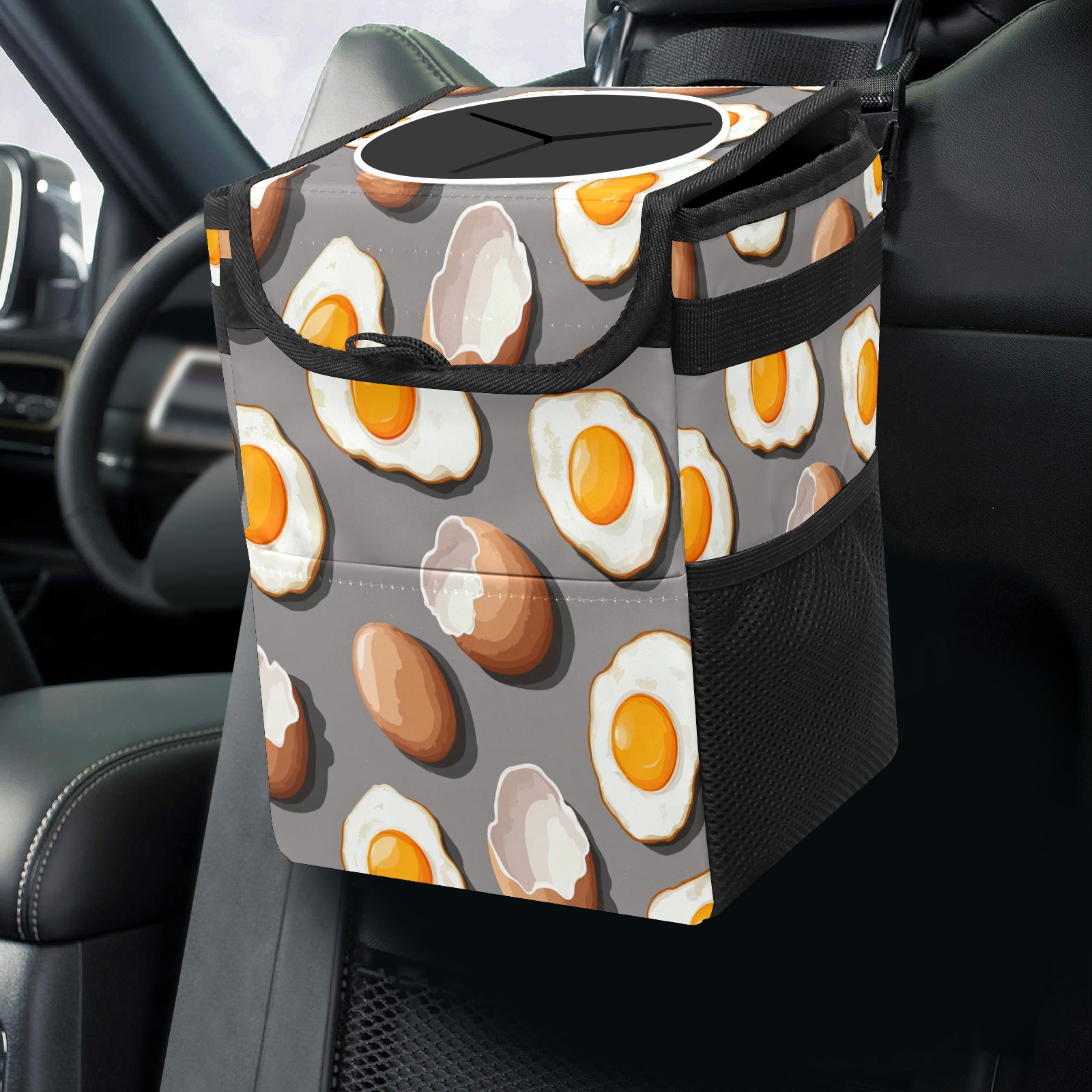 Car Trash Can with Lid, Small Portable Hanging Automotive Garbage Bin for Vehicles, Leakproof Waste Bag Container for SUV Truck Van Interior Auto Travel Road Trips(Fried Eggs And Eggshells)