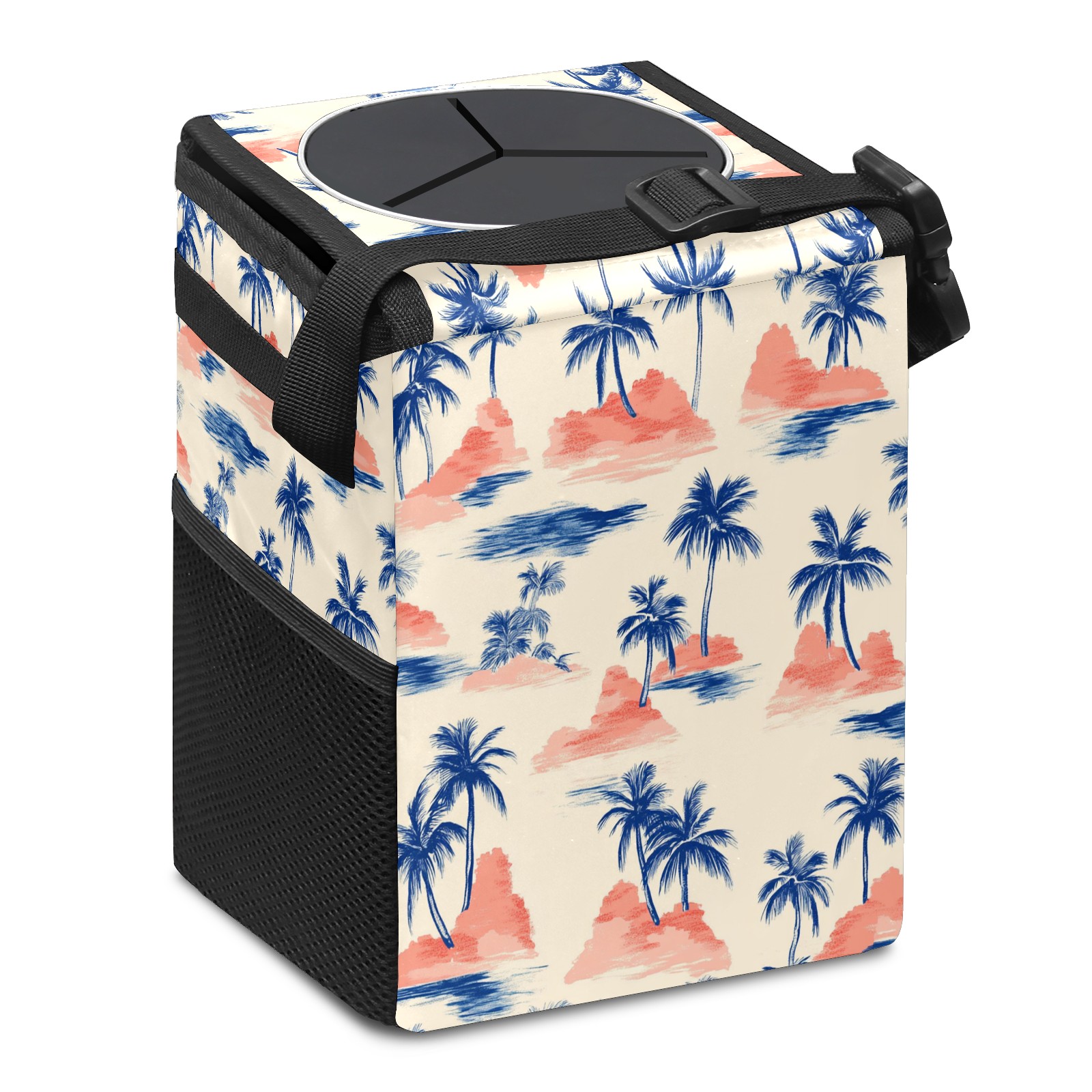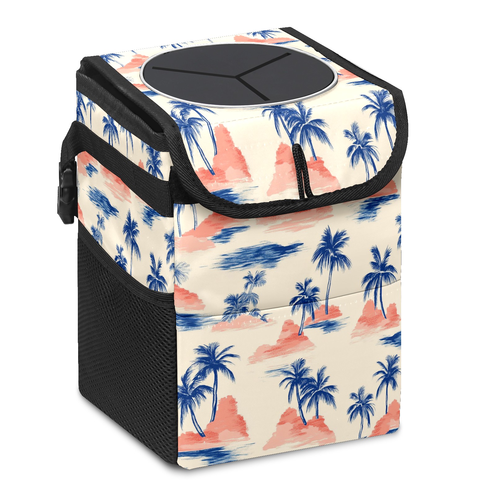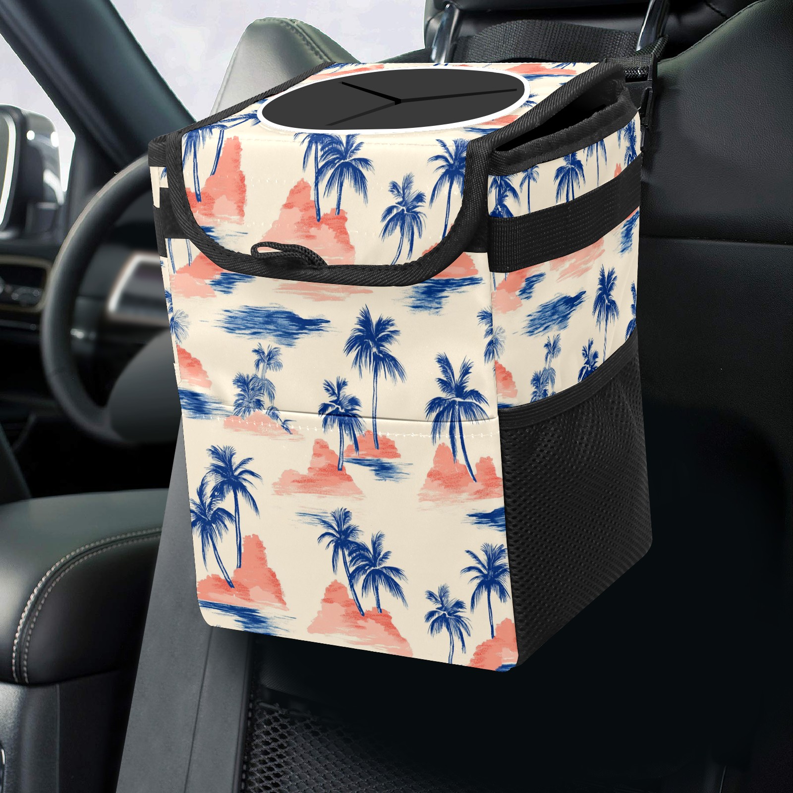 Car Trash Can with Lid, Small Portable Hanging Automotive Garbage Bin for Vehicles, Leakproof Waste Bag Container for SUV Truck Van Interior Auto Travel Road Trips(Pink And Blue Hues)
