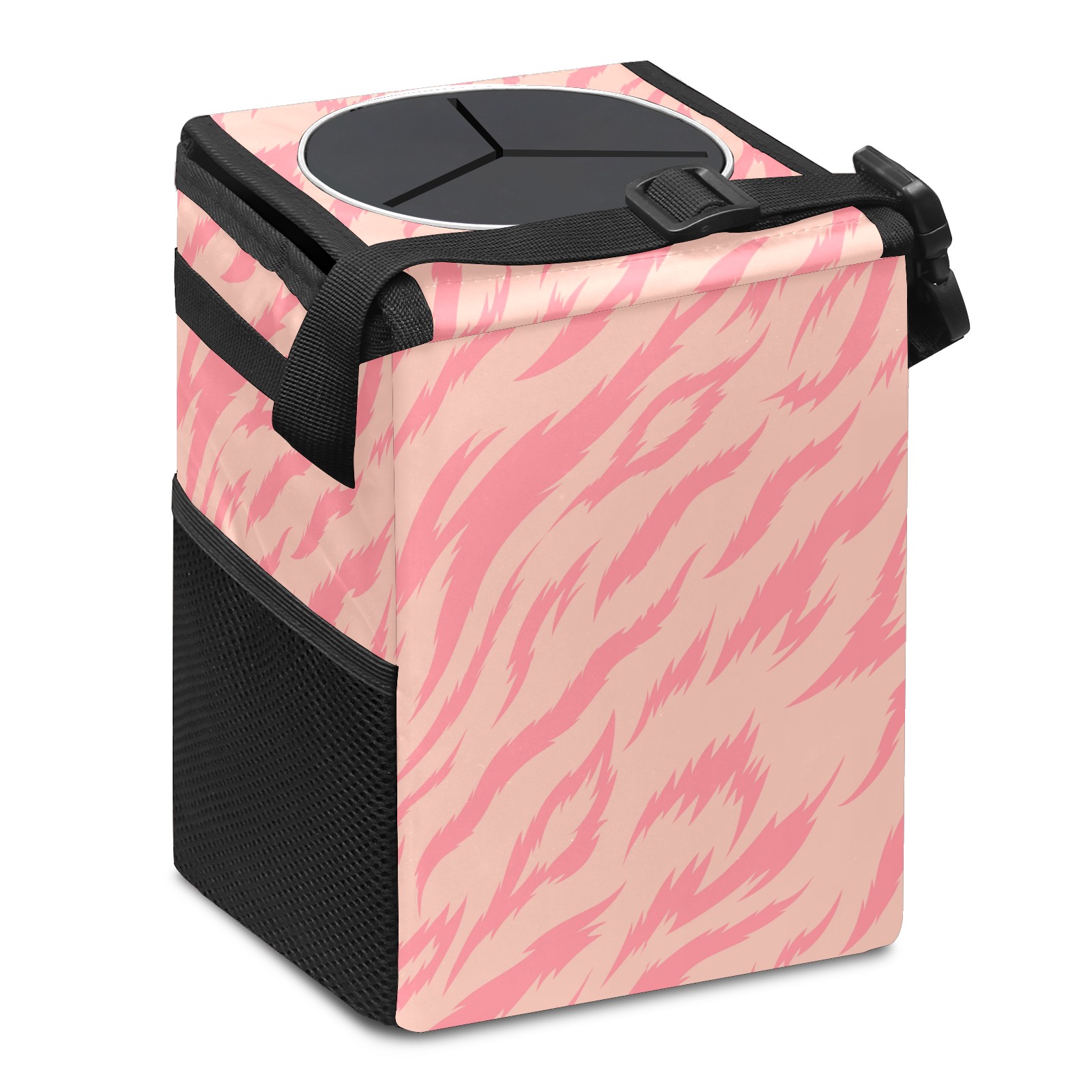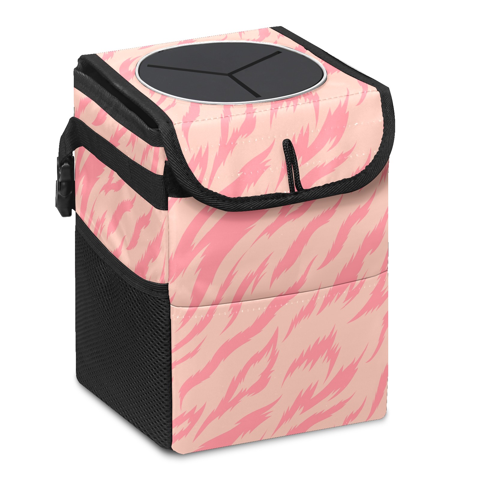 Car Trash Can with Lid, Small Portable Hanging Automotive Garbage Bin for Vehicles, Leakproof Waste Bag Container for SUV Truck Van Interior Auto Travel Road Trips(Pink Tiger Stripes Camo)