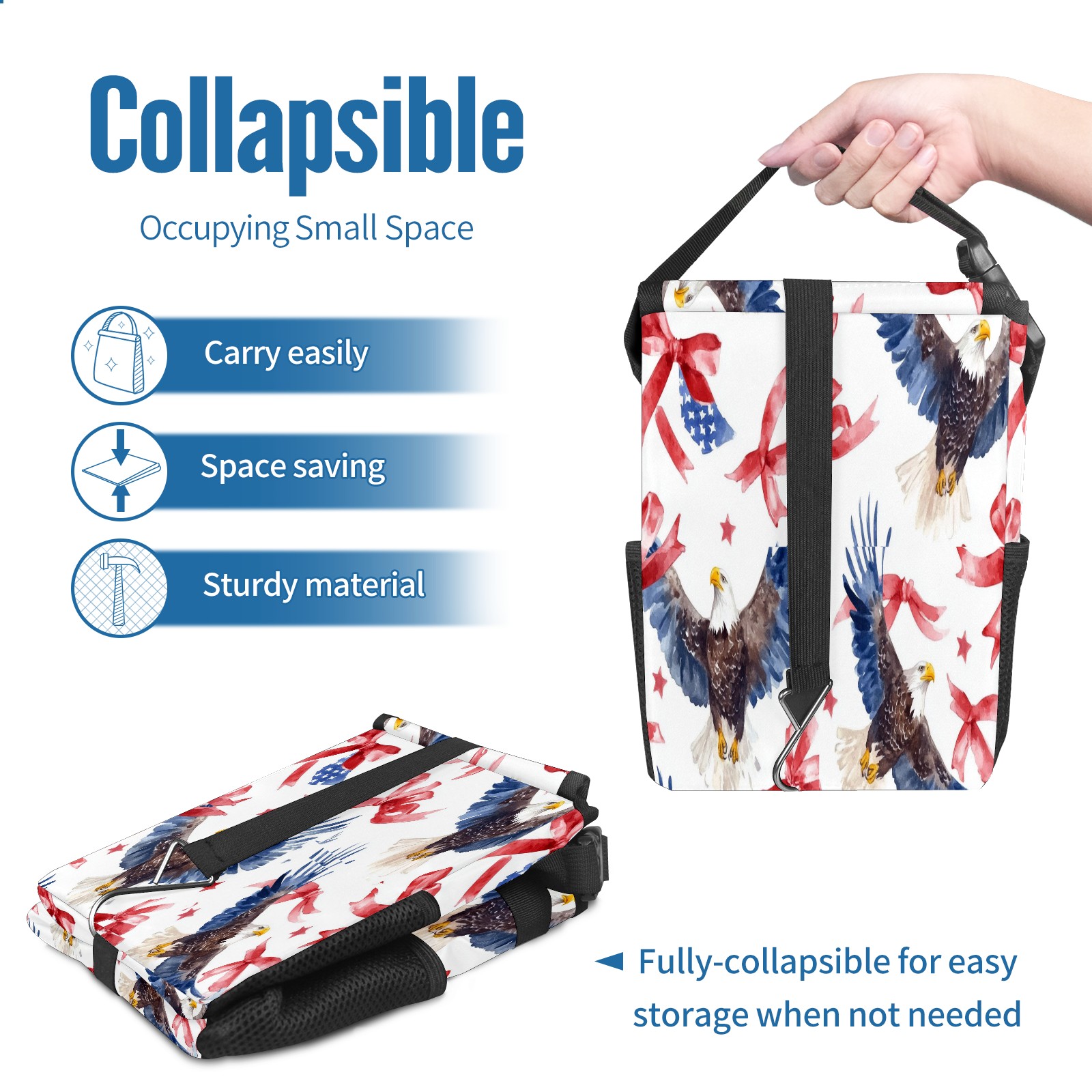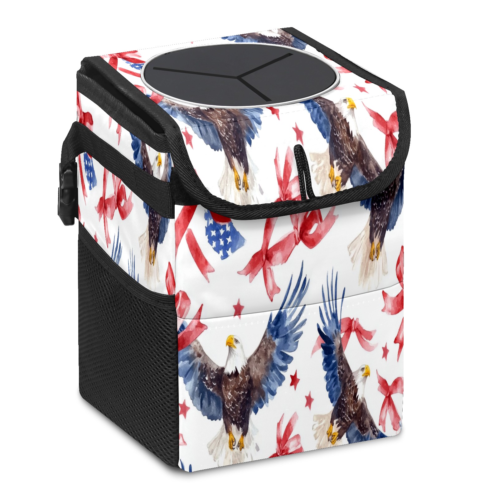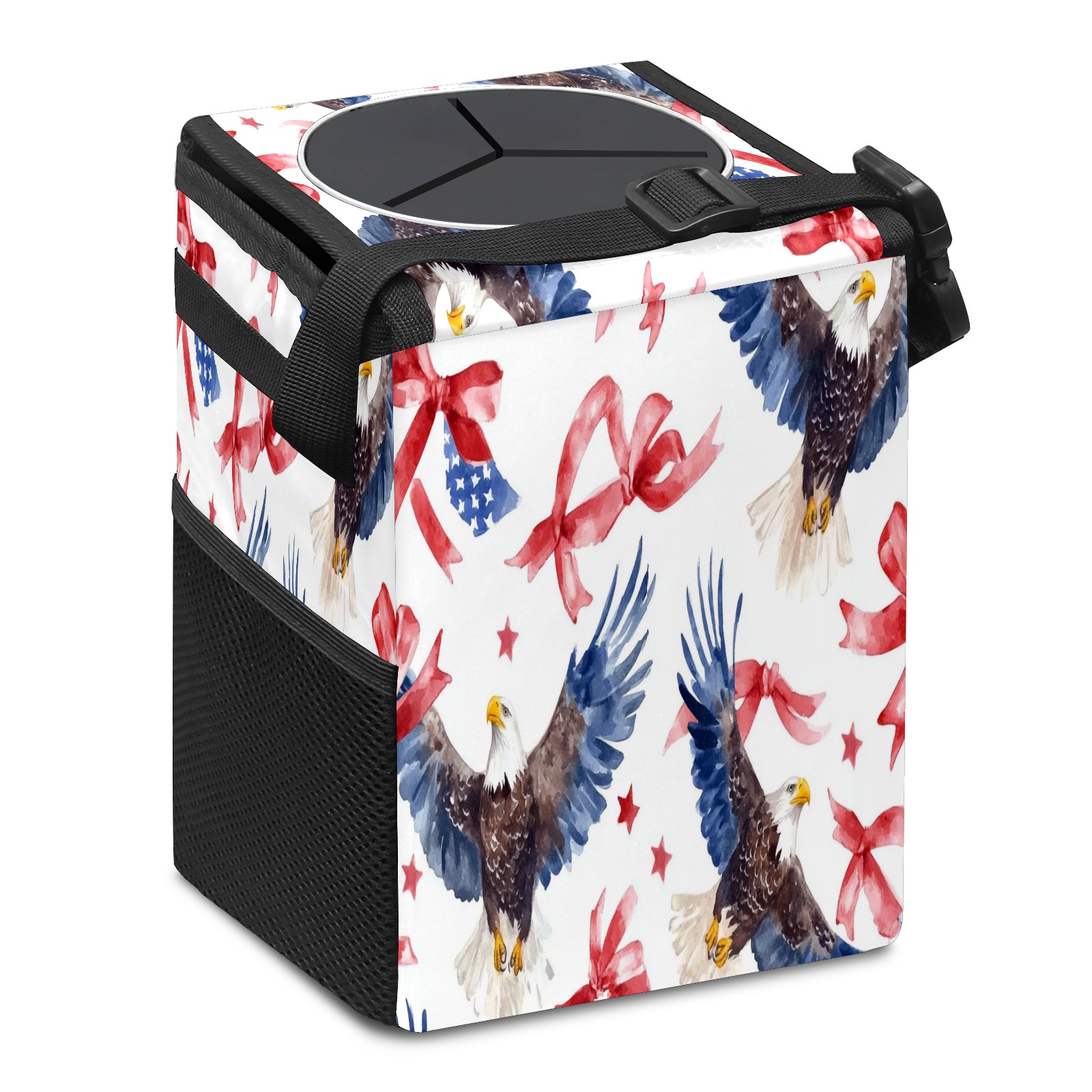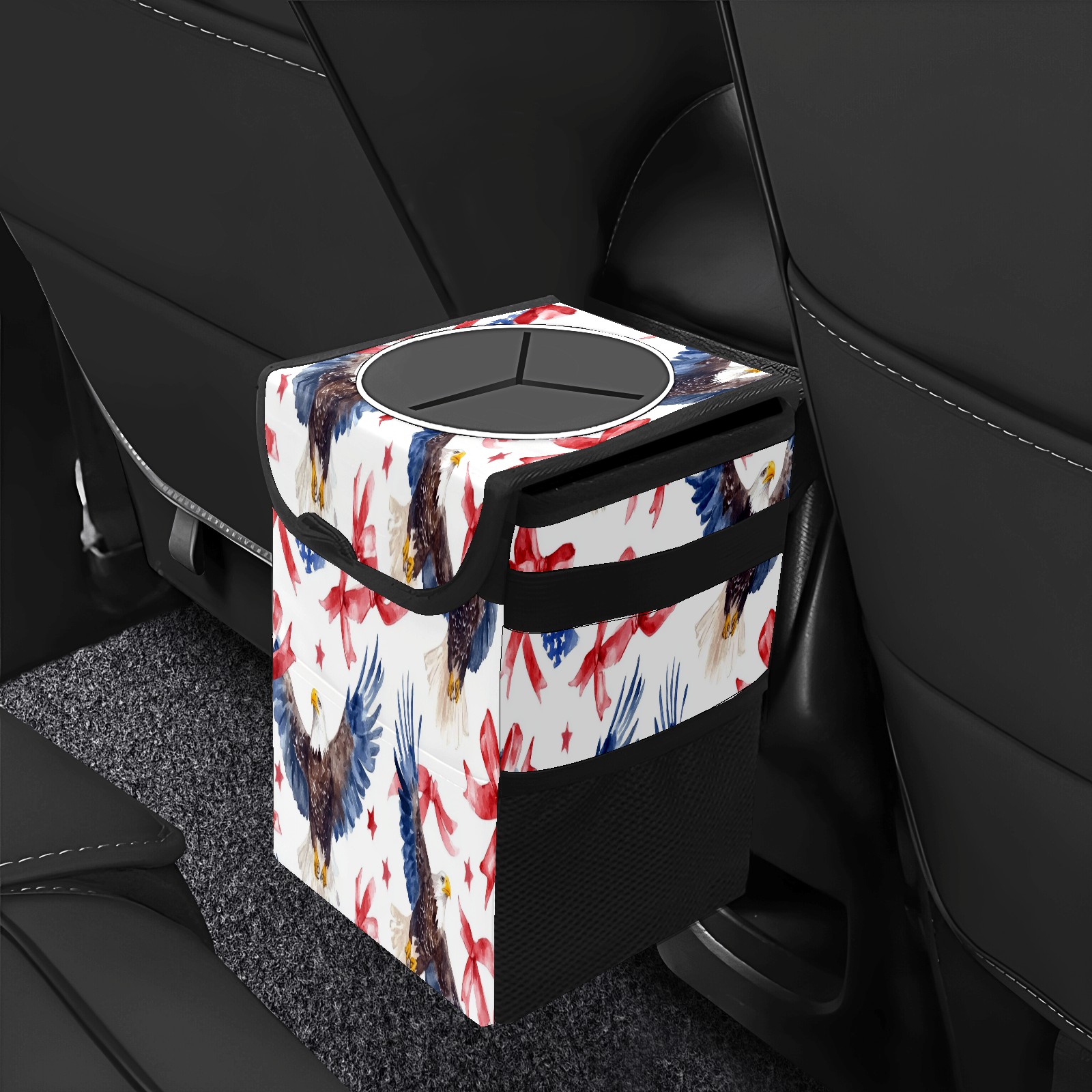 Car Trash Can with Lid, Small Portable Hanging Automotive Garbage Bin for Vehicles, Leakproof Waste Bag Container for SUV Truck Van Interior Auto Travel Road Trips(American Flag Bows And Eagles)