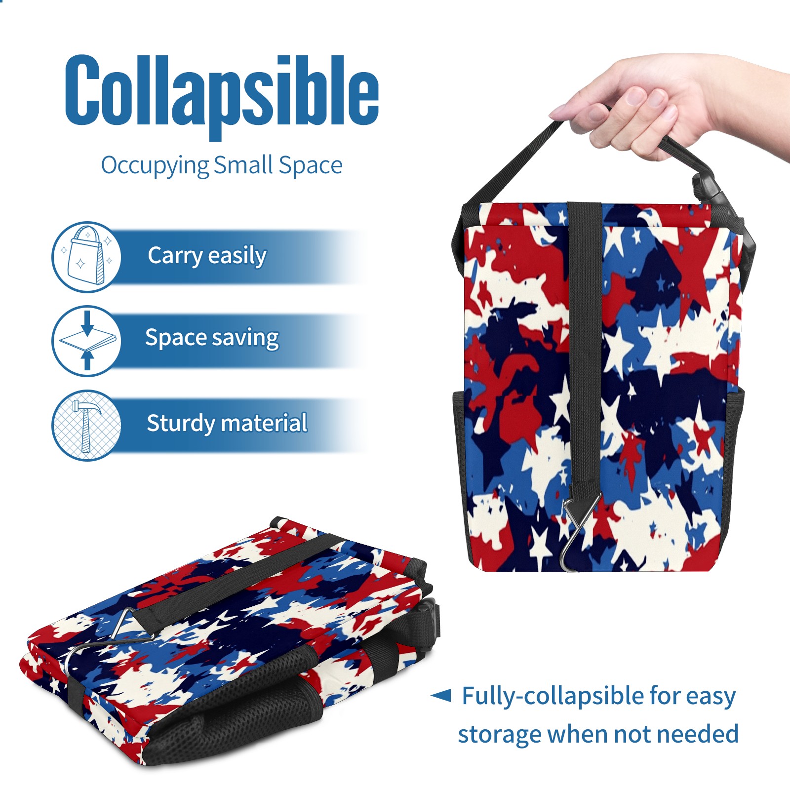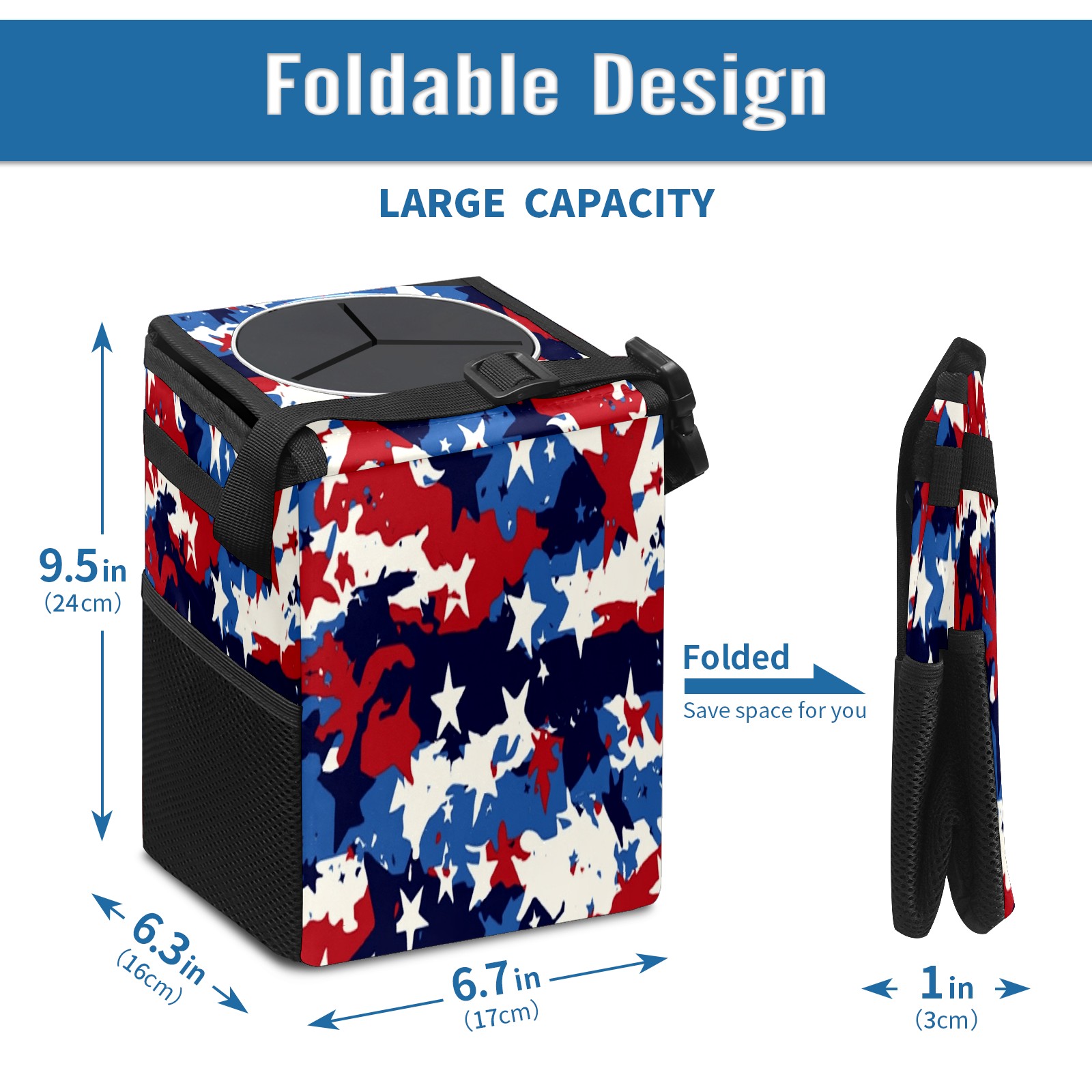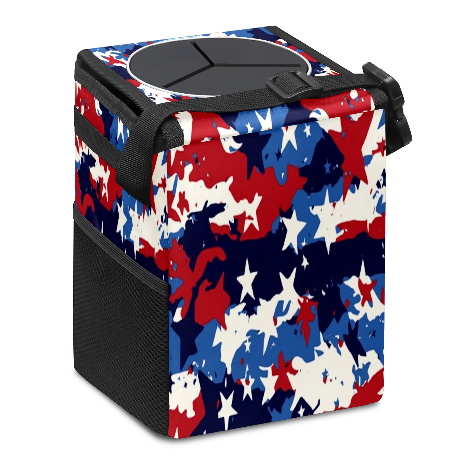 Car Trash Can with Lid, Small Portable Hanging Automotive Garbage Bin for Vehicles, Leakproof Waste Bag Container for SUV Truck Van Interior Auto Travel Road Trips(Red White And Blue Camouflage)