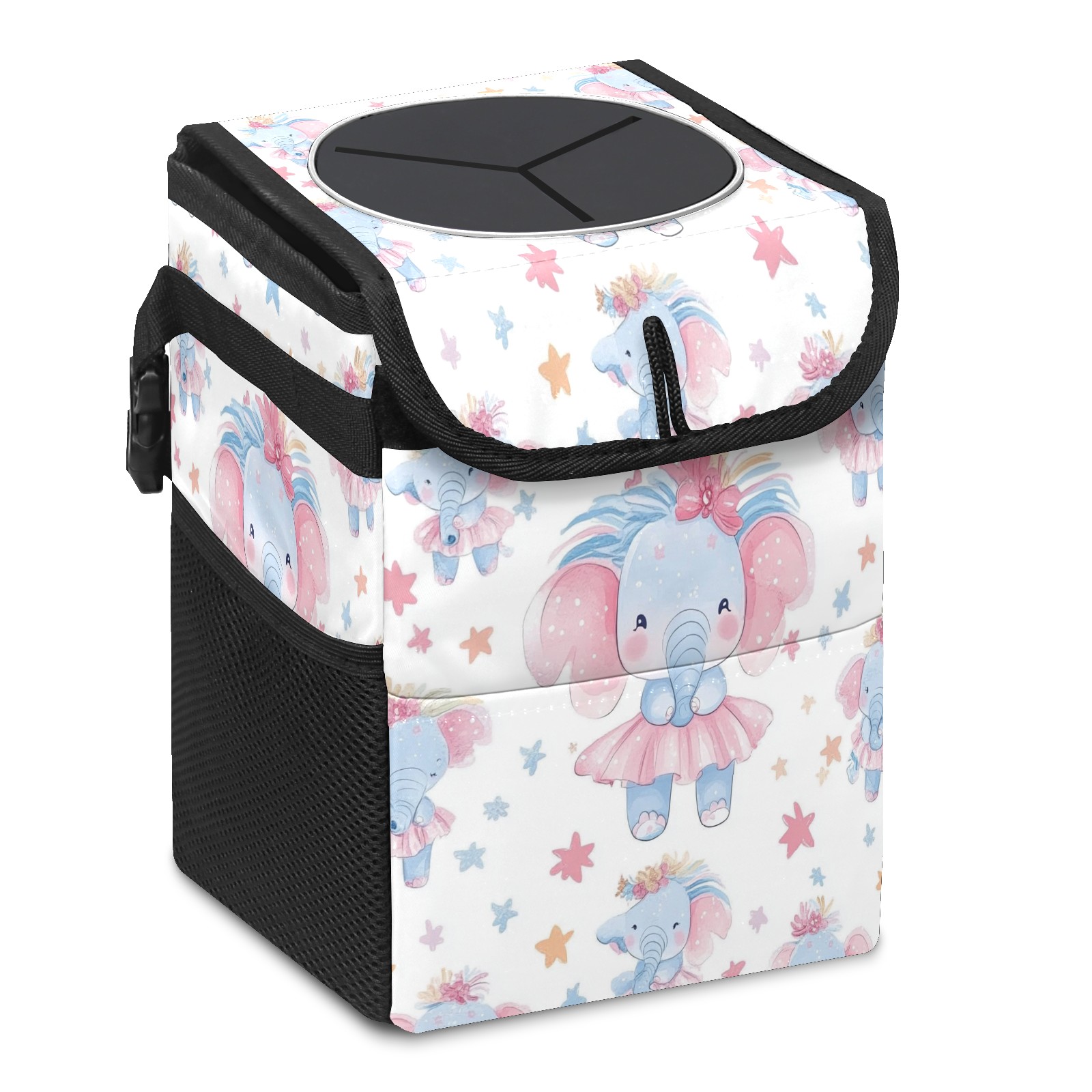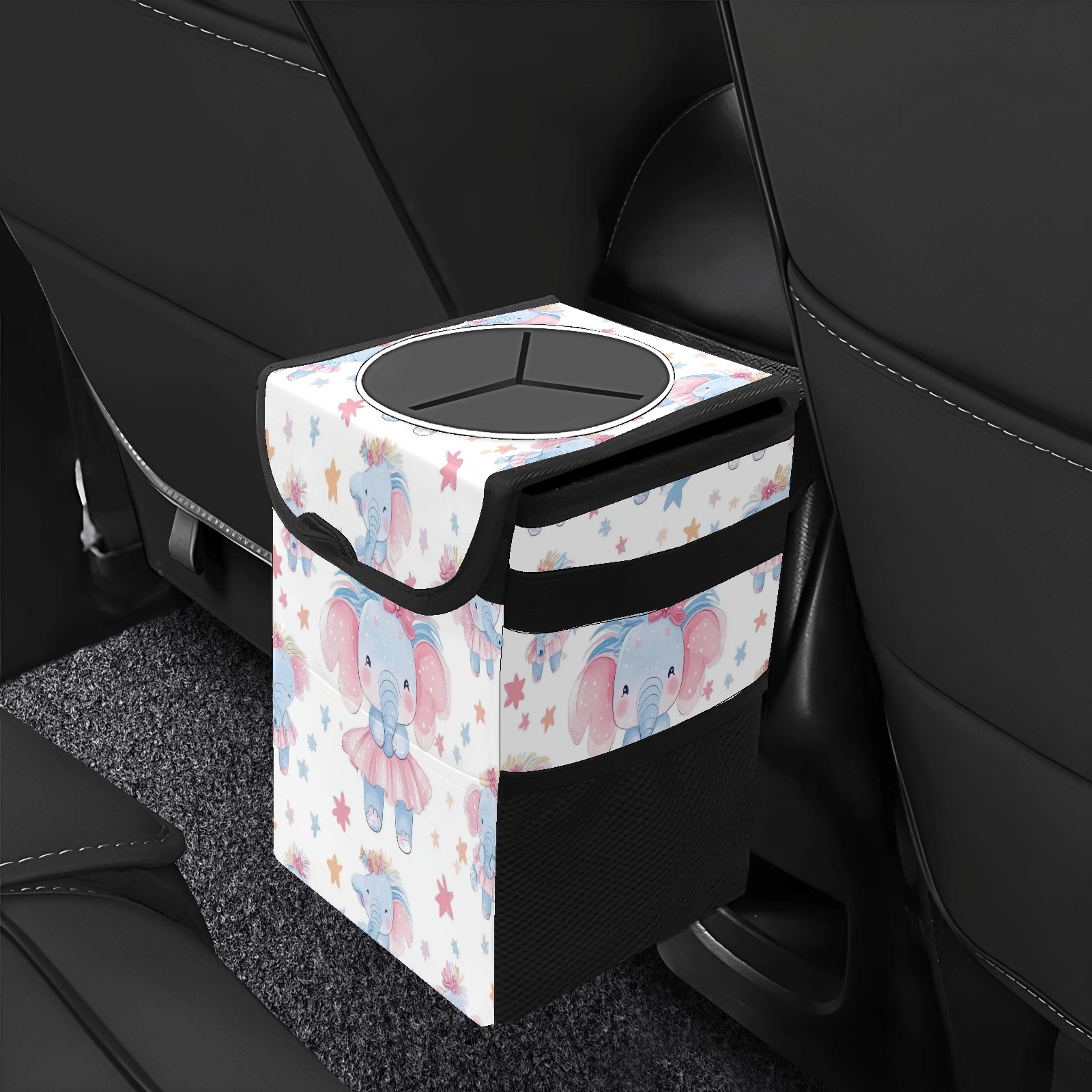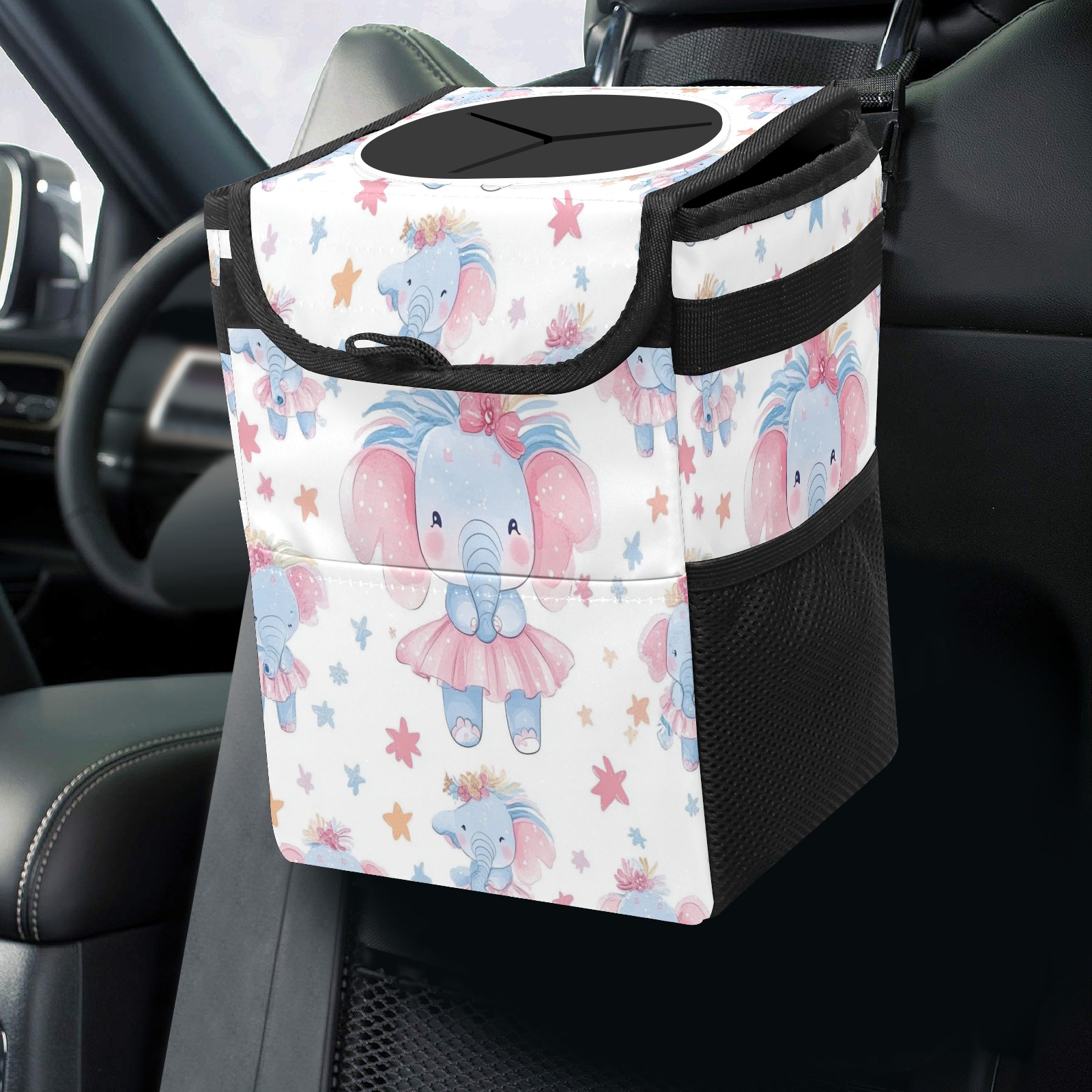 Car Trash Can with Lid, Small Portable Hanging Automotive Garbage Bin for Vehicles, Leakproof Waste Bag Container for SUV Truck Van Interior Auto Travel Road Trips(Baby Elephant)