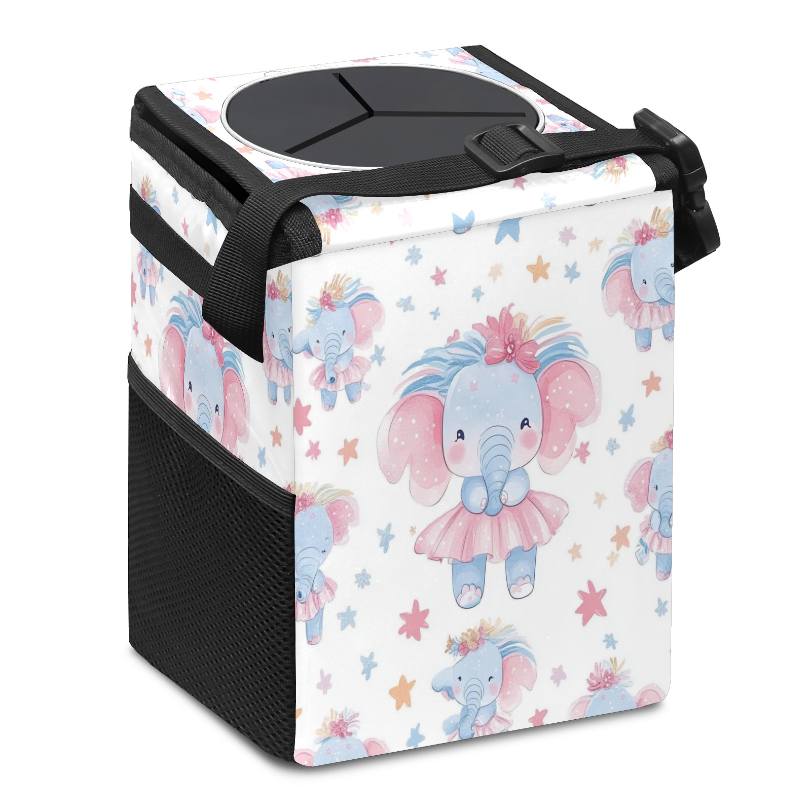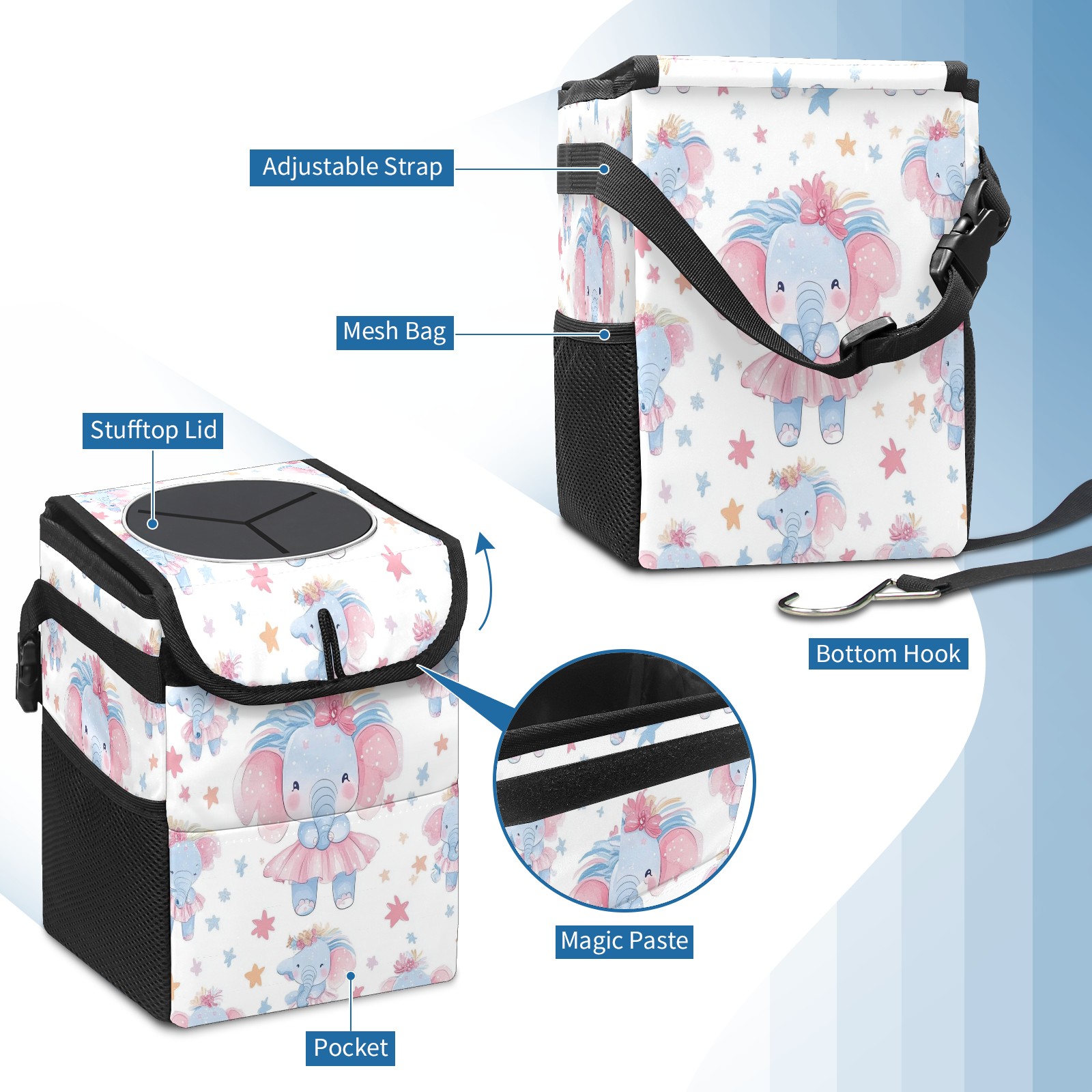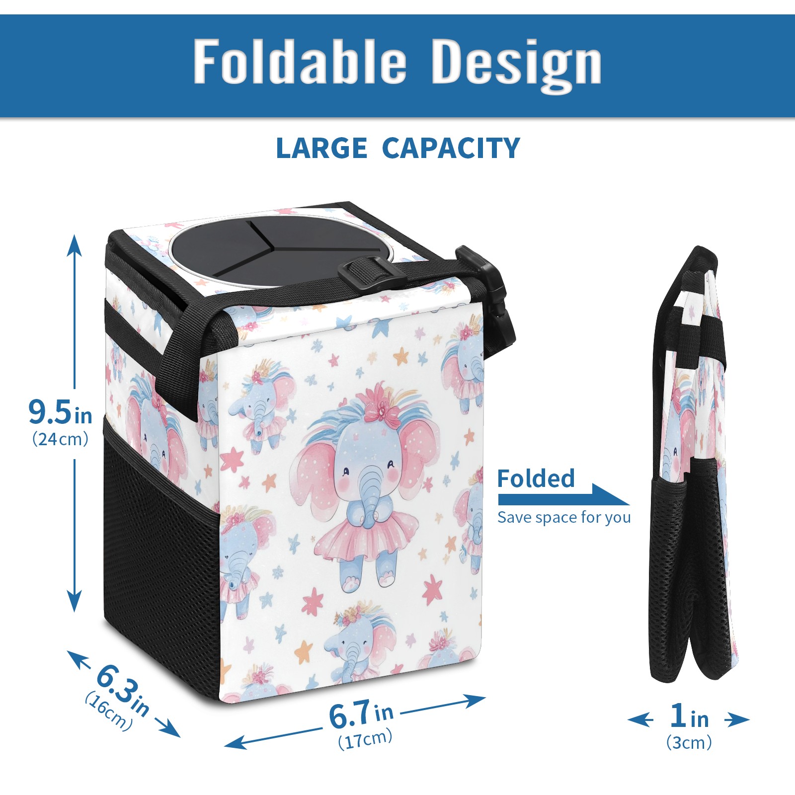 Car Trash Can with Lid, Small Portable Hanging Automotive Garbage Bin for Vehicles, Leakproof Waste Bag Container for SUV Truck Van Interior Auto Travel Road Trips(Baby Elephant)