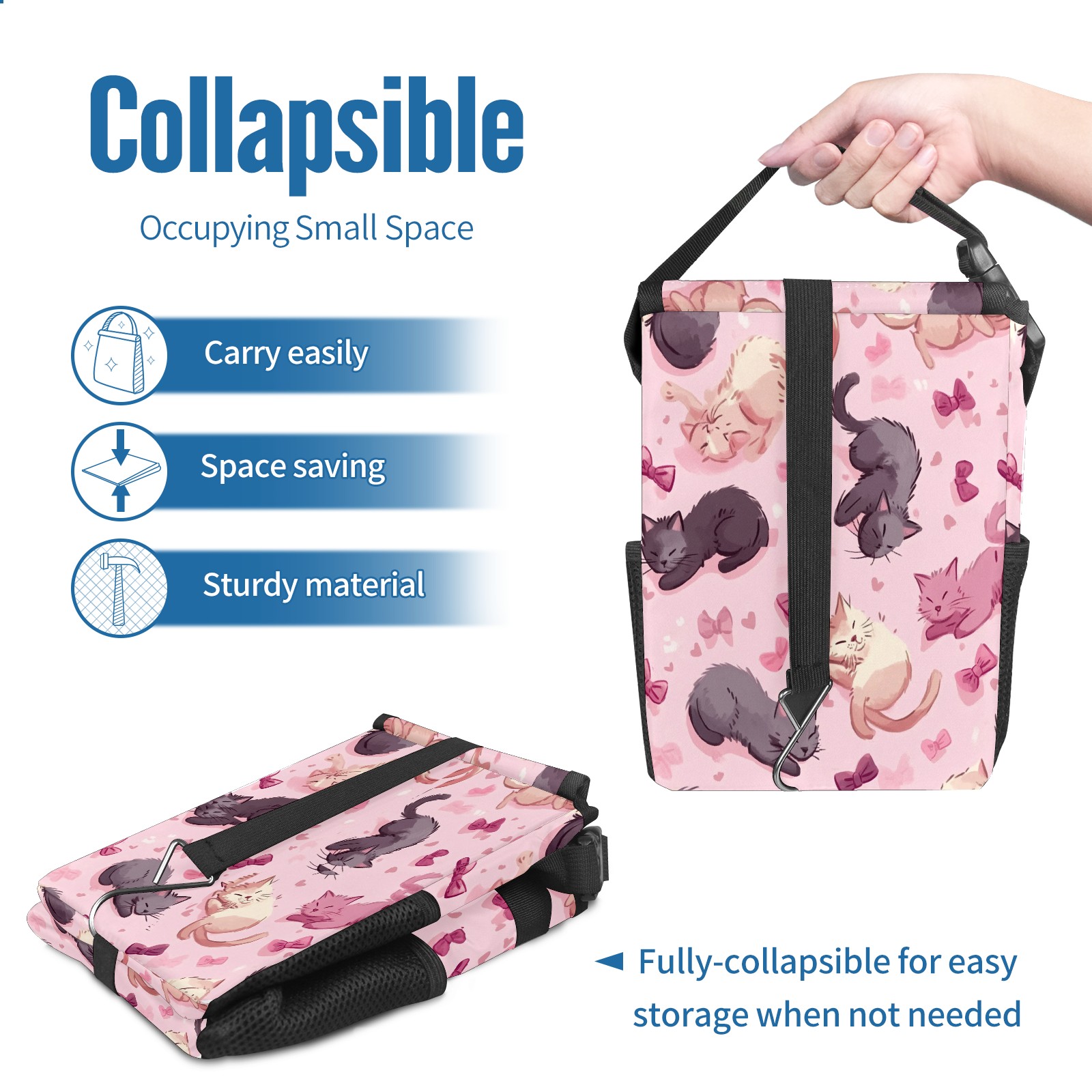 • <p><b>Keep Your Car Clean &amp; Organized</b></p> <p>Tired of car clutter? Our durable car trash can is the perfect solution. This compact, leak-proof bin fits perfectly in cup holders, door pockets, or between seats.</p> <p>Ideal for commutes, road trips, and school runs, it’s a must-have car accessory. Use it as a hanging trash bag or a sturdy garbage bin for your SUV, truck, or back seat.</p> <p>Made from tough, easy-clean material, this portable trash container keeps your vehicle spotless. Get your essential car organizer today and enjoy a cleaner ride!</p>
