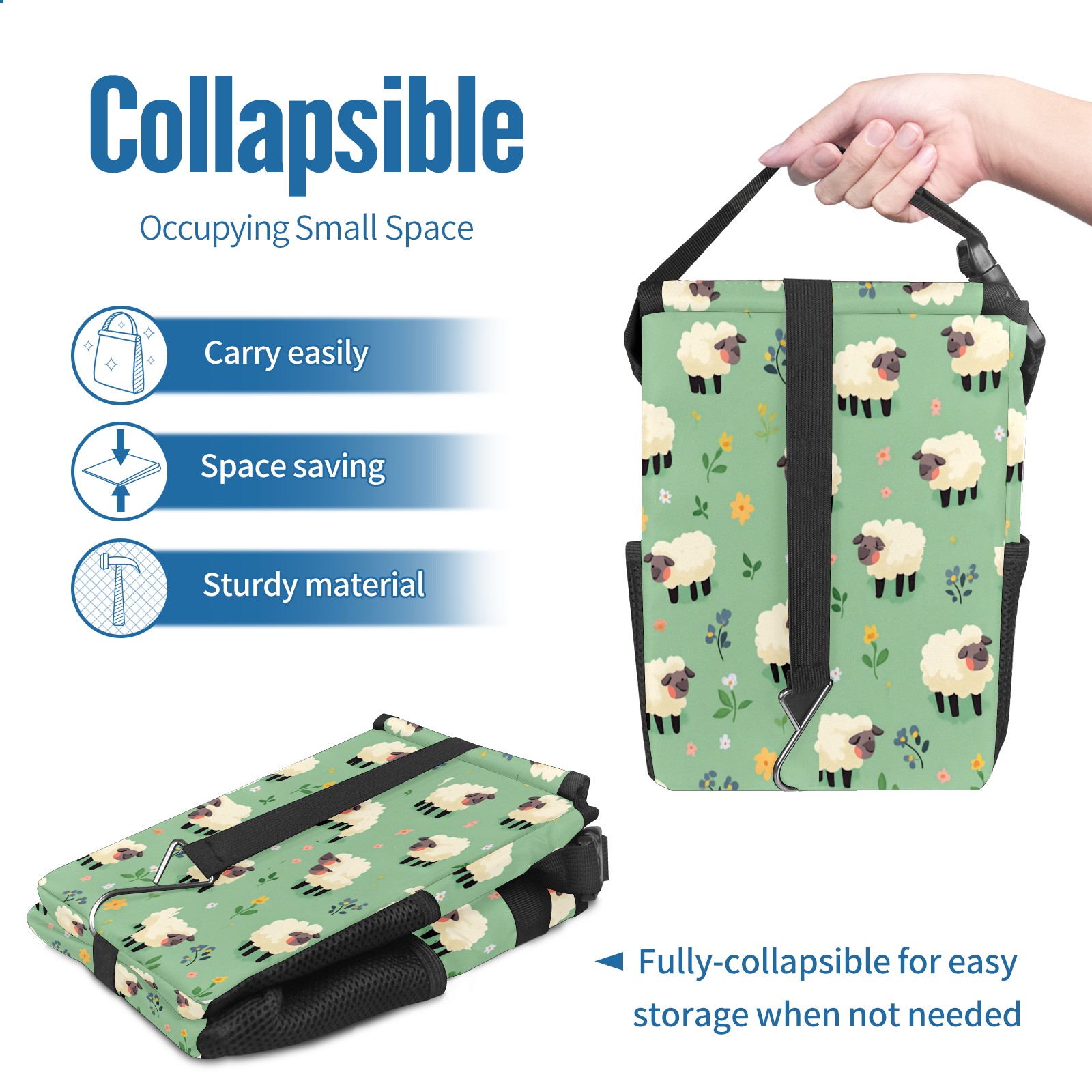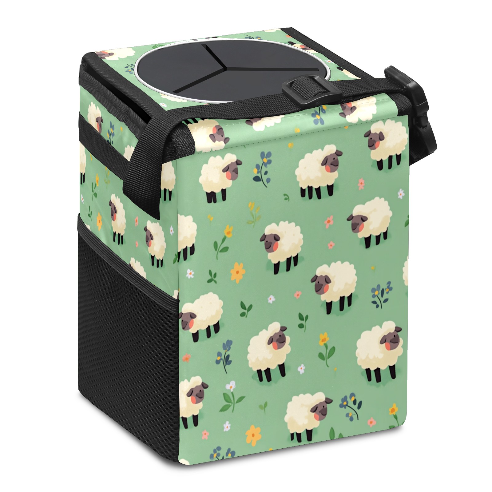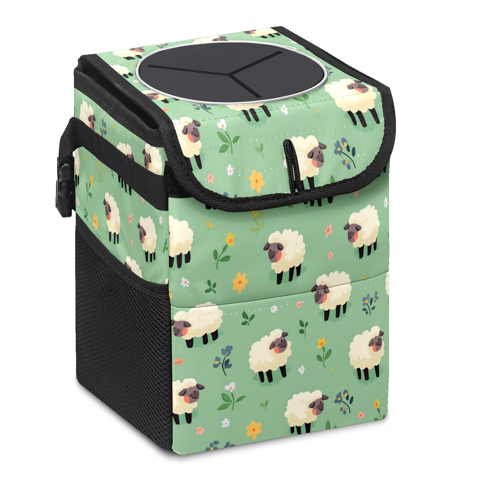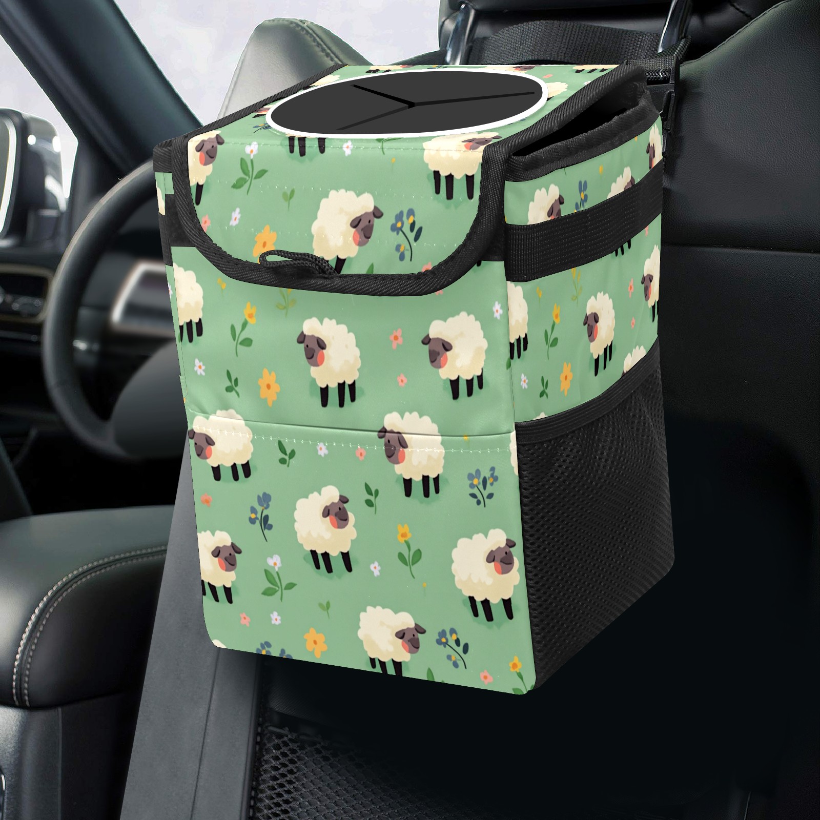 Car Trash Can with Lid, Small Portable Hanging Automotive Garbage Bin for Vehicles, Leakproof Waste Bag Container for SUV Truck Van Interior Auto Travel Road Trips(Cartoon Sheep)