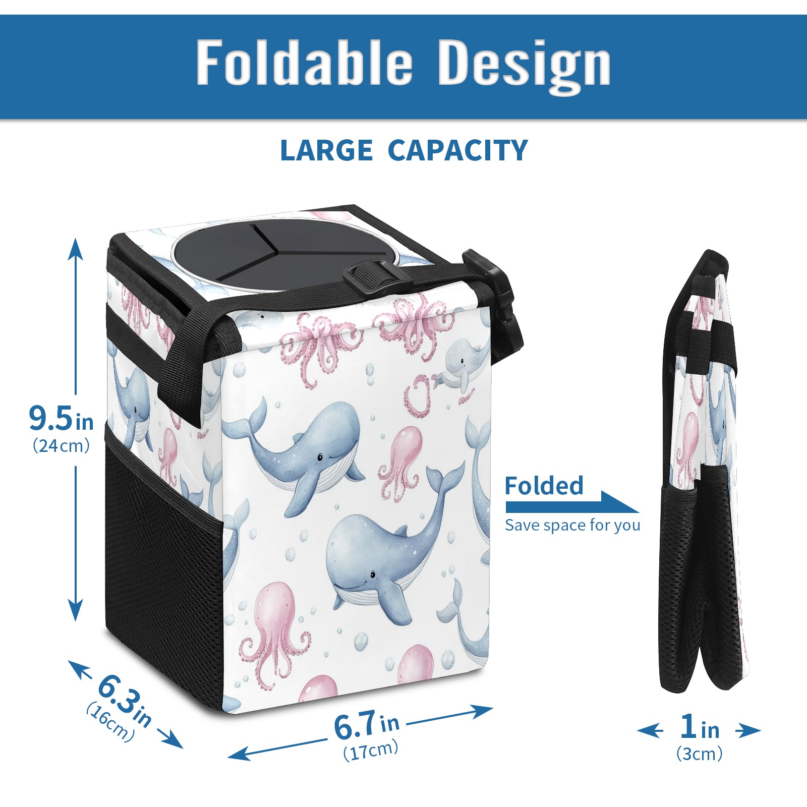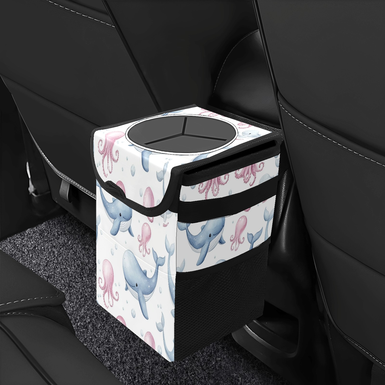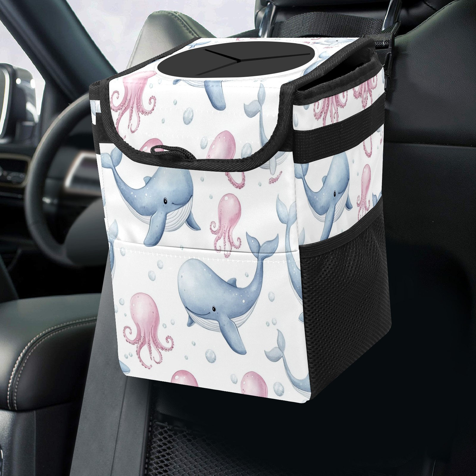 Car Trash Can with Lid, Small Portable Hanging Automotive Garbage Bin for Vehicles, Leakproof Waste Bag Container for SUV Truck Van Interior Auto Travel Road Trips(Blue Whales)