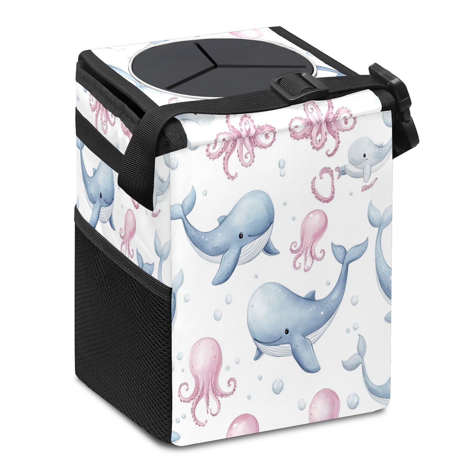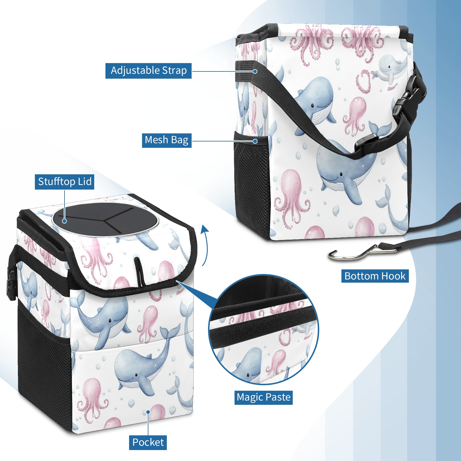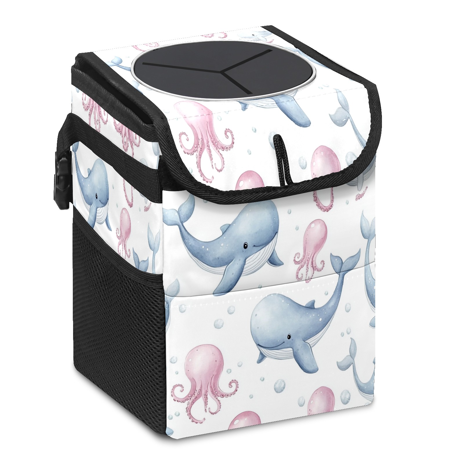 Car Trash Can with Lid, Small Portable Hanging Automotive Garbage Bin for Vehicles, Leakproof Waste Bag Container for SUV Truck Van Interior Auto Travel Road Trips(Blue Whales)
