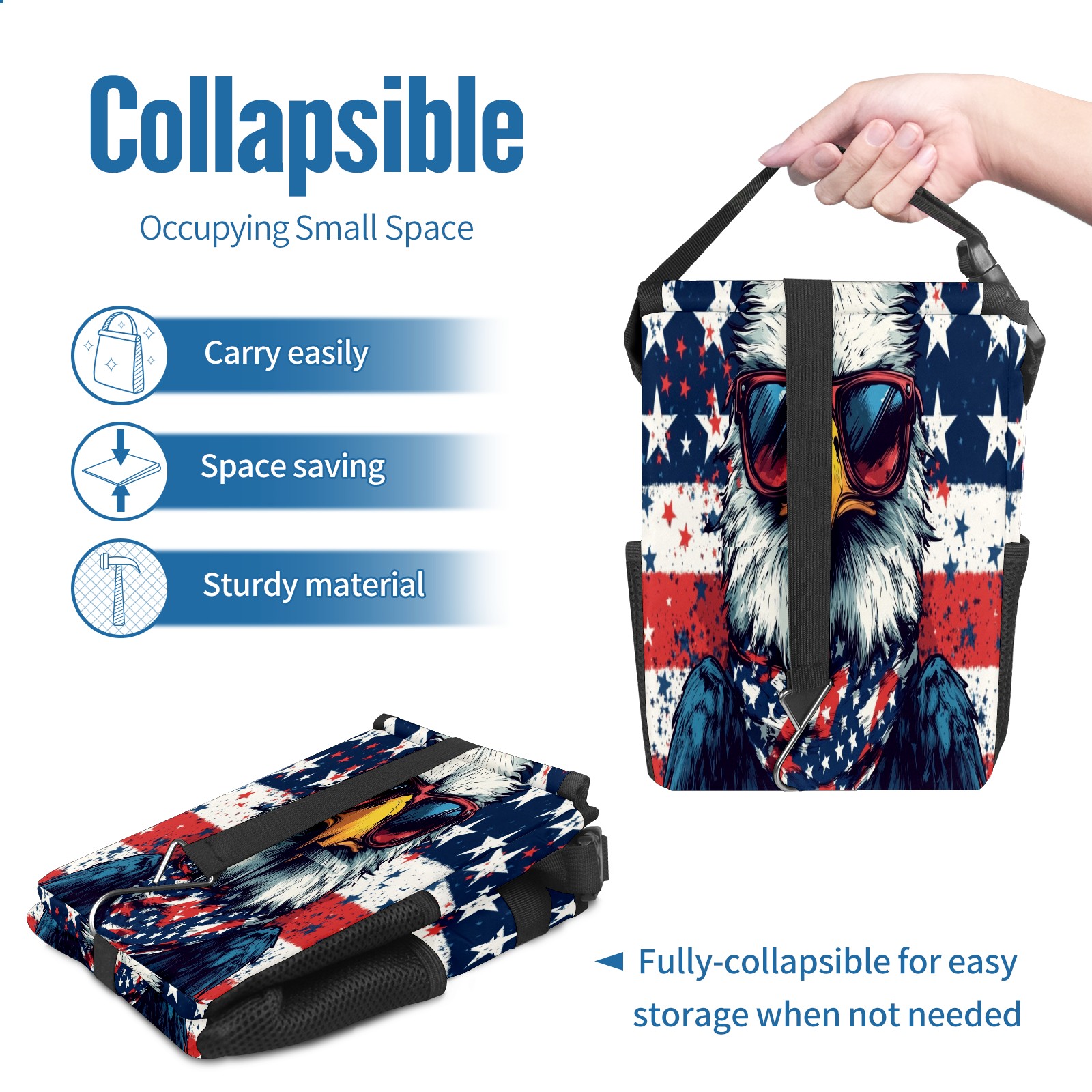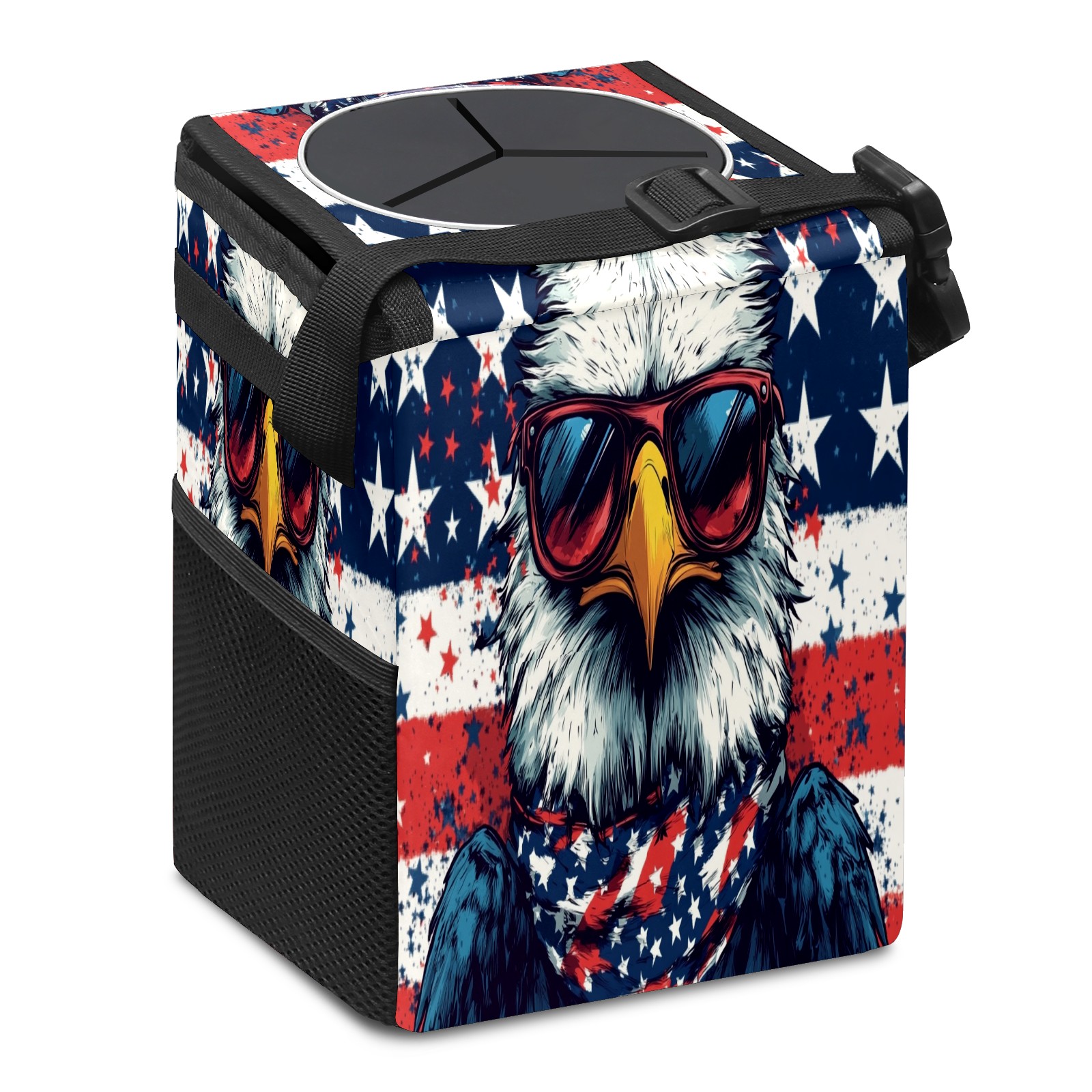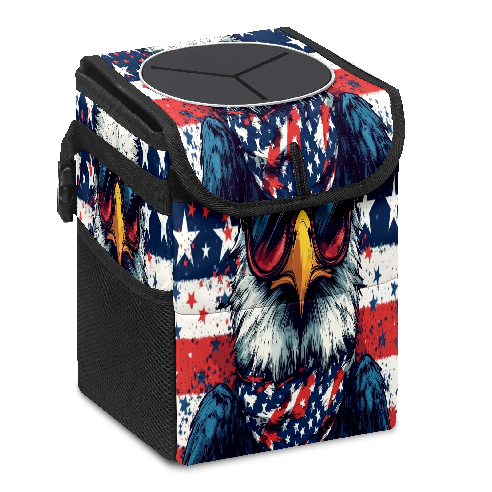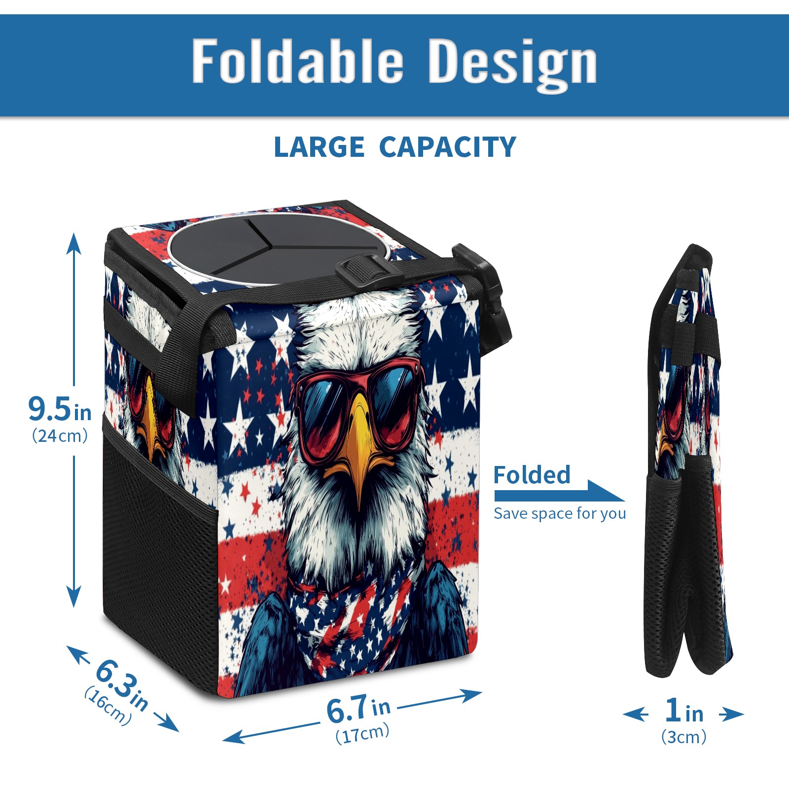 Car Trash Can with Lid, Small Portable Hanging Automotive Garbage Bin for Vehicles, Leakproof Waste Bag Container for SUV Truck Van Interior Auto Travel Road Trips(Eagle And American Flag)