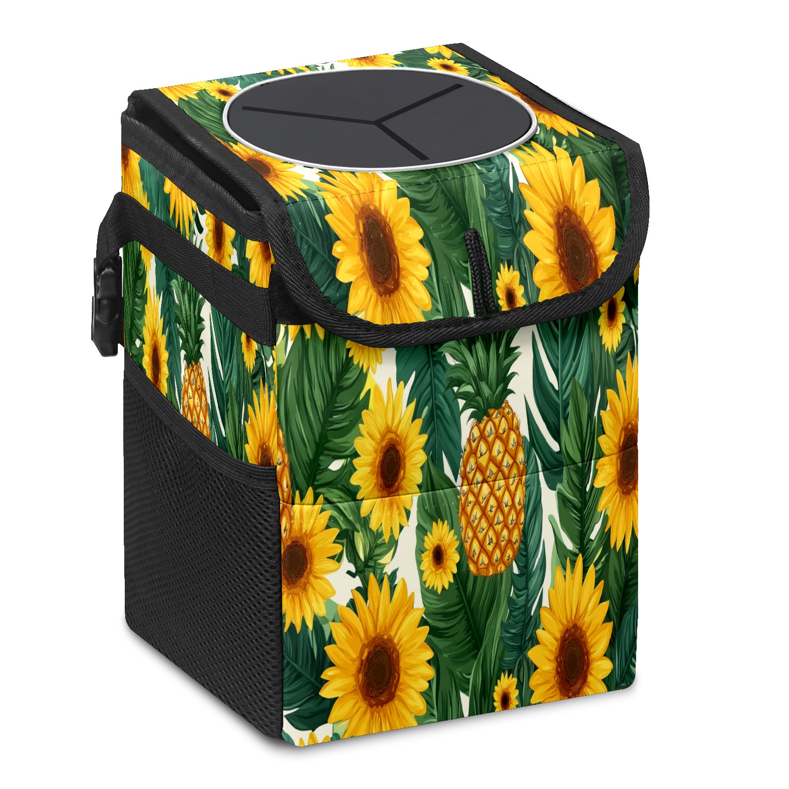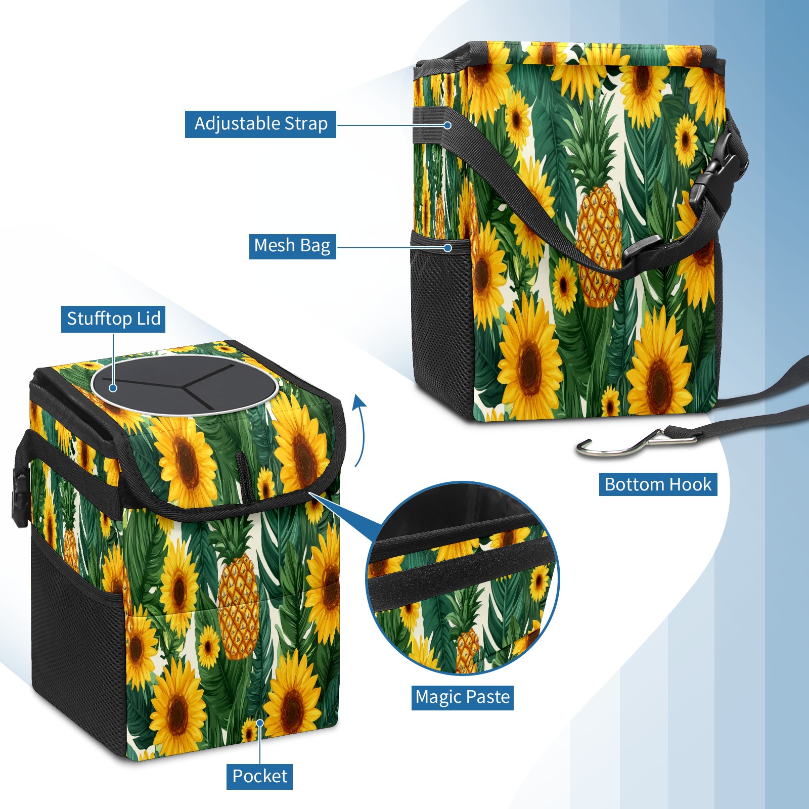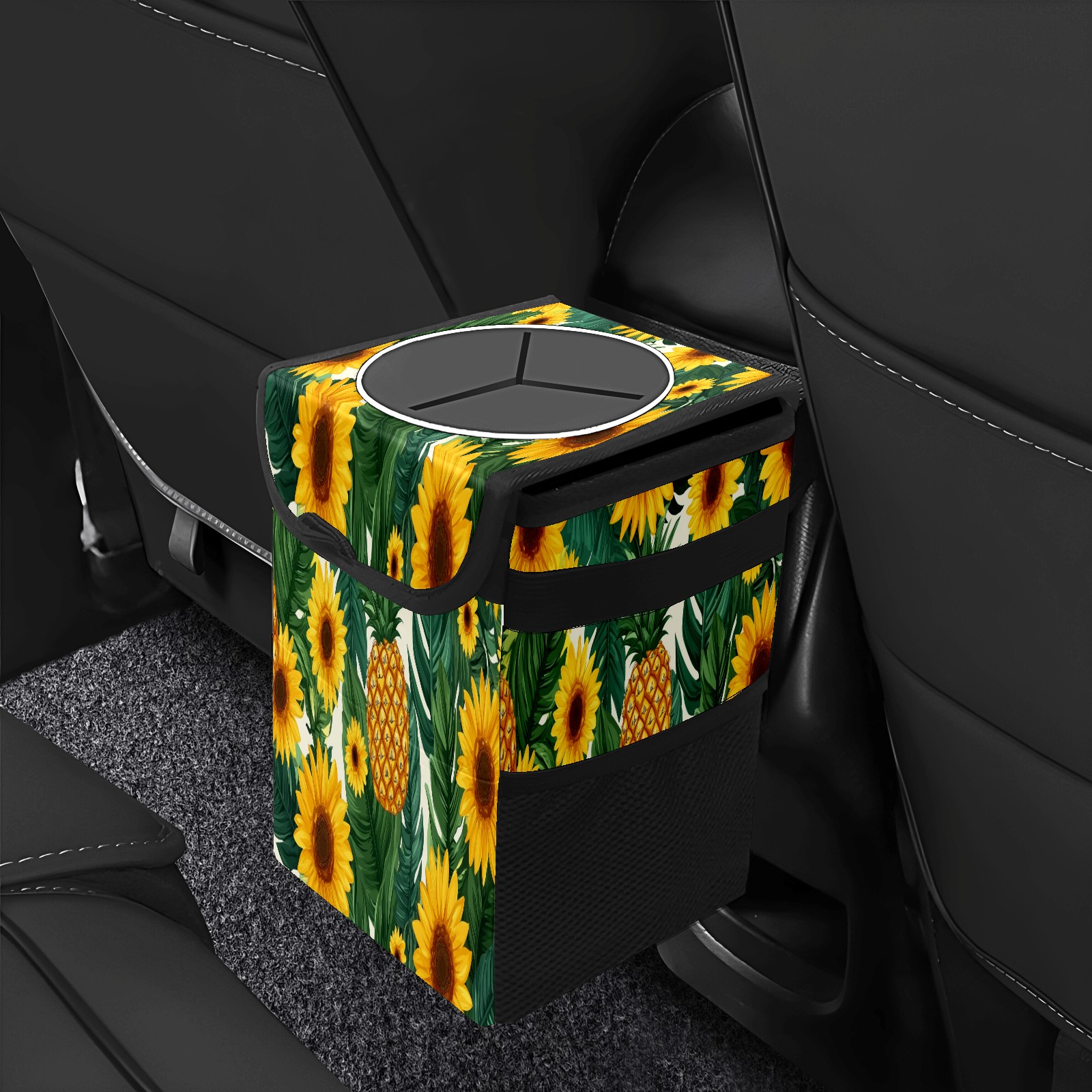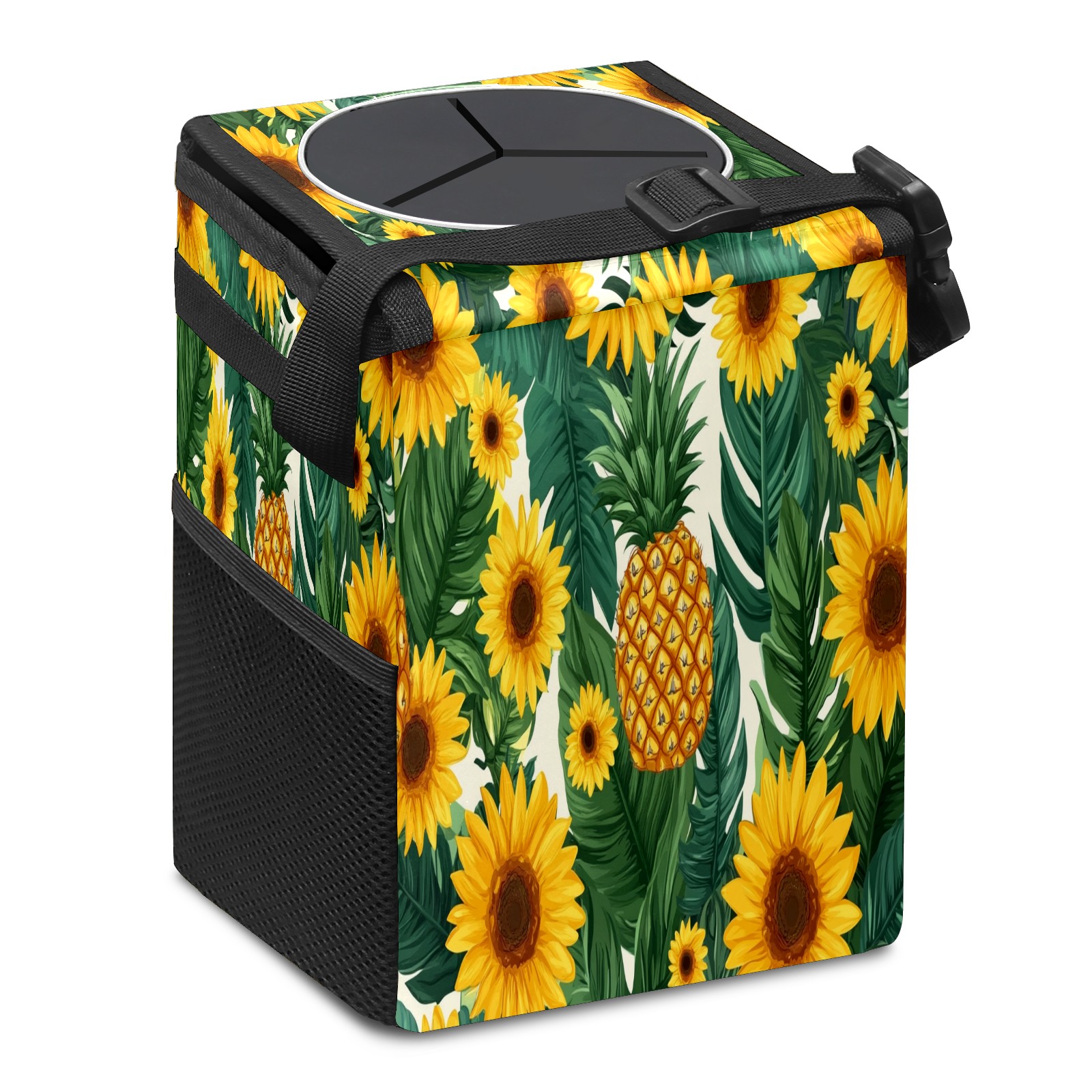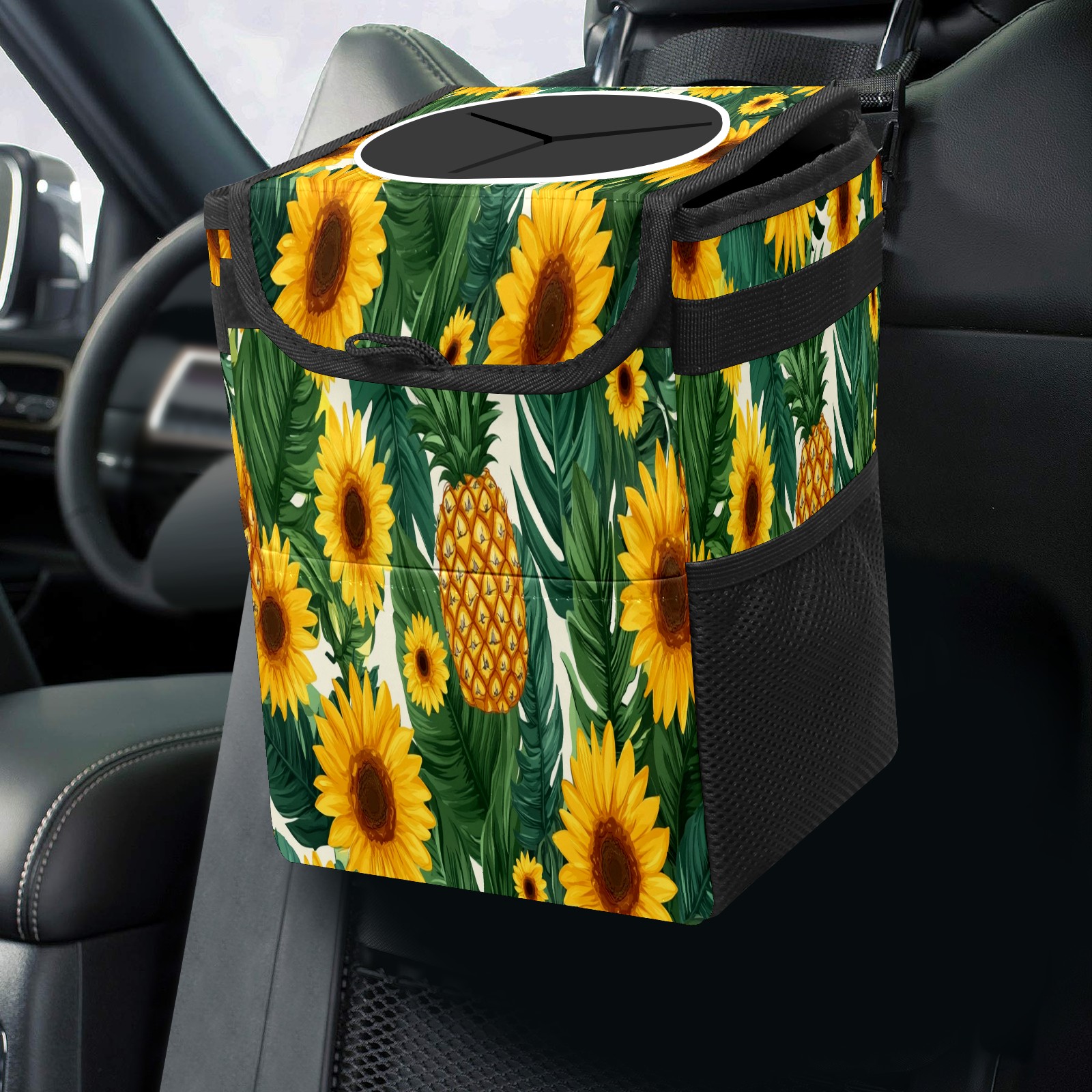 Car Trash Can with Lid, Small Portable Hanging Automotive Garbage Bin for Vehicles, Leakproof Waste Bag Container for SUV Truck Van Interior Auto Travel Road Trips(Pineapples Summer Tree)