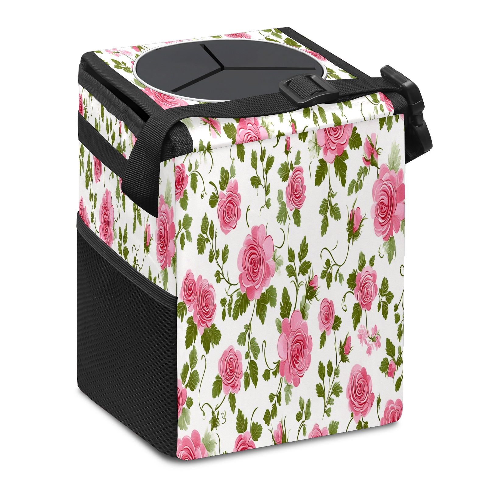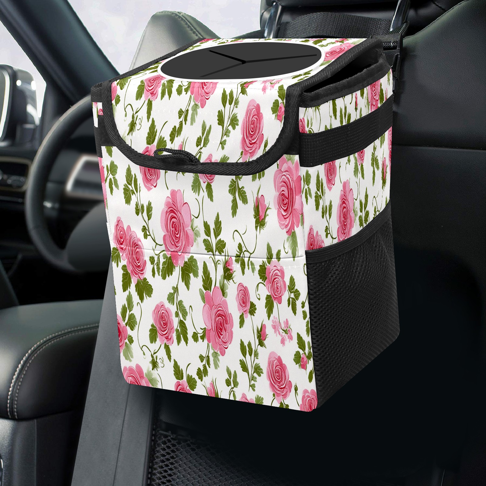 Car Trash Can with Lid, Small Portable Hanging Automotive Garbage Bin for Vehicles, Leakproof Waste Bag Container for SUV Truck Van Interior Auto Travel Road Trips(Vintage Floral)
