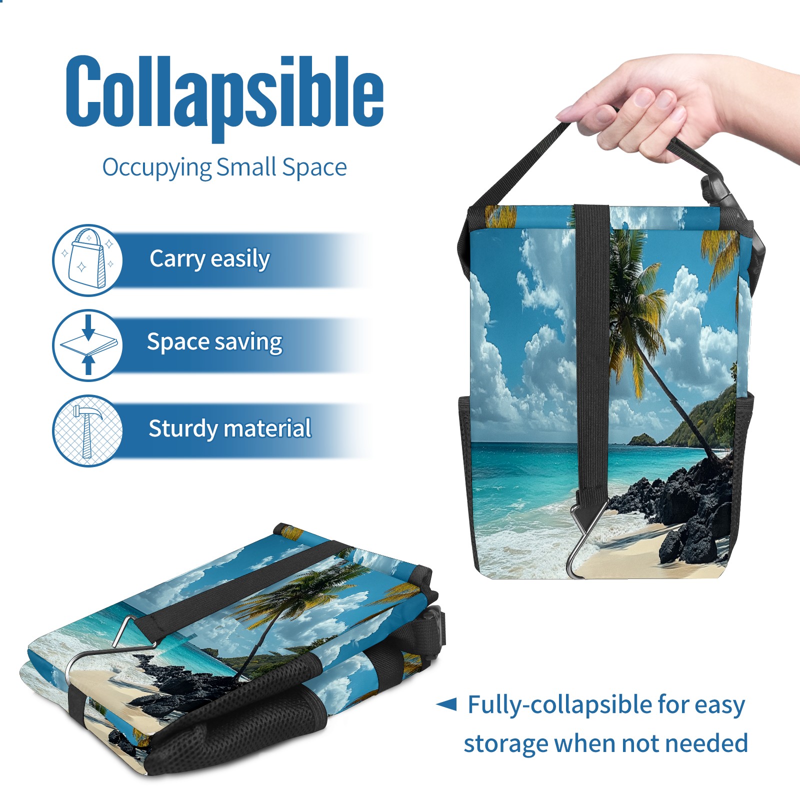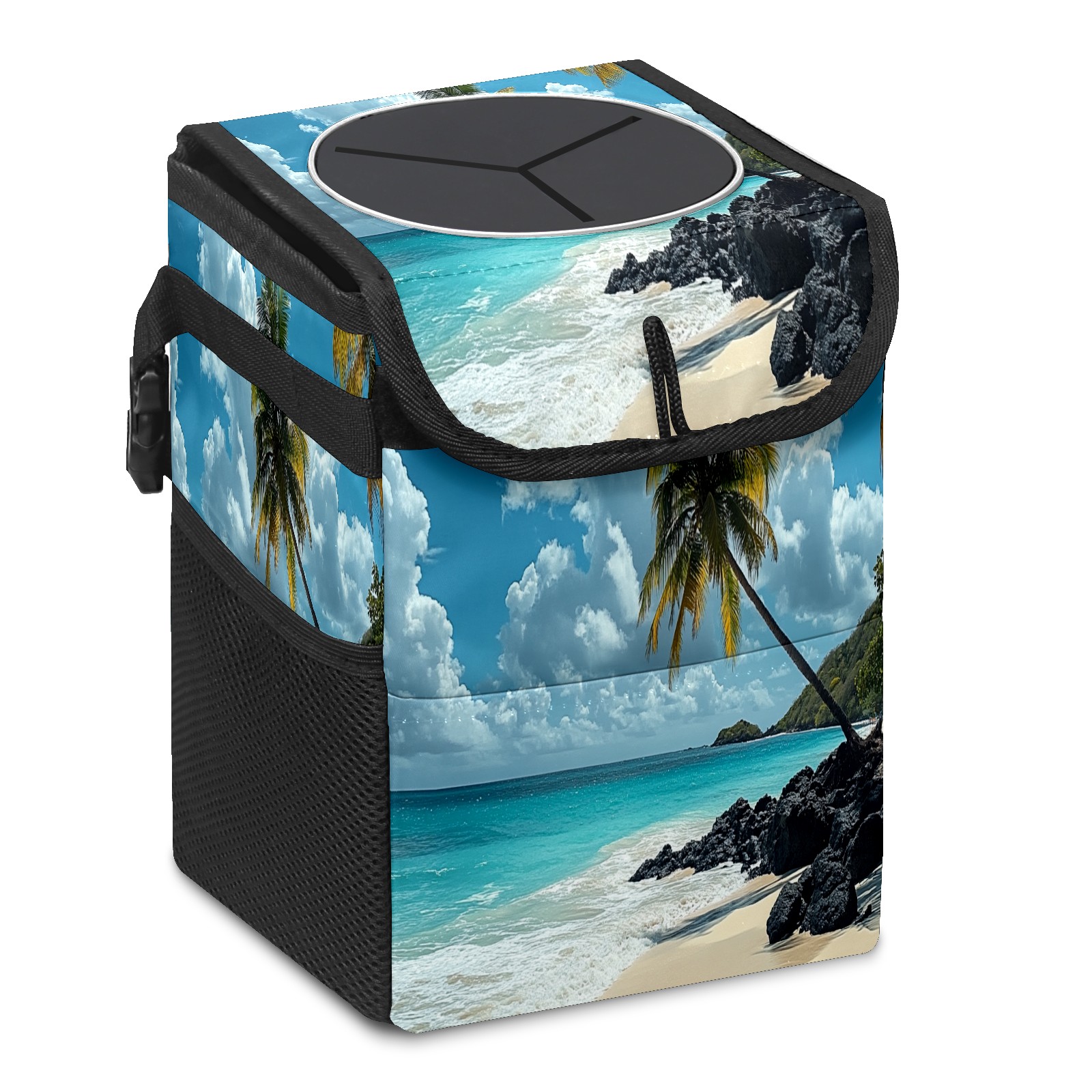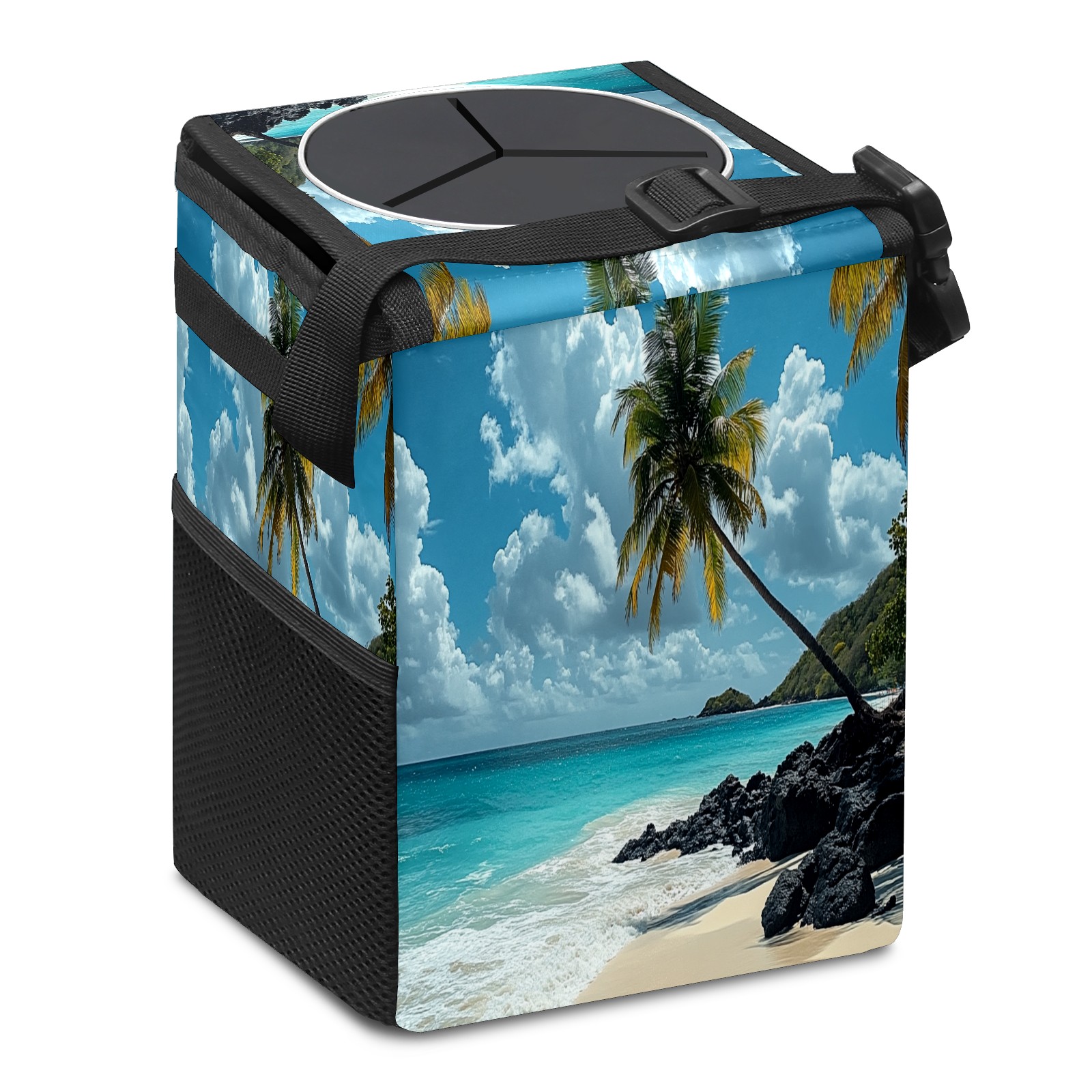 Car Trash Can with Lid, Small Portable Hanging Automotive Garbage Bin for Vehicles, Leakproof Waste Bag Container for SUV Truck Van Interior Auto Travel Road Trips(Beautiful Caribbean Beach)