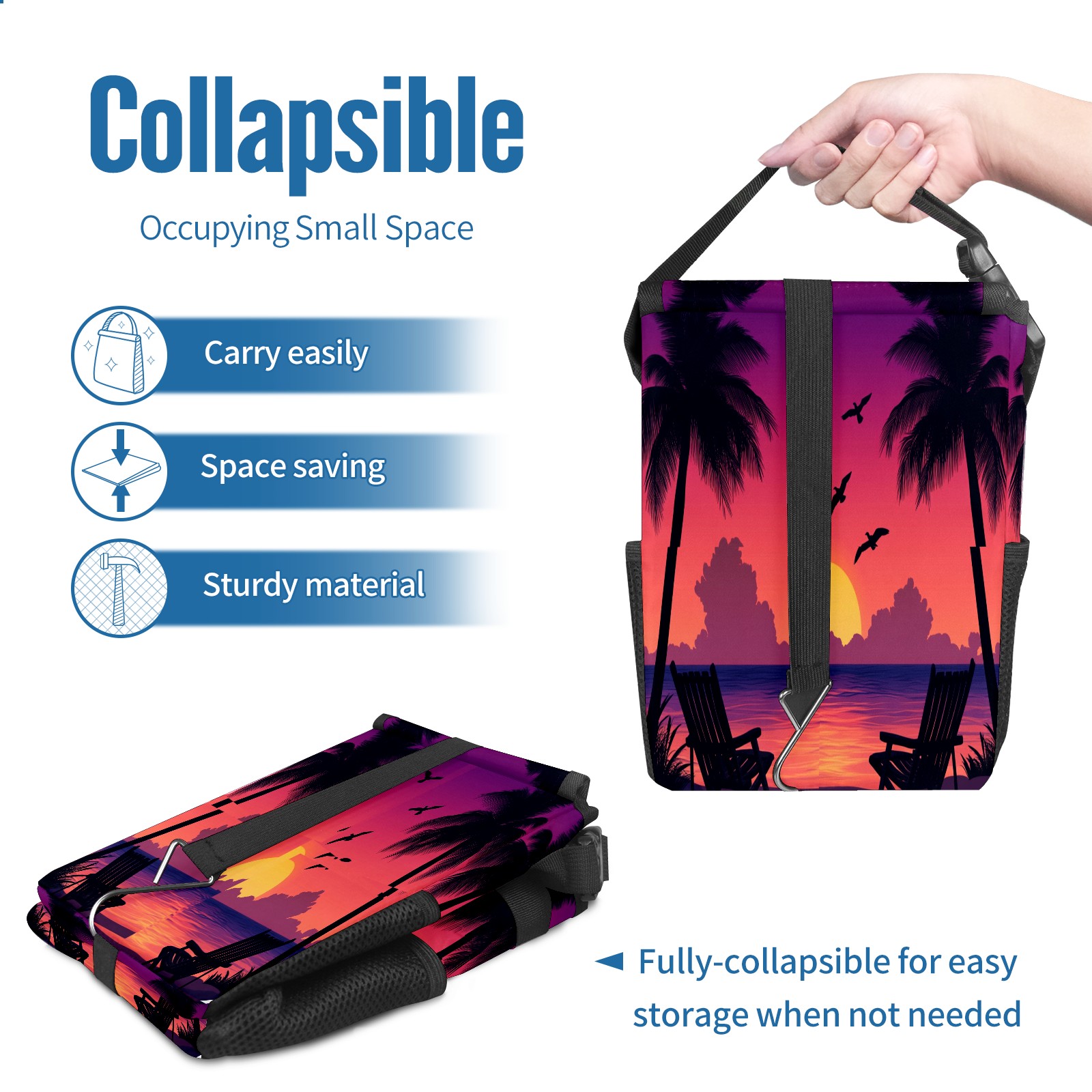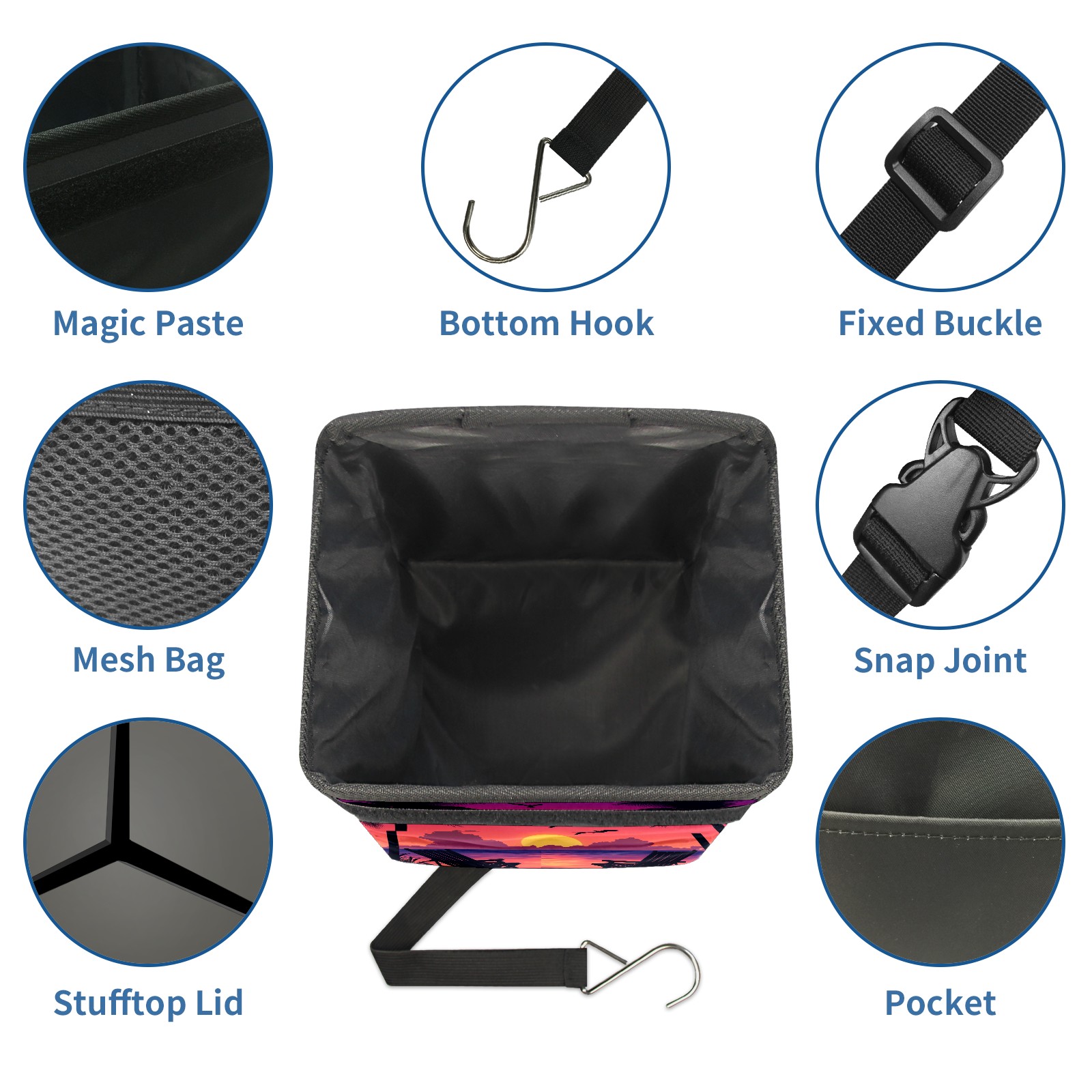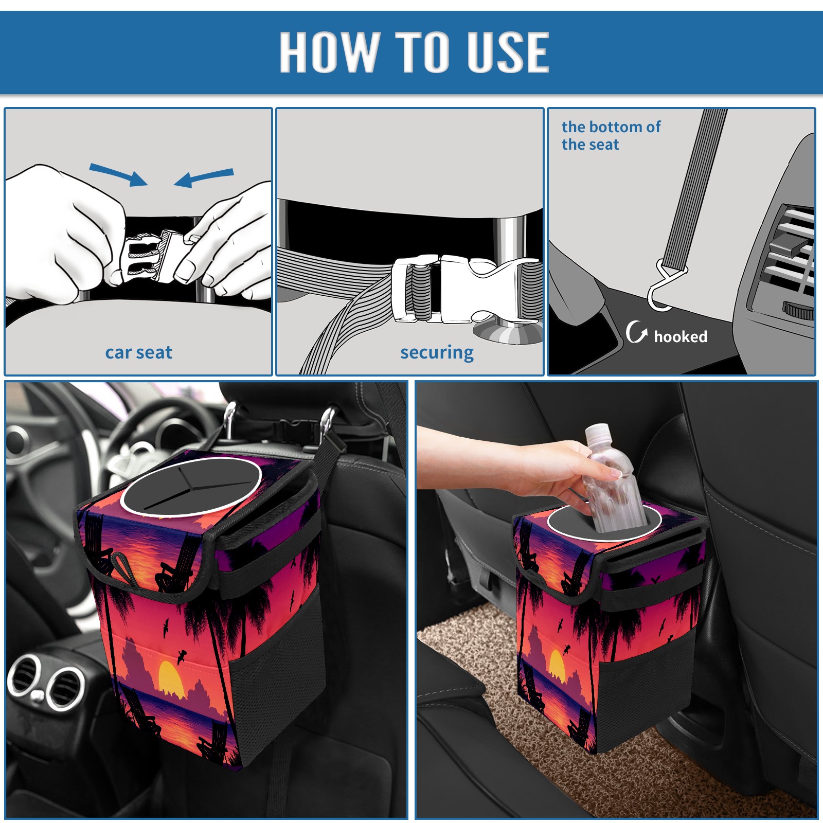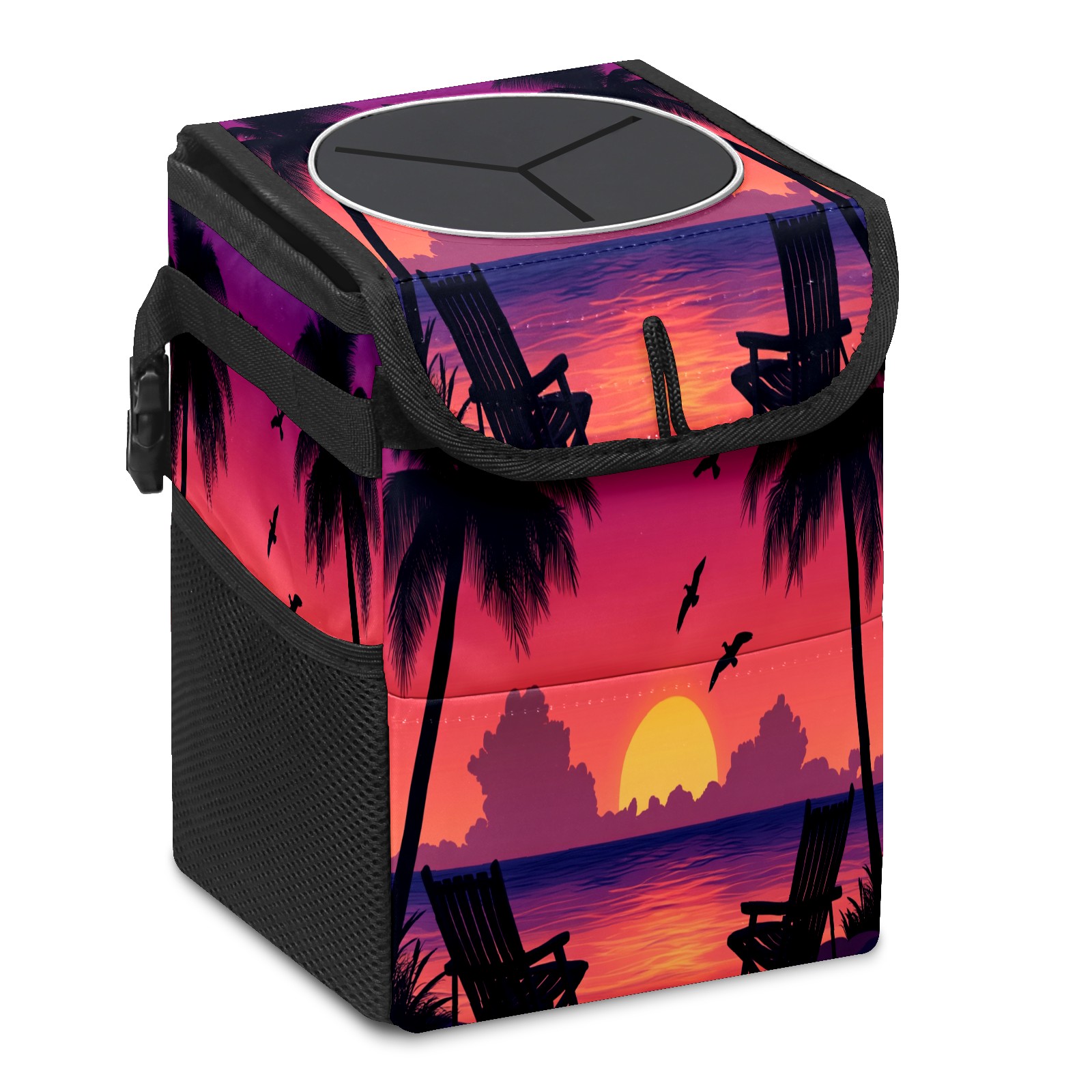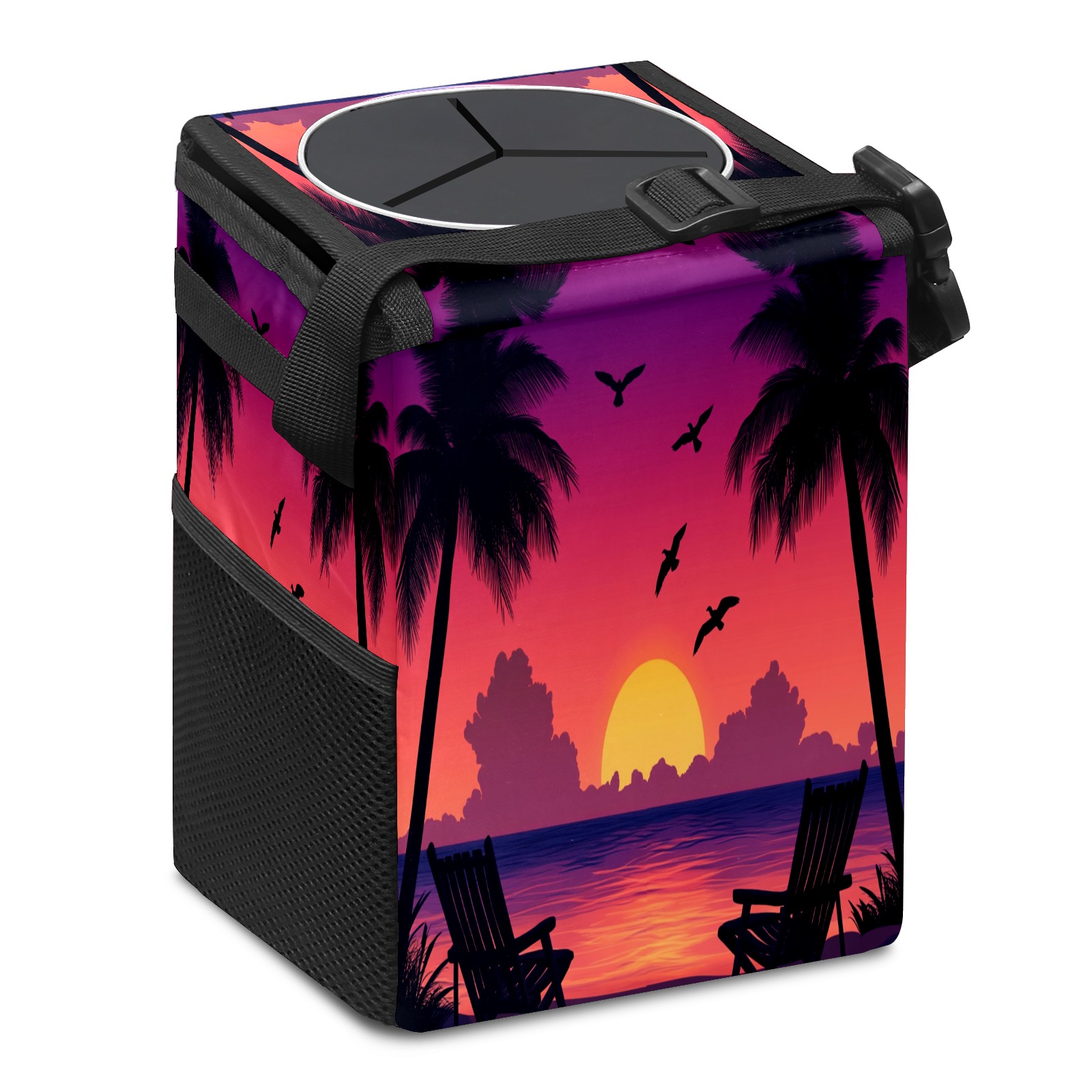 Car Trash Can with Lid, Small Portable Hanging Automotive Garbage Bin for Vehicles, Leakproof Waste Bag Container for SUV Truck Van Interior Auto Travel Road Trips(Purple Sunset Seagull)