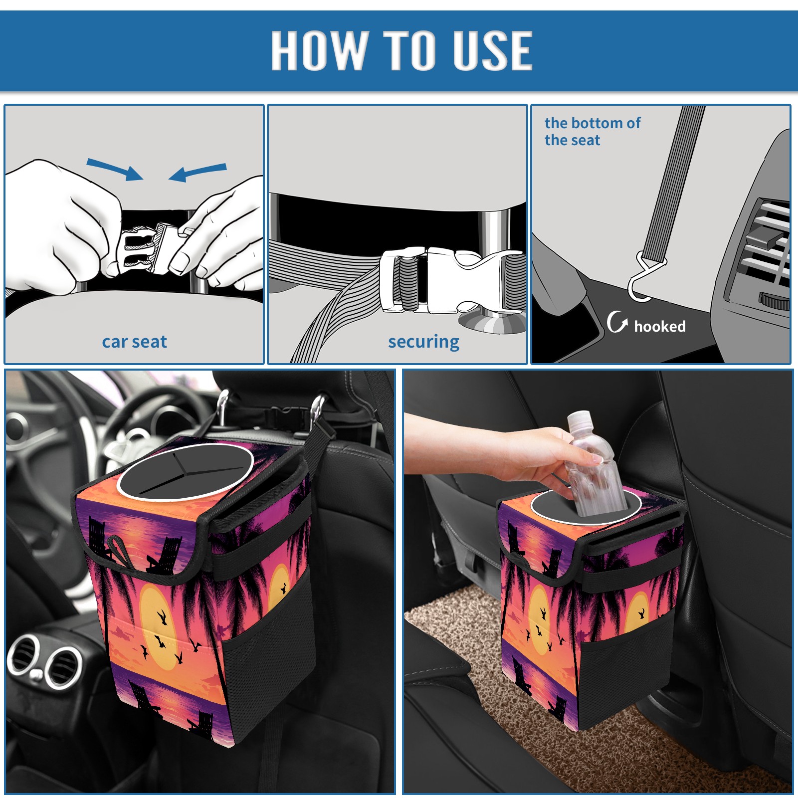 <p><b>Keep Your Car Clean &amp; Organized</b></p> <p>Tired of car clutter? Our durable car trash can is the perfect solution. This compact, leak-proof bin fits perfectly in cup holders, door pockets, or between seats.</p> <p>Ideal for commutes, road trips, and school runs, it’s a must-have car accessory. Use it as a hanging trash bag or a sturdy garbage bin for your SUV, truck, or back seat.</p> <p>Made from tough, easy-clean material, this portable trash container keeps your vehicle spotless. Get your essential car organizer today and enjoy a cleaner ride!</p>