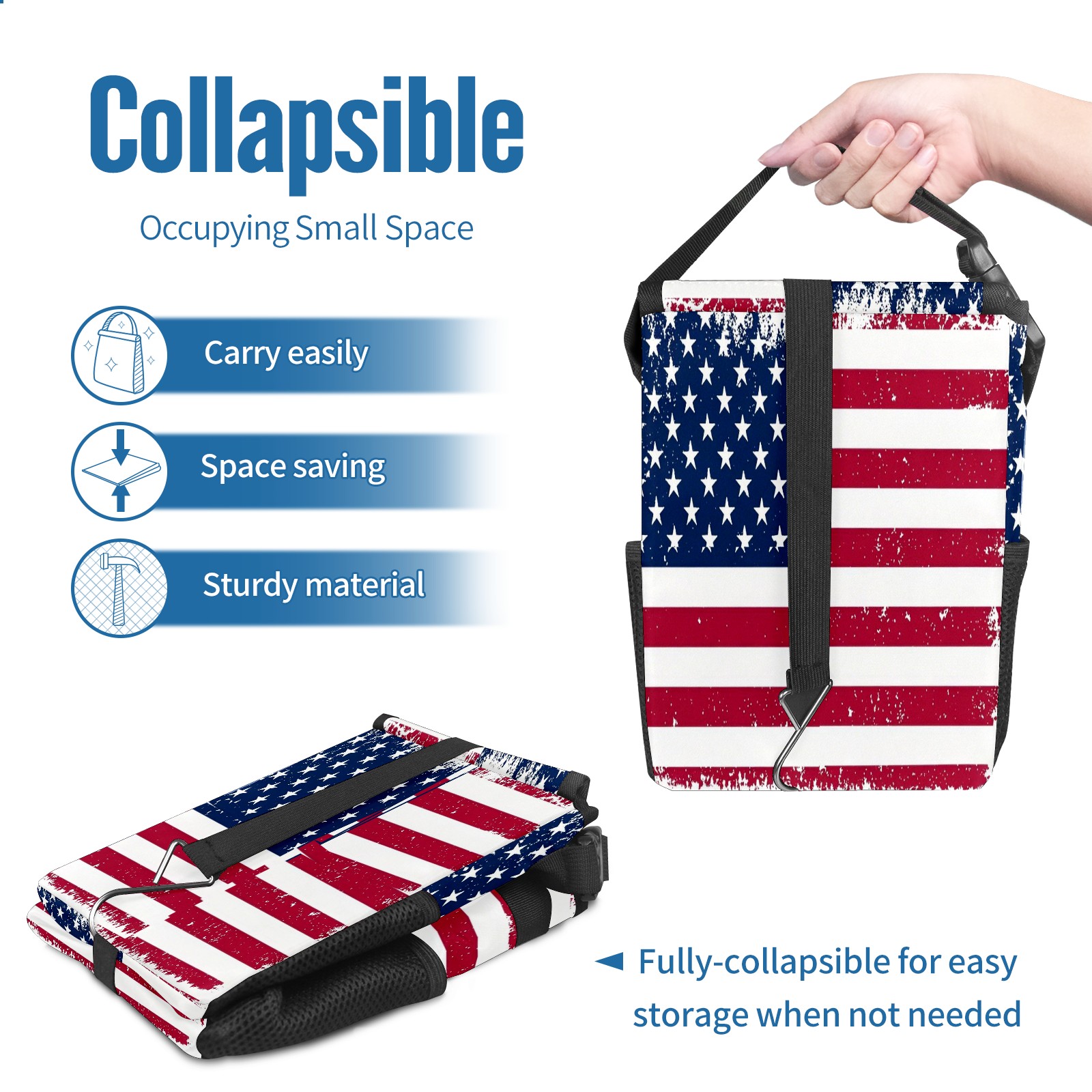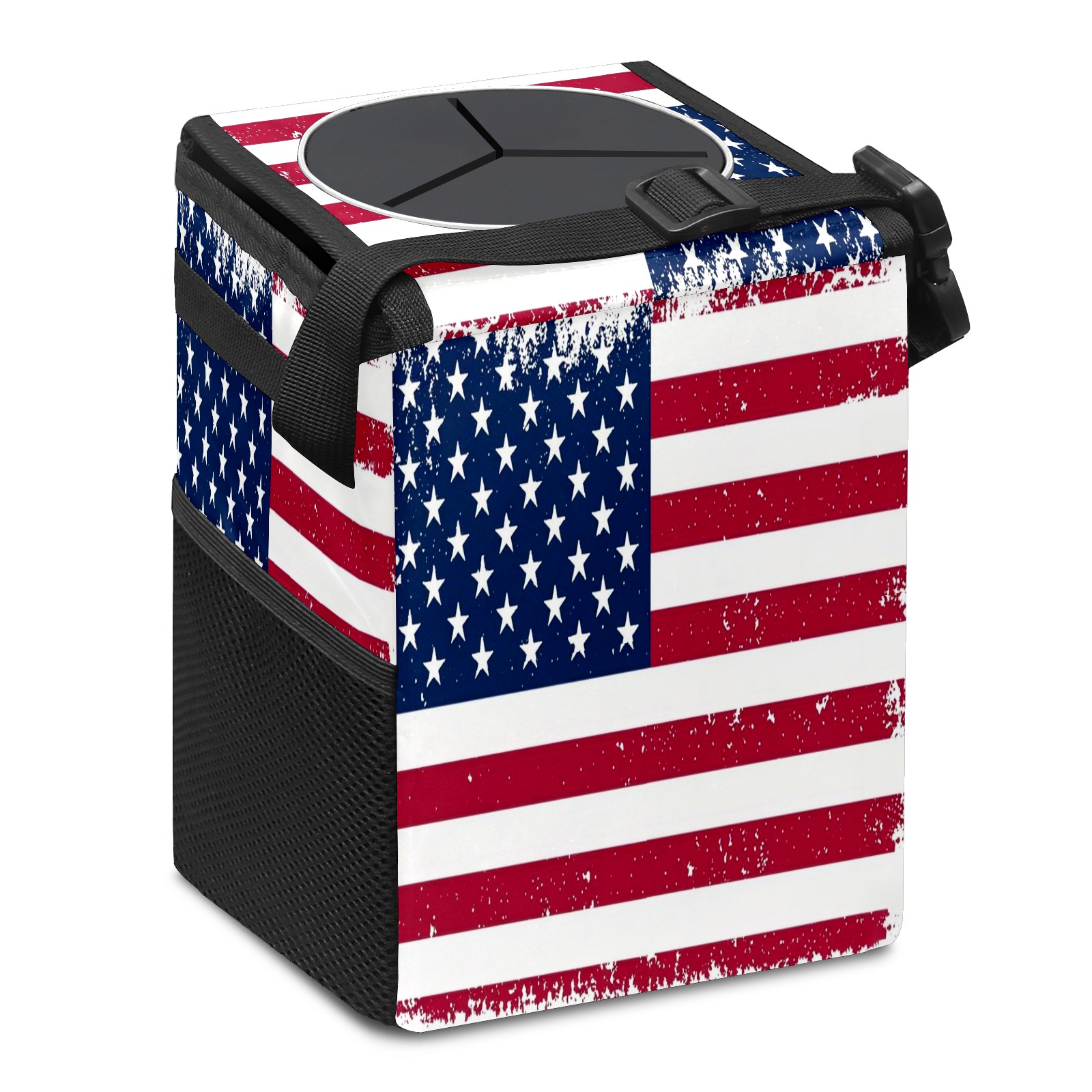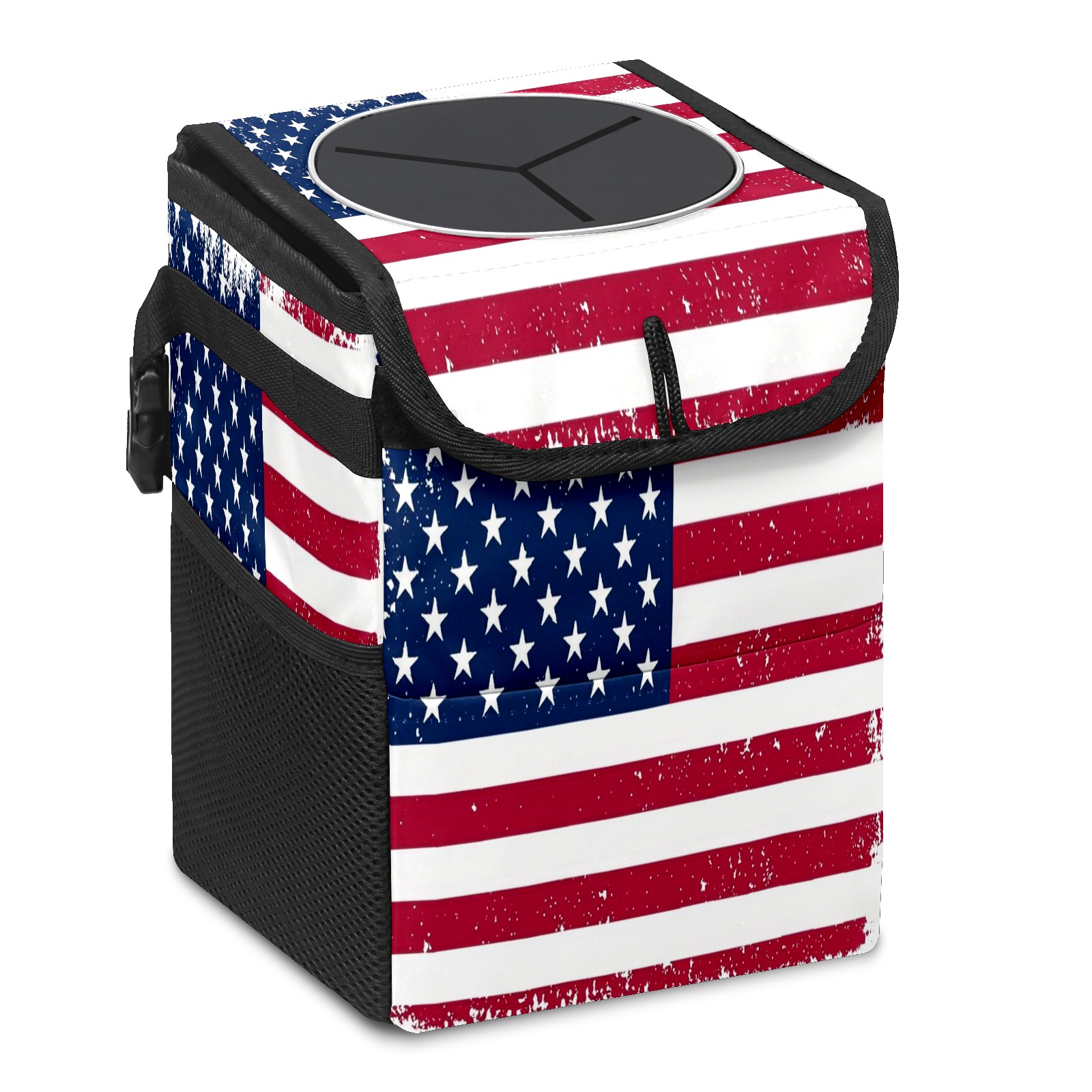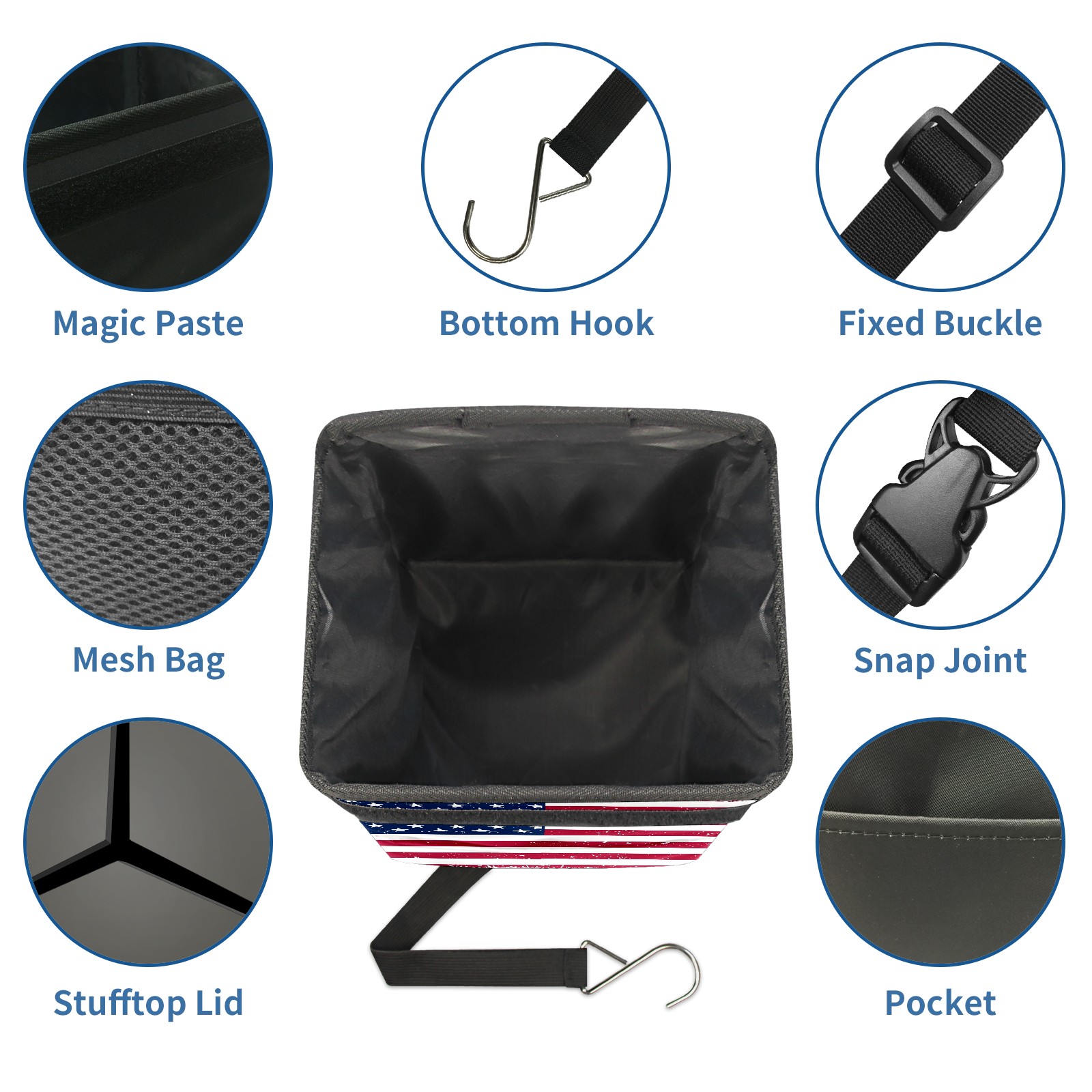 Car Trash Can with Lid, Small Portable Hanging Automotive Garbage Bin for Vehicles, Leakproof Waste Bag Container for SUV Truck Van Interior Auto Travel Road Trips(American Flag)