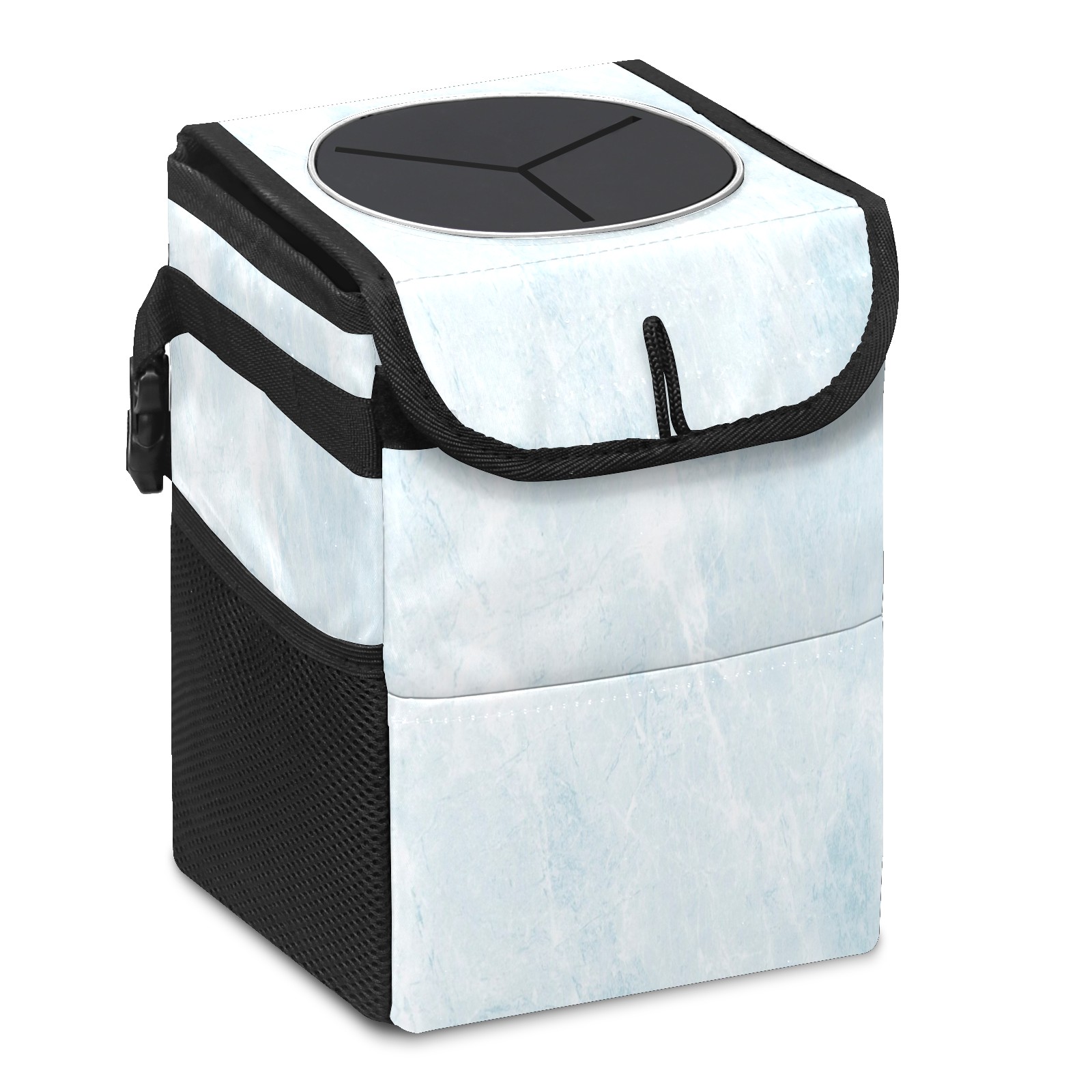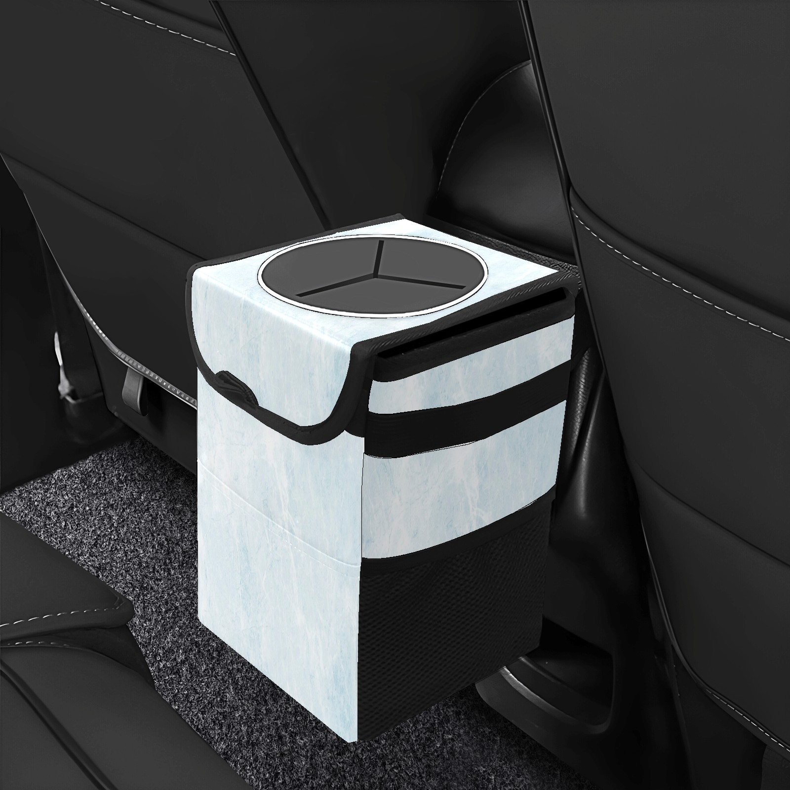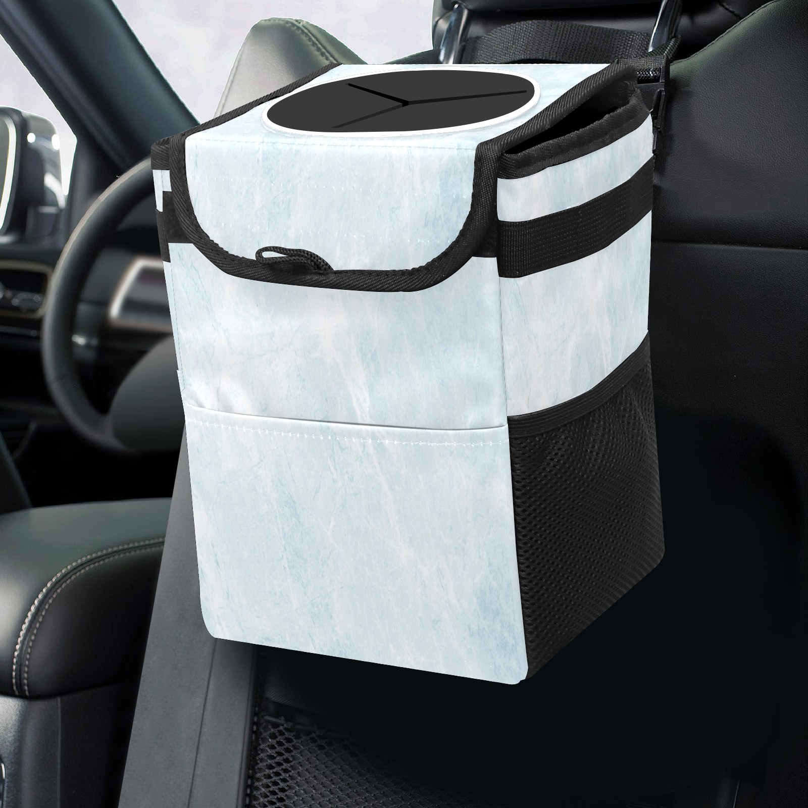 Car Trash Can with Lid, Small Portable Hanging Automotive Garbage Bin for Vehicles, Leakproof Waste Bag Container for SUV Truck Van Interior Auto Travel Road Trips(Blue Marble)