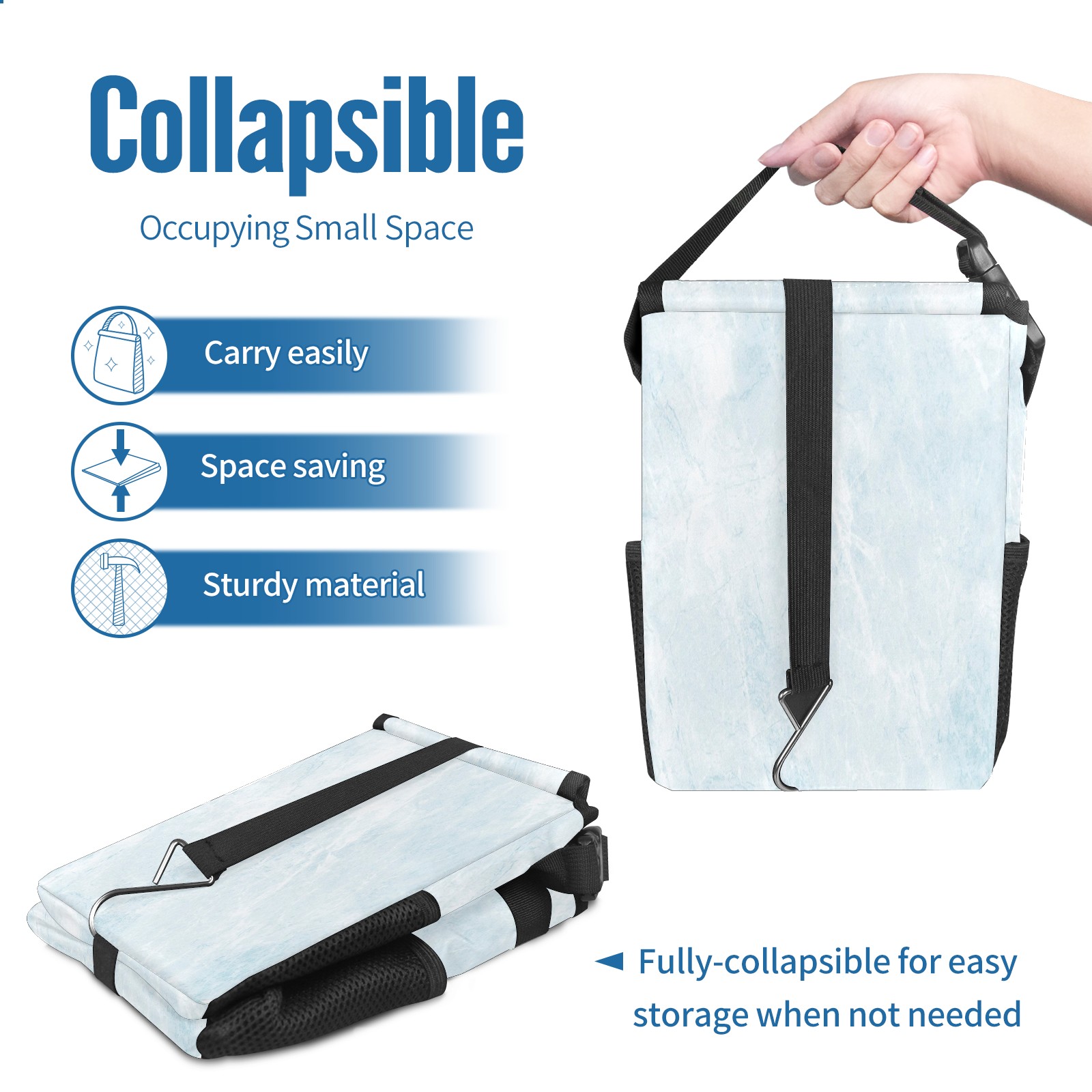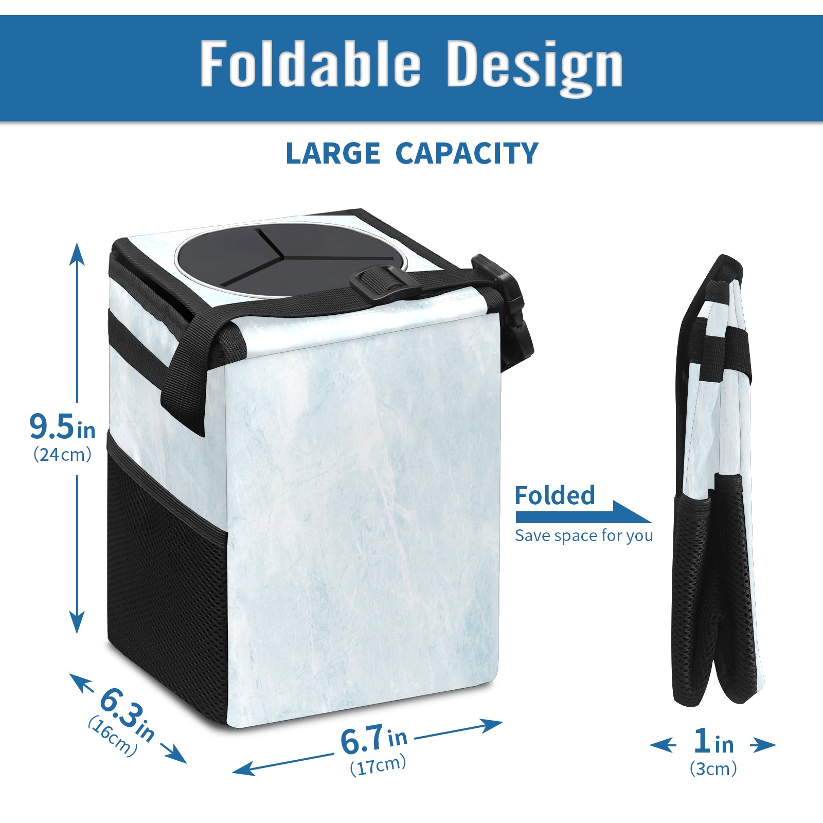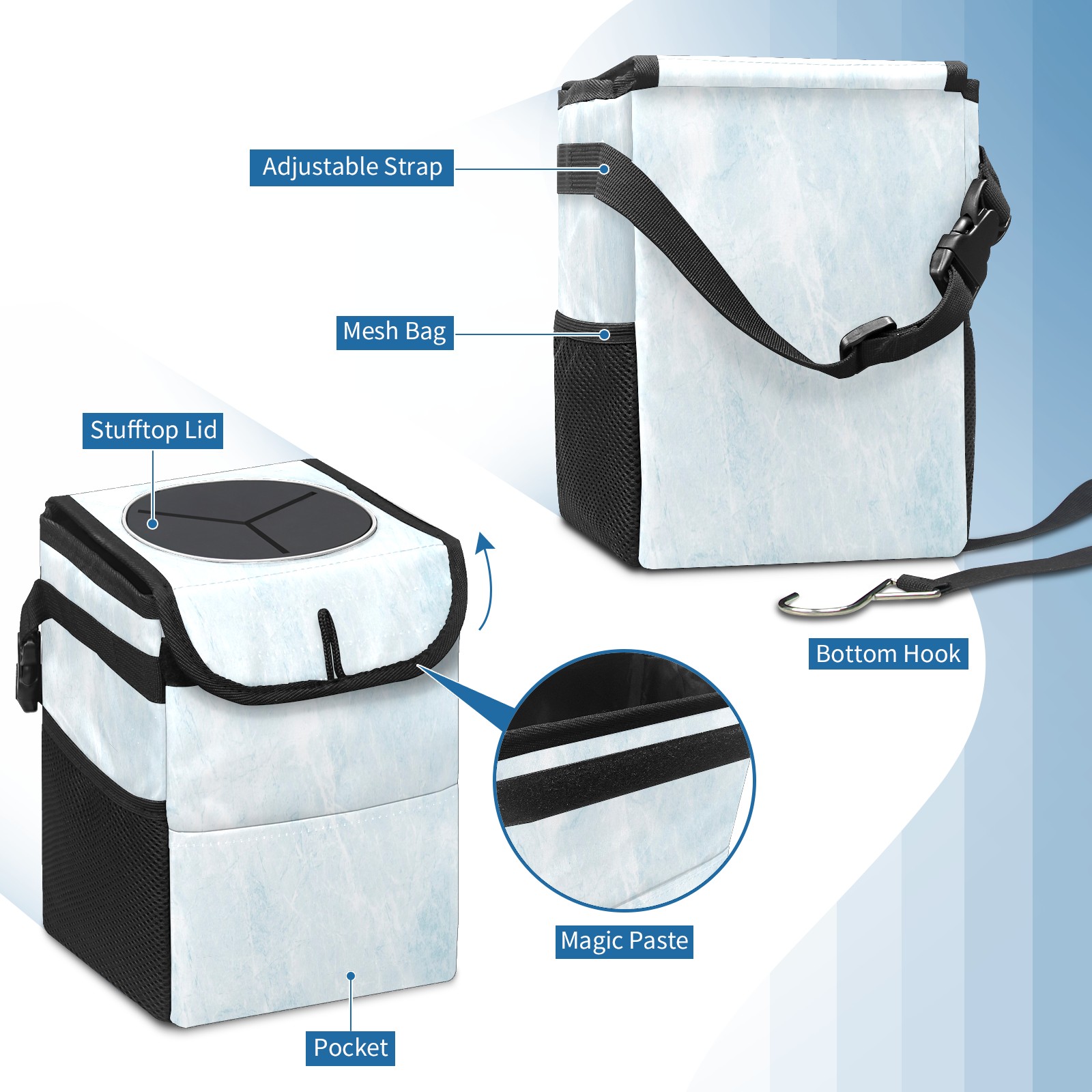 Car Trash Can with Lid, Small Portable Hanging Automotive Garbage Bin for Vehicles, Leakproof Waste Bag Container for SUV Truck Van Interior Auto Travel Road Trips(Blue Marble)
