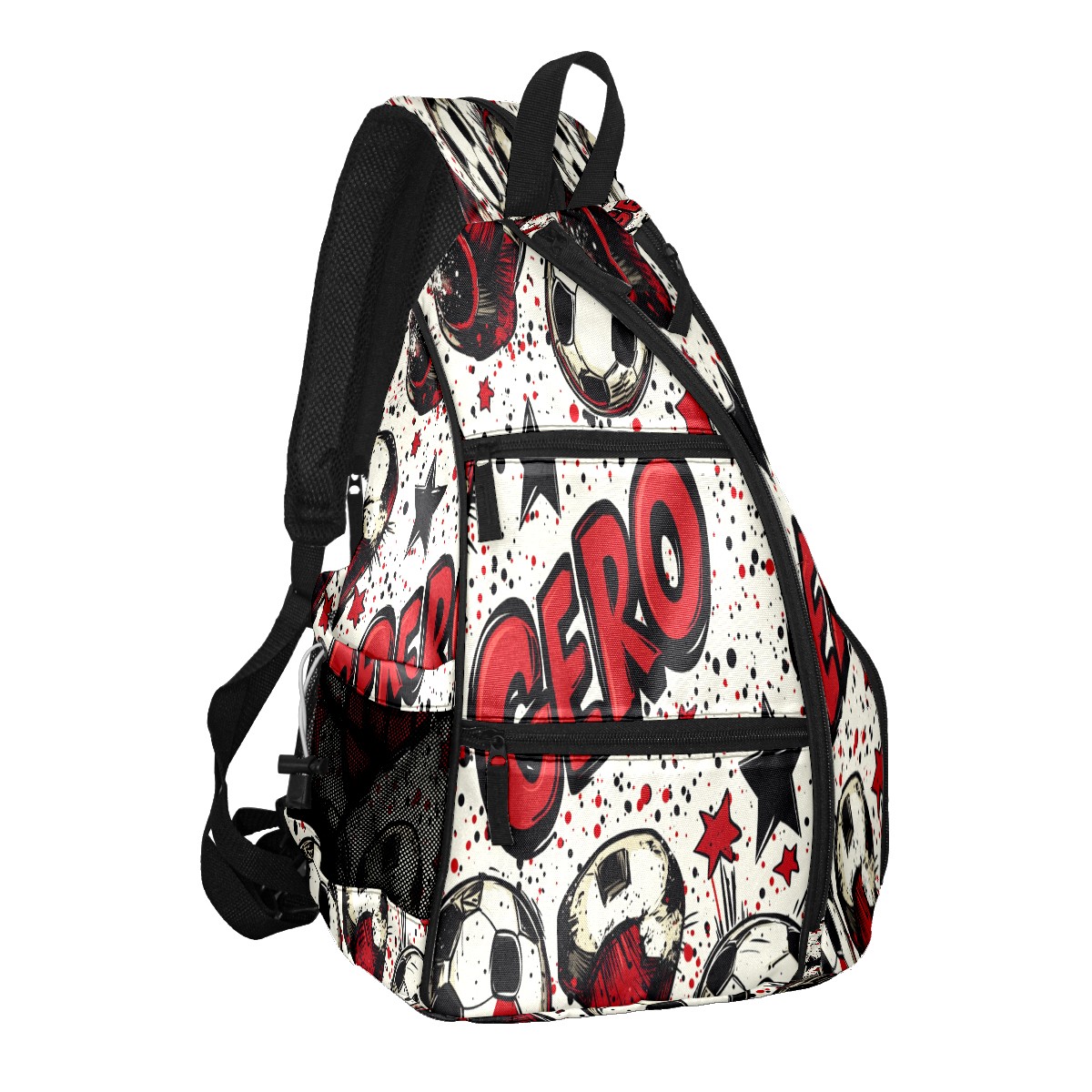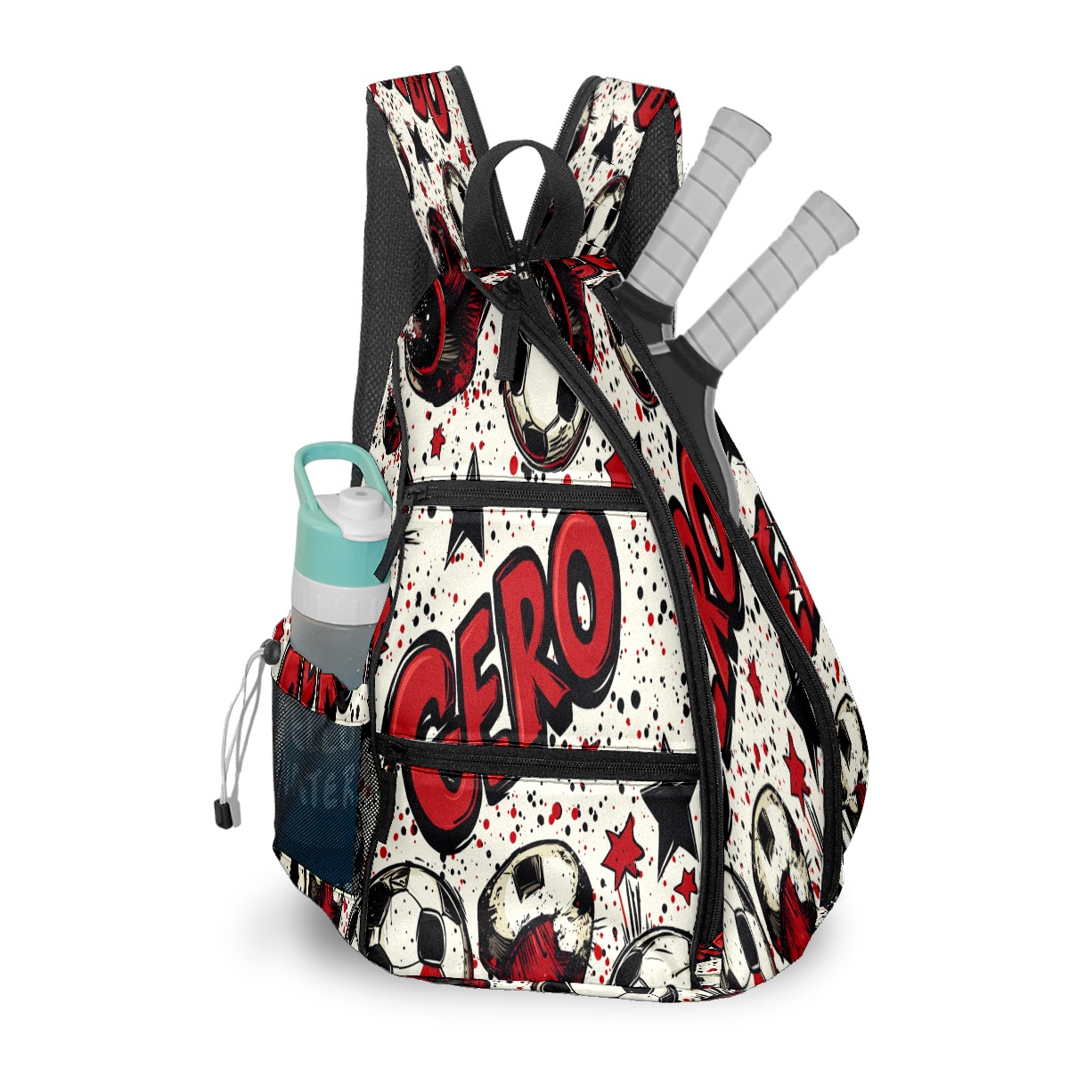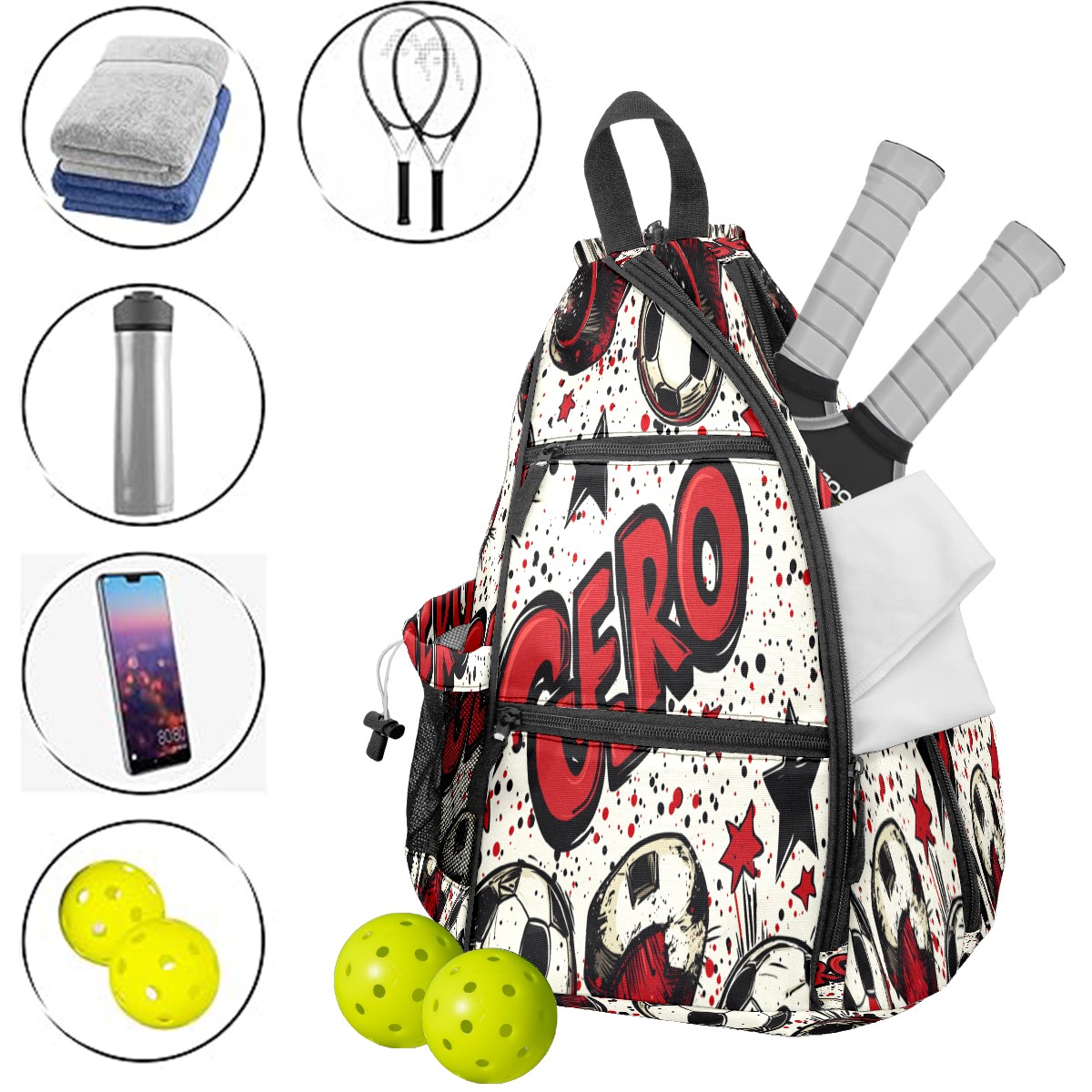 Pickleball Shoulder Bag for Men and Women - Fence Hook - Crossbody Backpack with Water Bottle Holder GERO (Polka Dot Soccer)